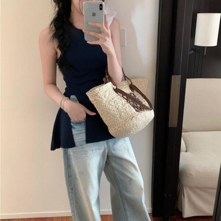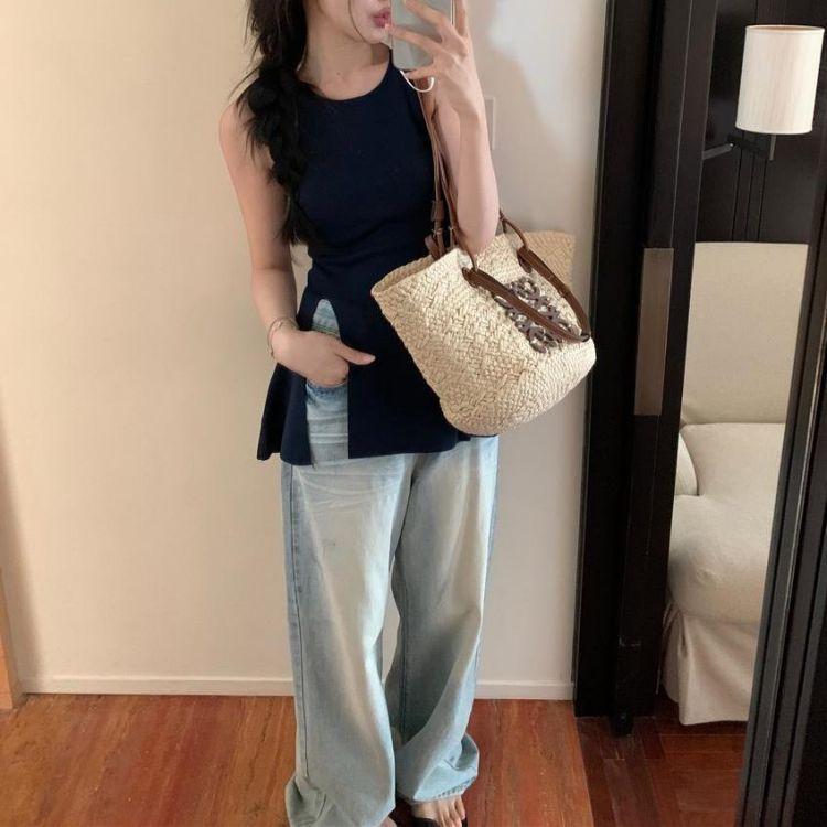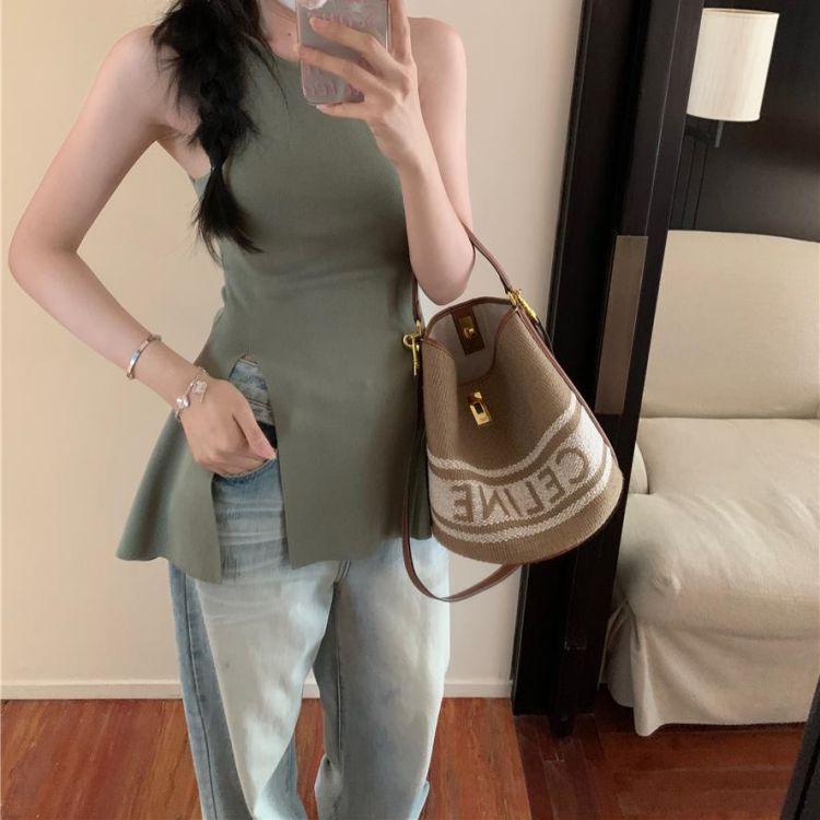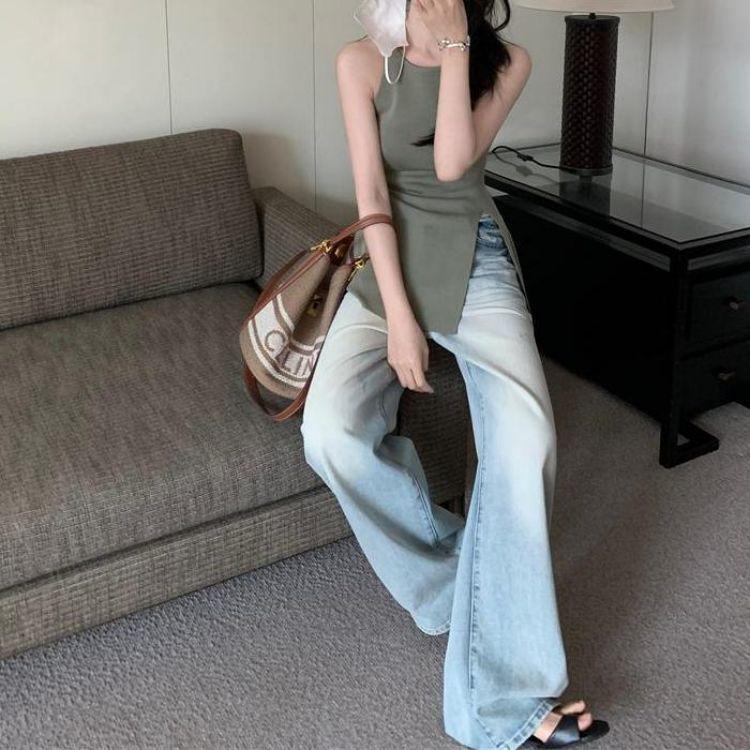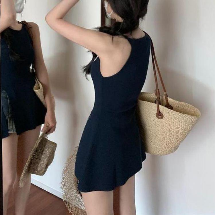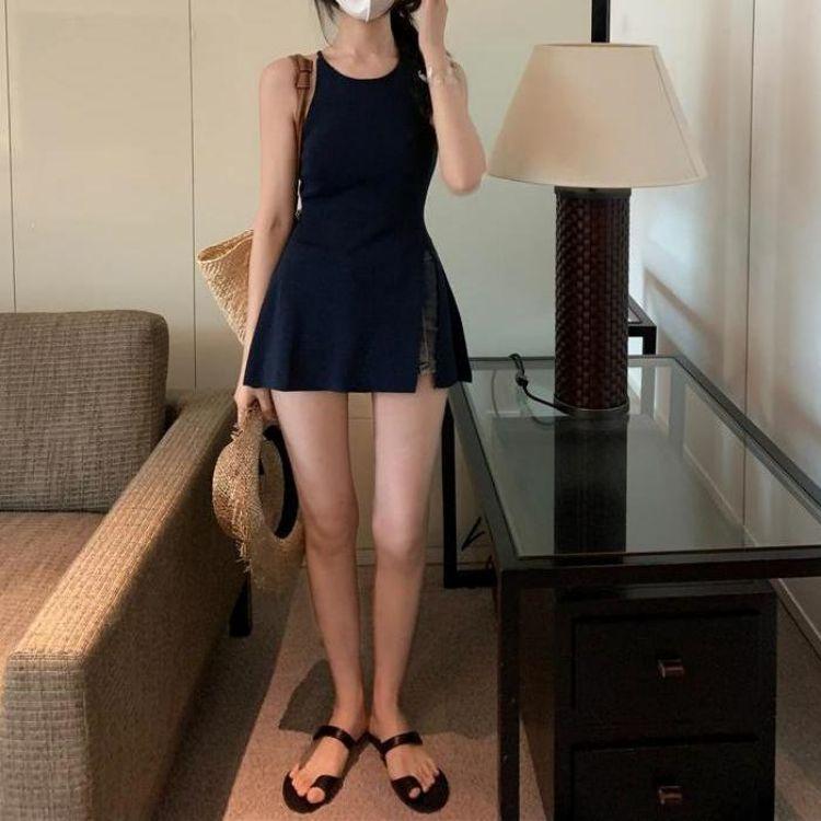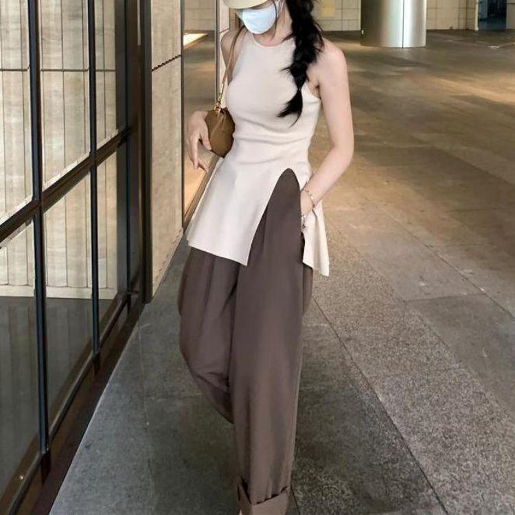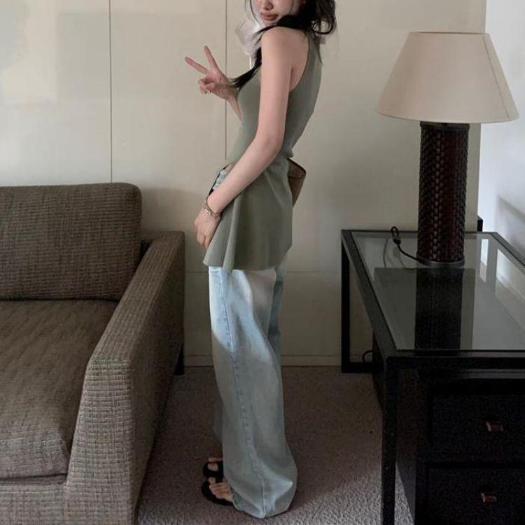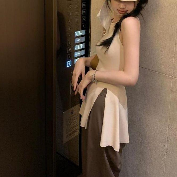Camisola de punto estilo Pure Desire para mujer, prenda exterior de verano, ajustada, sin mangas y con abertura.