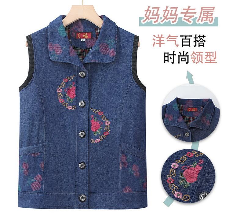 Ropa para mujeres de mediana edad y ancianas primavera y otoño Chaleco de mezclilla chaleco de mamá 60 años 70 chaleco para anciana abrigo chaleco de abuela