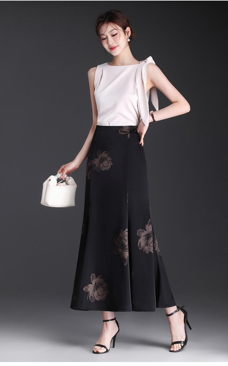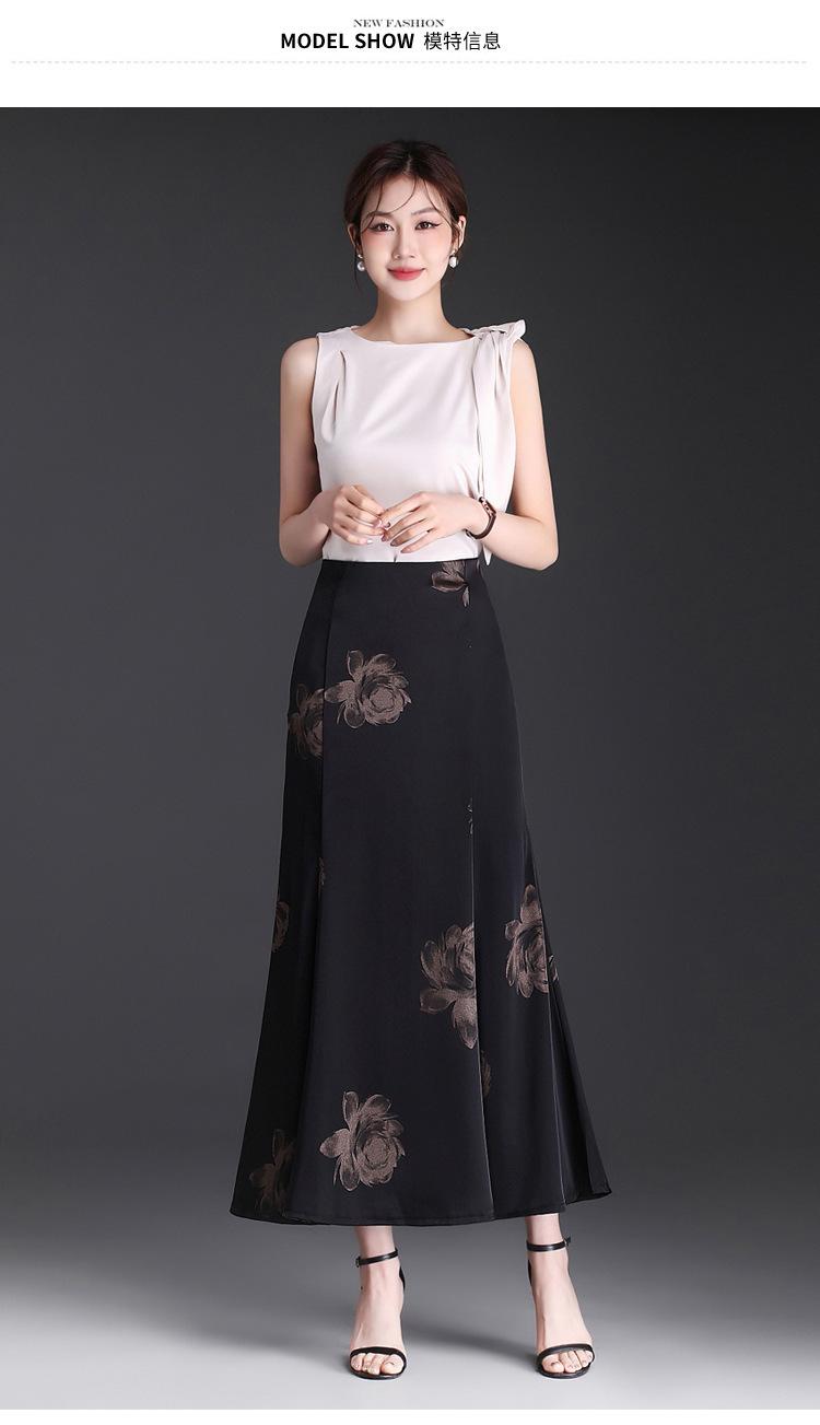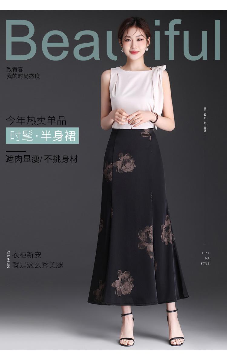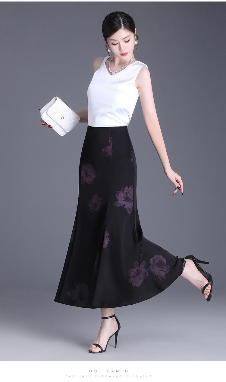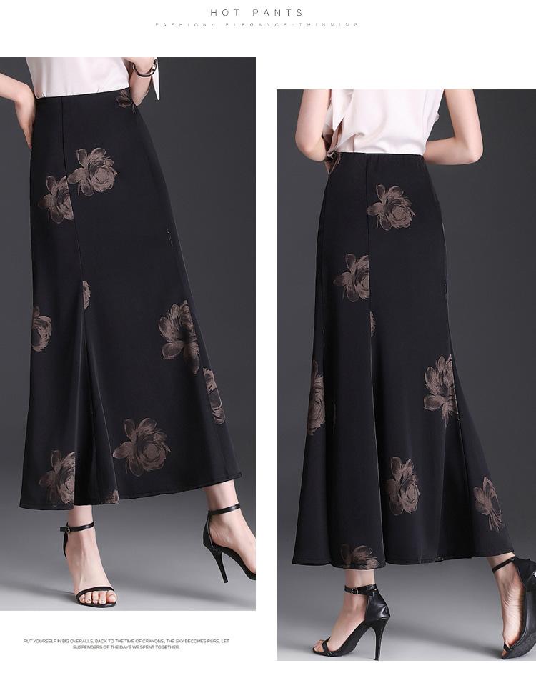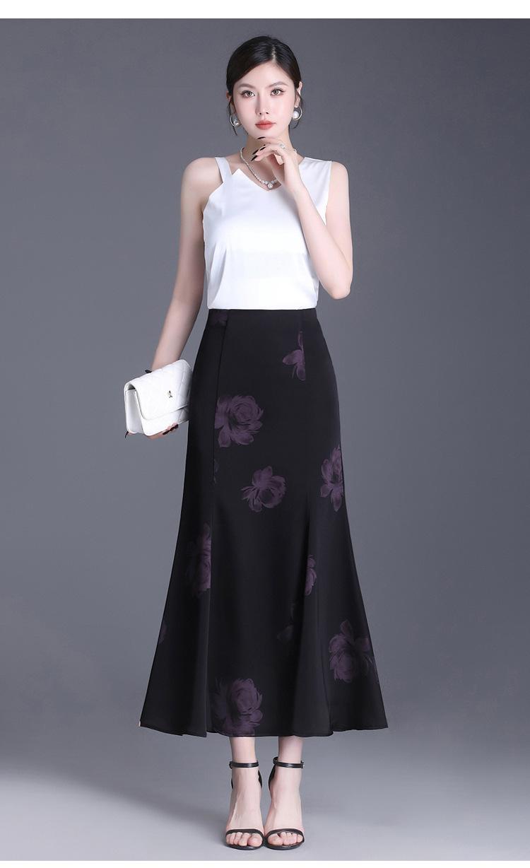 Falda de Cola de Pescado Estampada de Moda para Mujer 2025 Verano Nuevo Cintura Alta Elegante Adelgazante Cubre Caderas Falda Larga