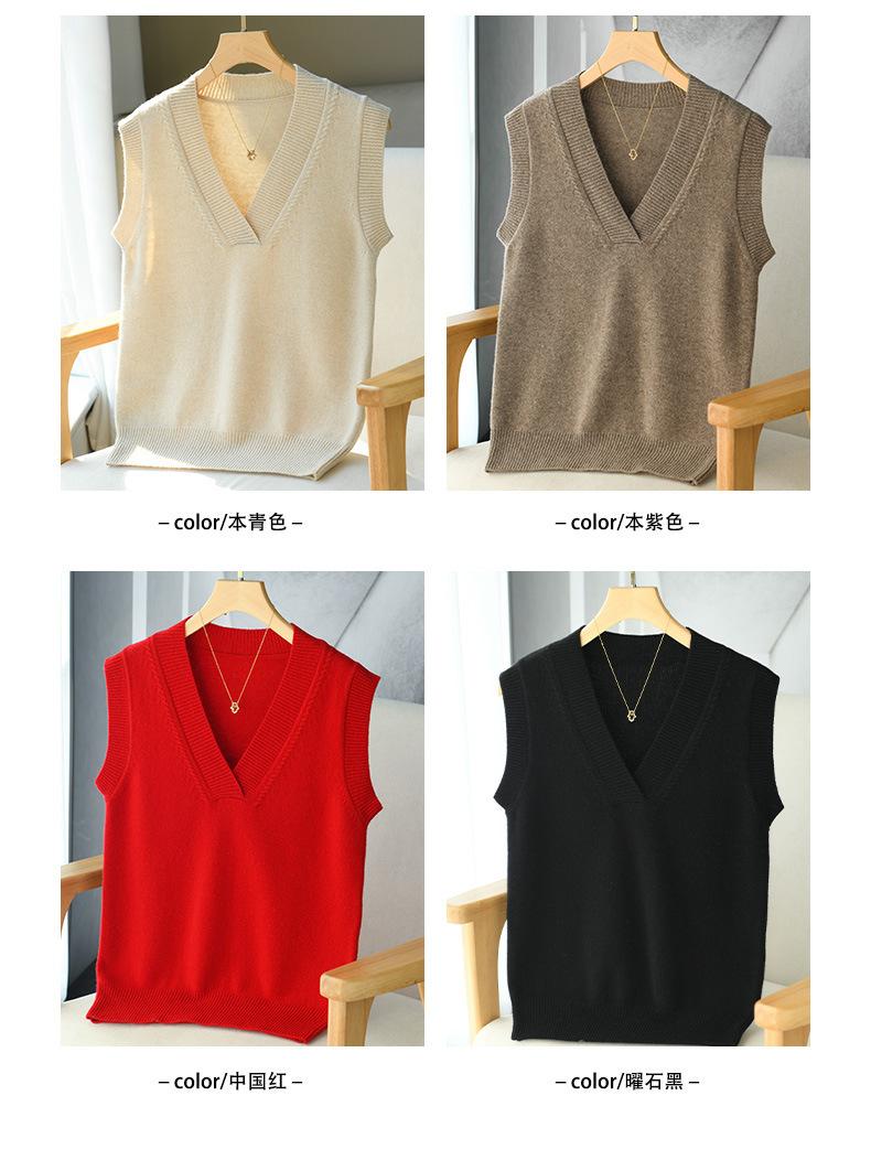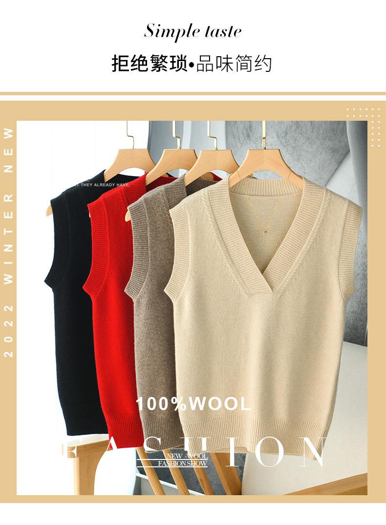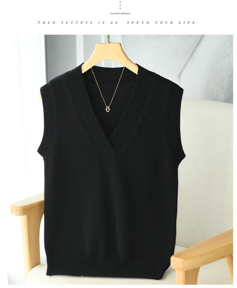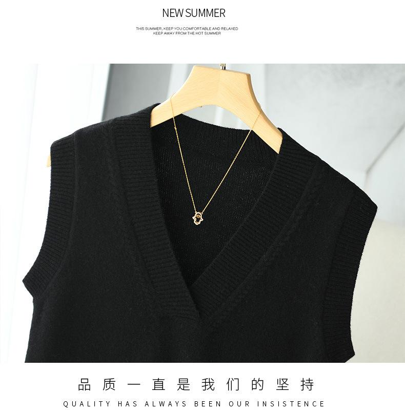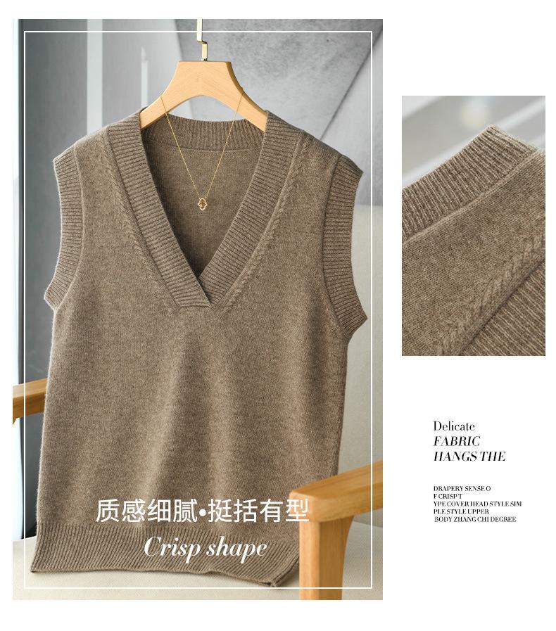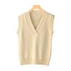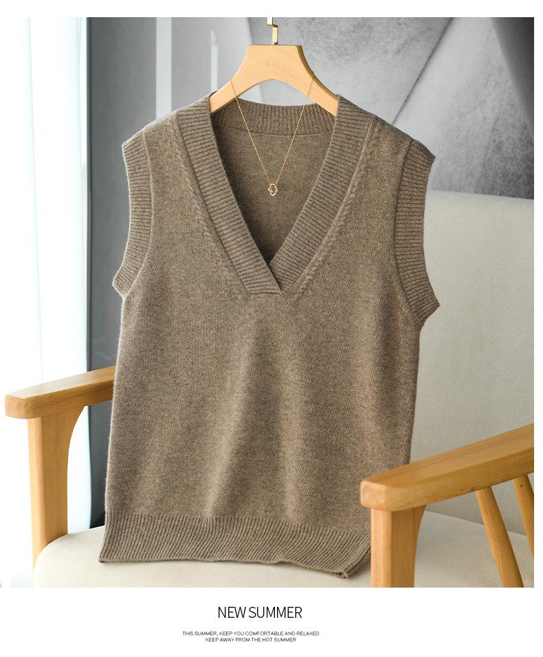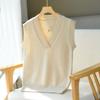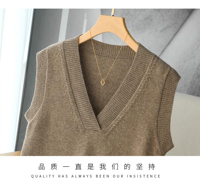 Chaleco de punto de lana con cuello en V para otoño e invierno, suéter holgado sin mangas para mujer, chaleco de lana pura, ropa exterior, chaleco de moda