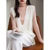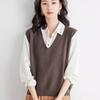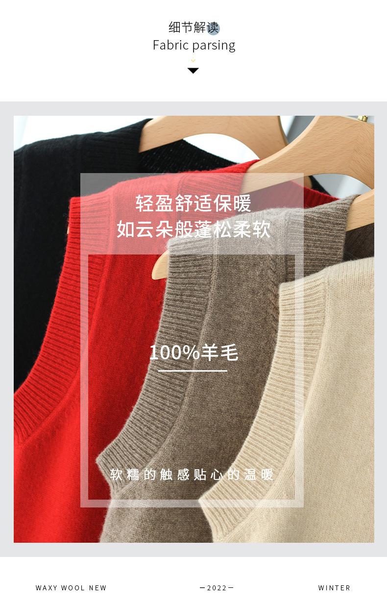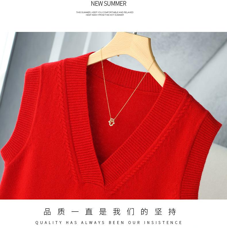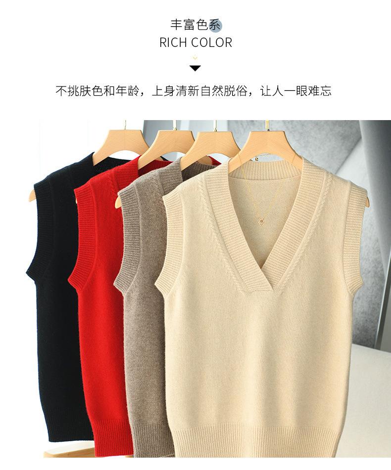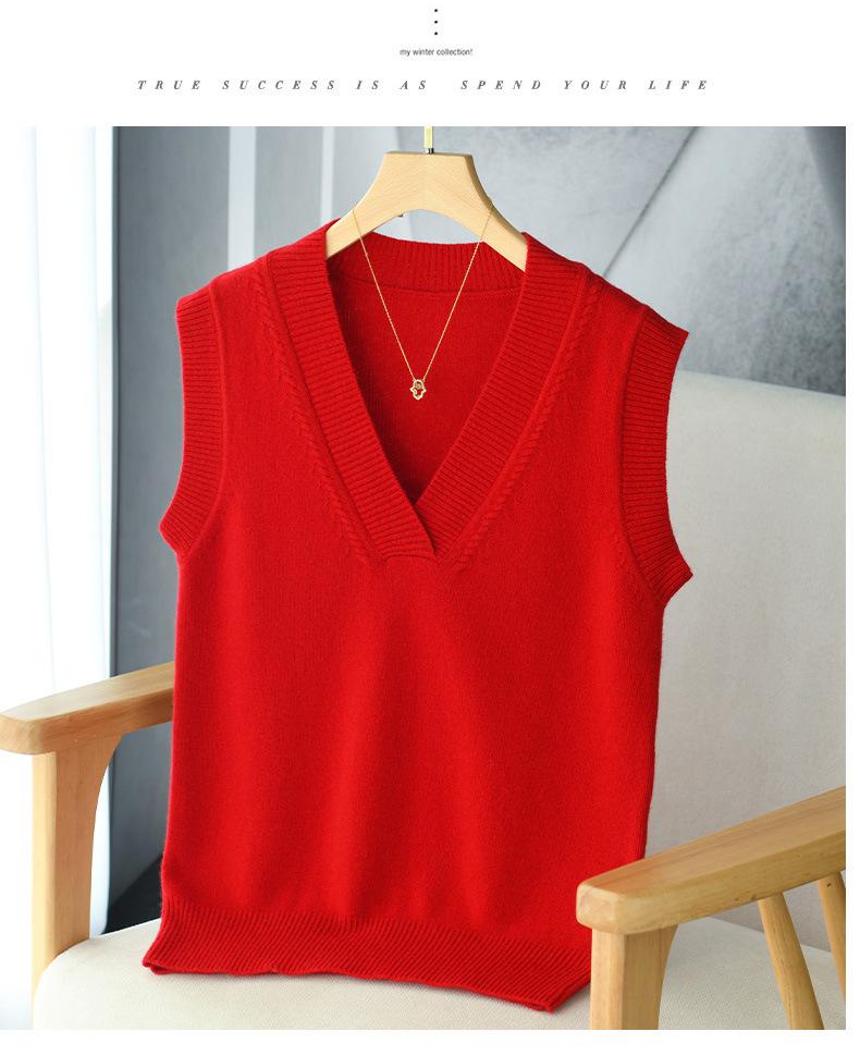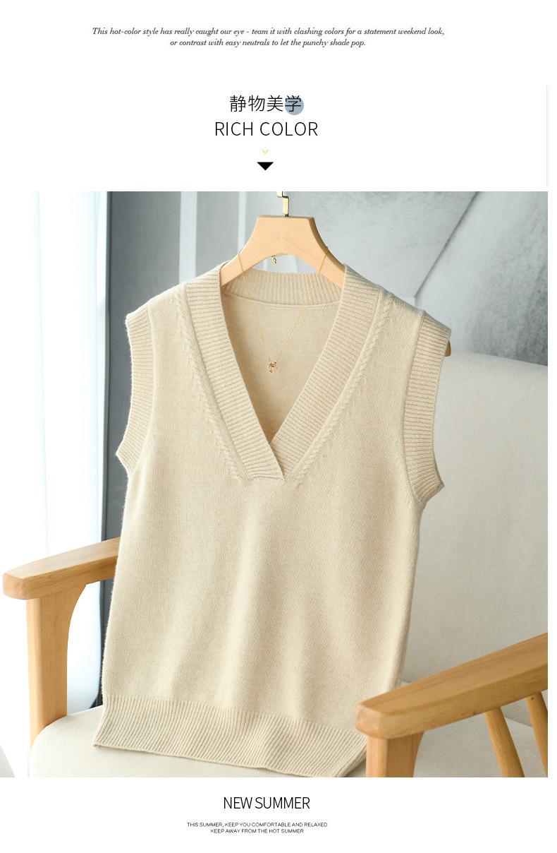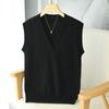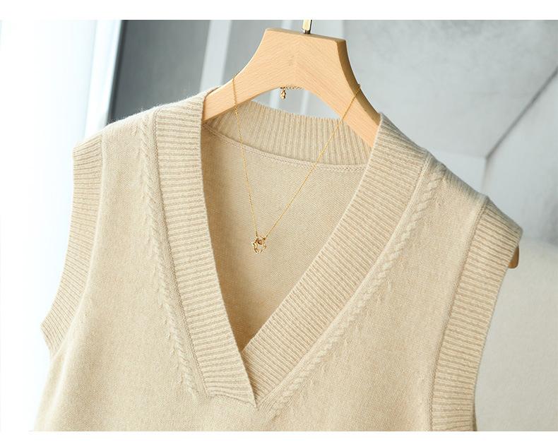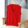 Chaleco de punto de lana con cuello en V para otoño e invierno, suéter holgado sin mangas para mujer, chaleco de lana pura, ropa exterior, chaleco de moda