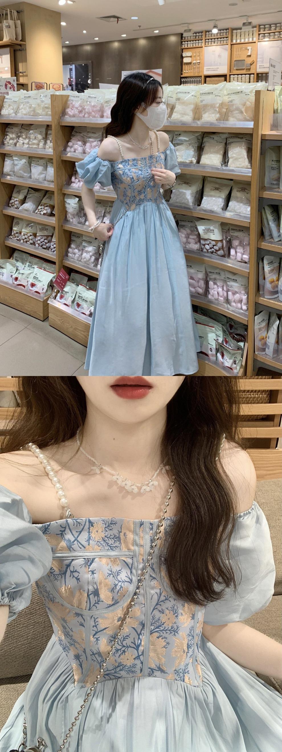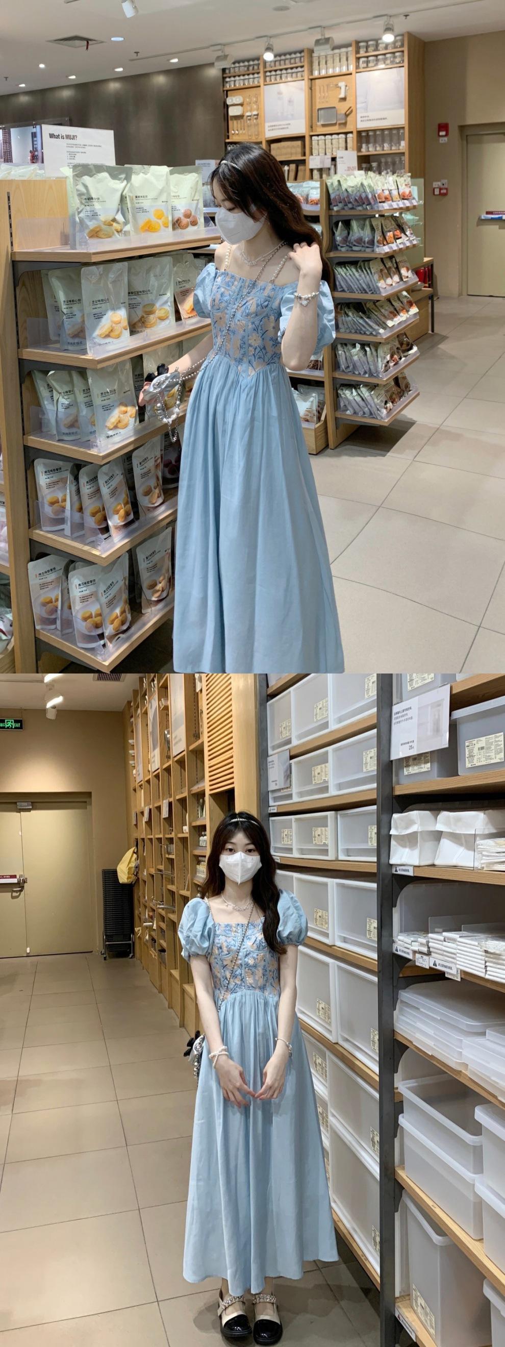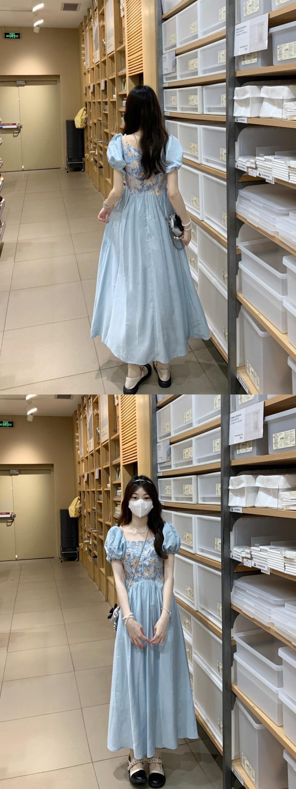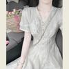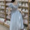 Vestido de verano para mujer, estilo francés, estilo retro, jacquard, con mangas abullonadas, elegante y adelgazante, largo, talla grande