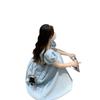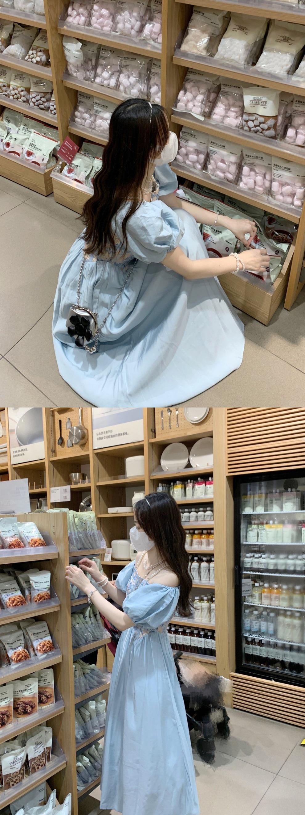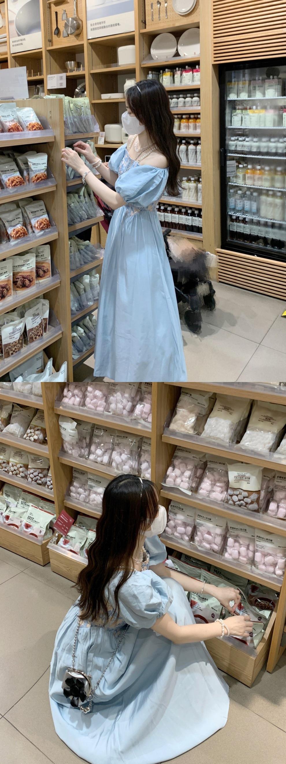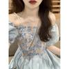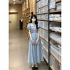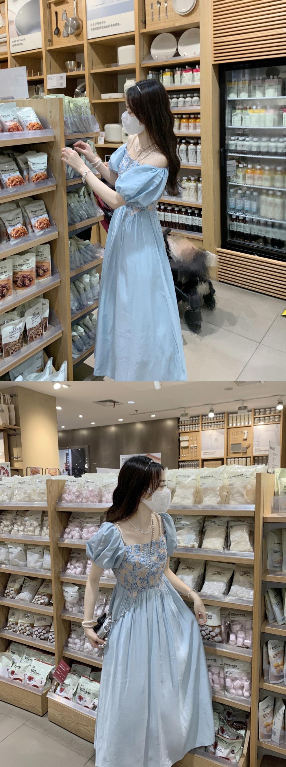 Vestido de verano para mujer, estilo francés, estilo retro, jacquard, con mangas abullonadas, elegante y adelgazante, largo, talla grande