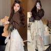 Falda Midi Mujer Primavera Falda Línea A Cintura Alta 2023 Nueva Talla Grande Chica Gordita Alta Gama Industria Pesada Gasa Chifón Falda