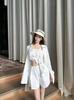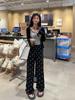 Cárdigan de punto negro con camisola interior para mujer, traje de verano con letras estampadas, pantalones casuales, conjunto de tres piezas