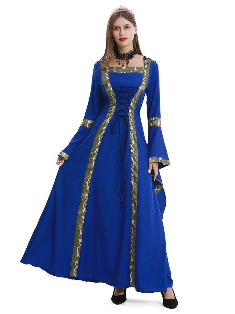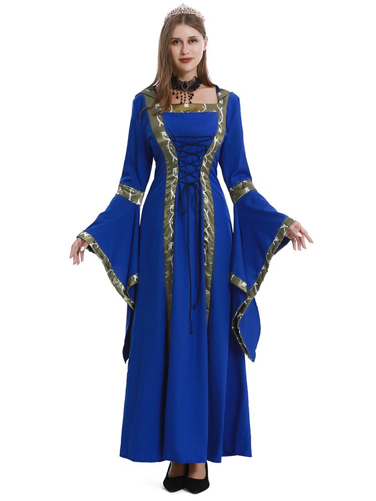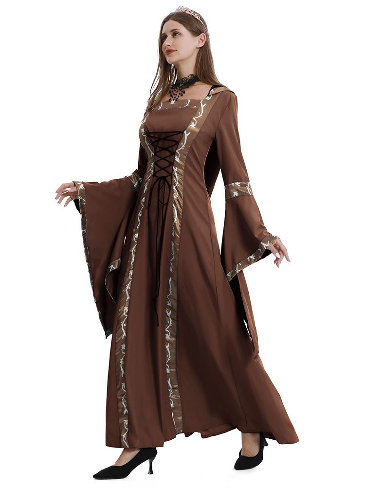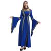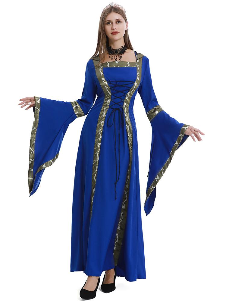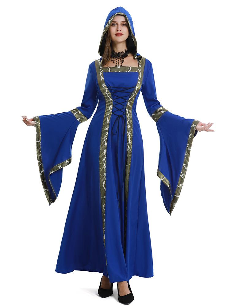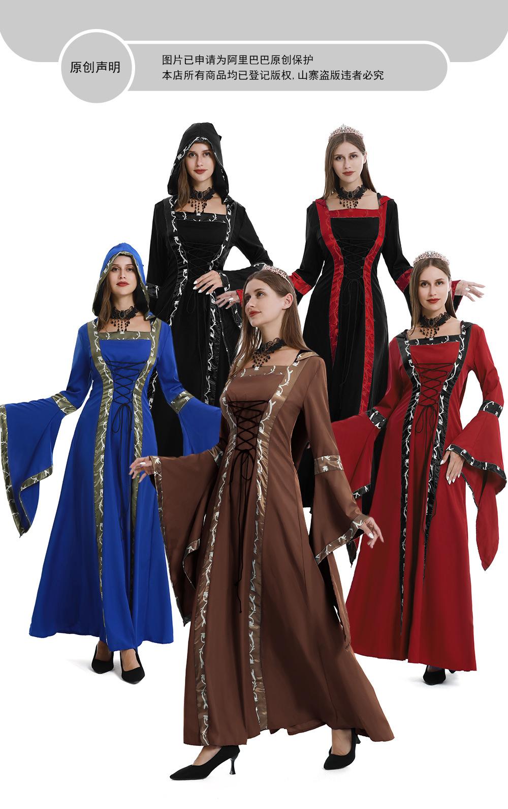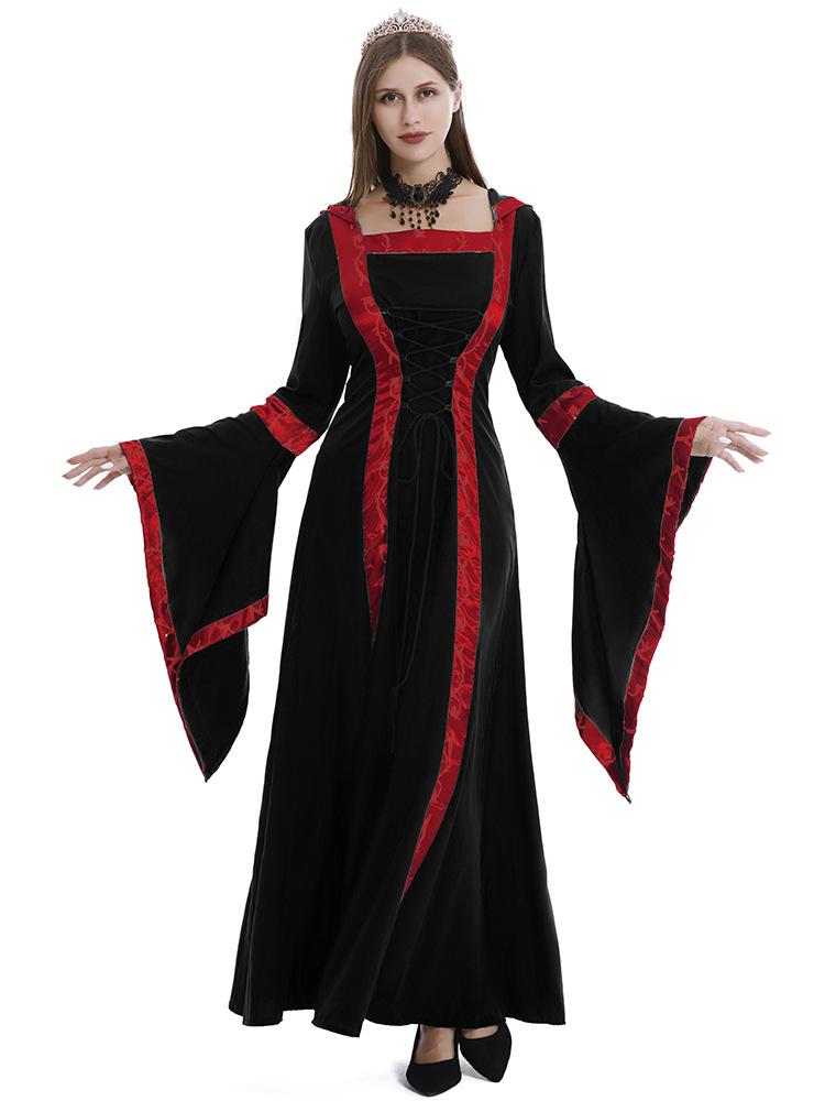 Vestido retro medieval con capucha de Halloween, estilo europeo y americano, con cuello cuadrado, cordones y mangas acampanadas, vestido grande para actuaciones escénicas.