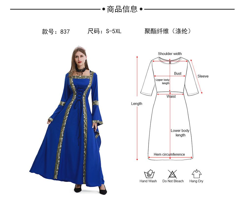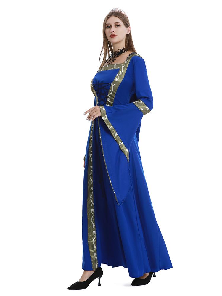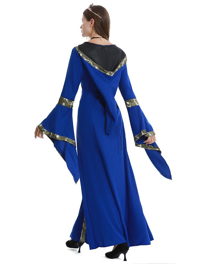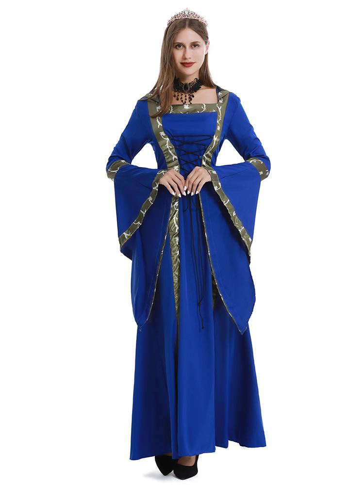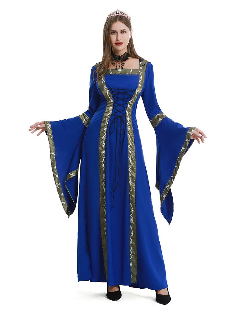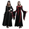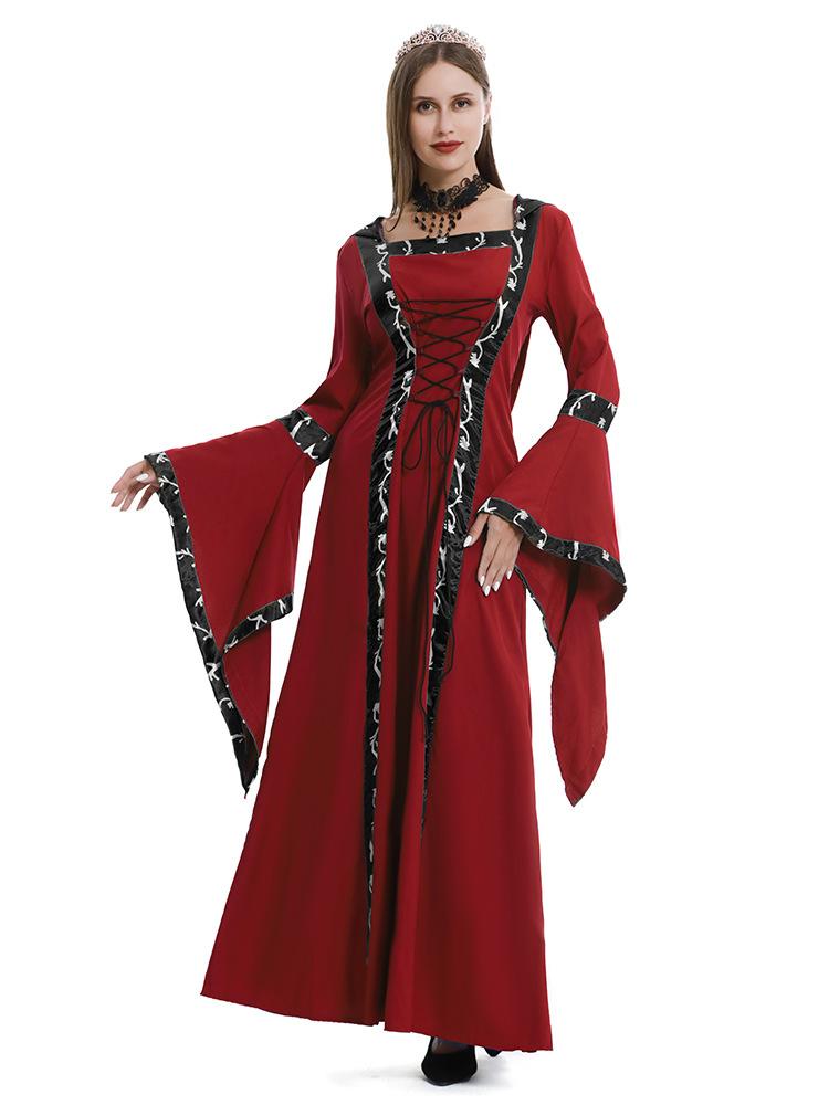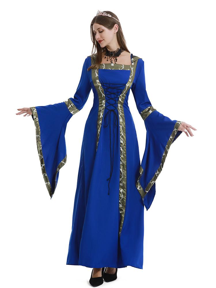 Vestido retro medieval con capucha de Halloween, estilo europeo y americano, con cuello cuadrado, cordones y mangas acampanadas, vestido grande para actuaciones escénicas.