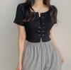 Camiseta de manga corta para chica sexy, estilo chino de verano para mujer, diseño de nicho, cuello alto, cintura alta irregular, top corto de moda