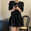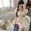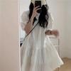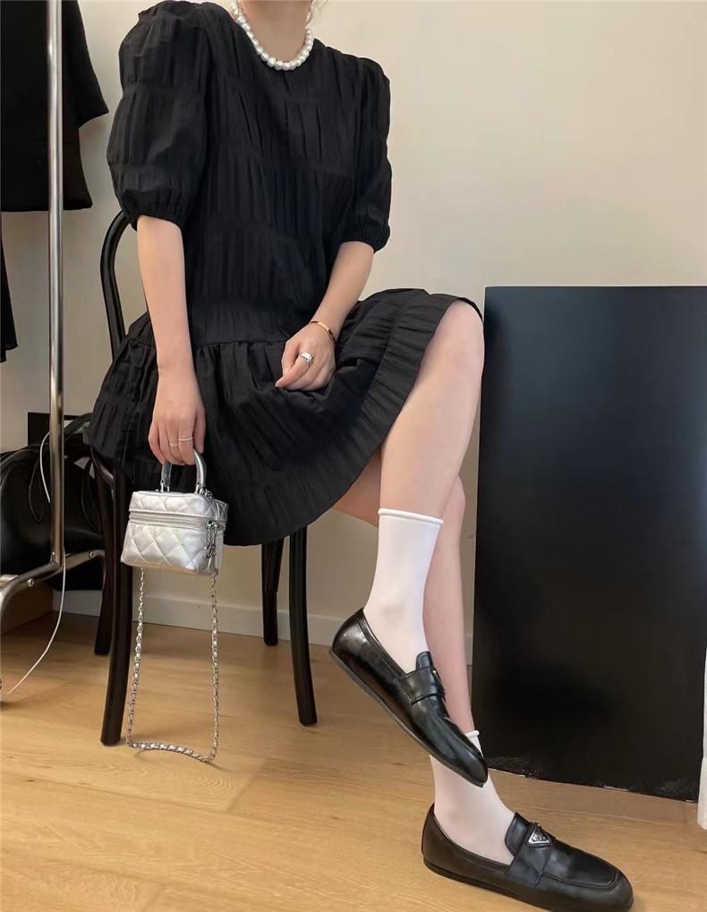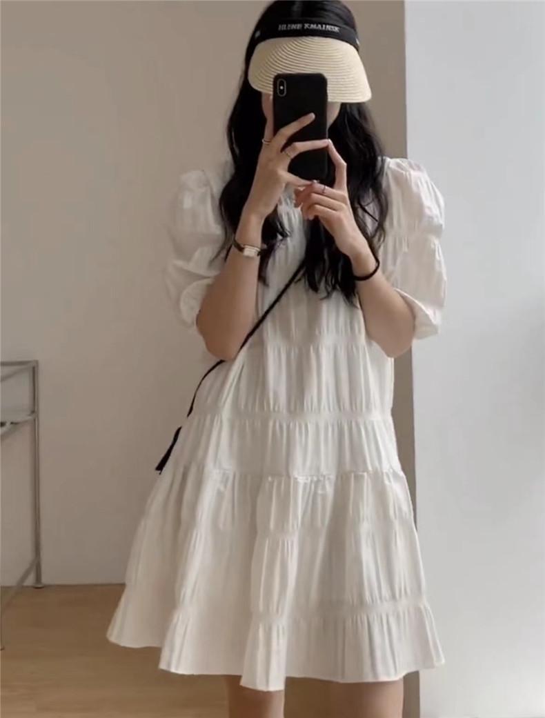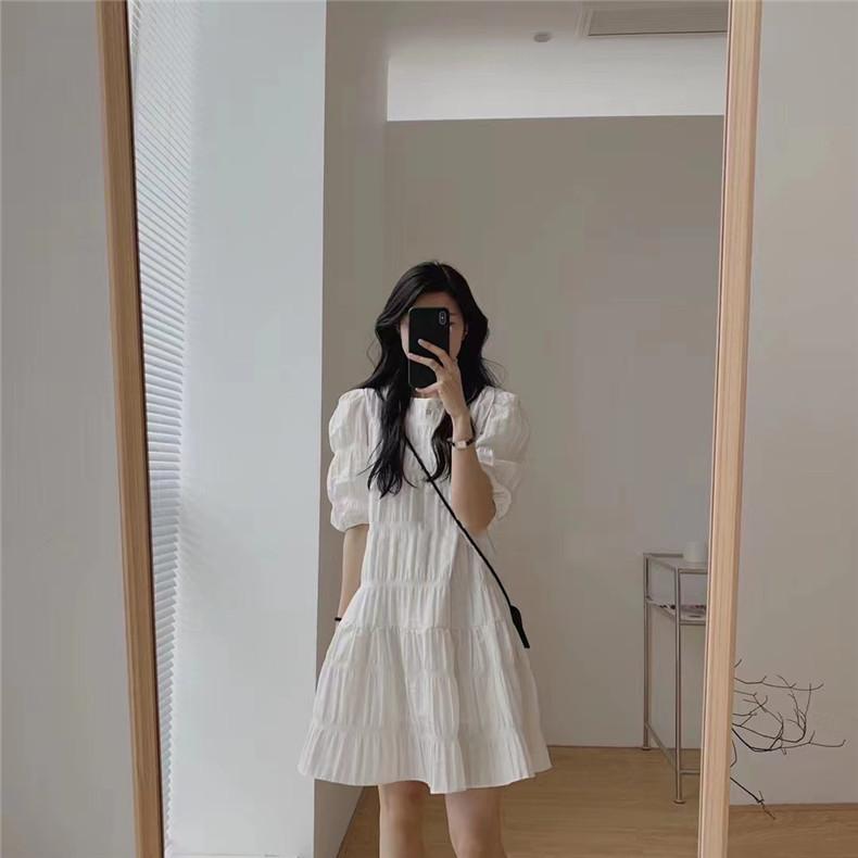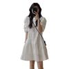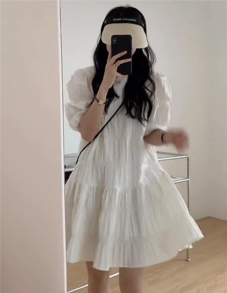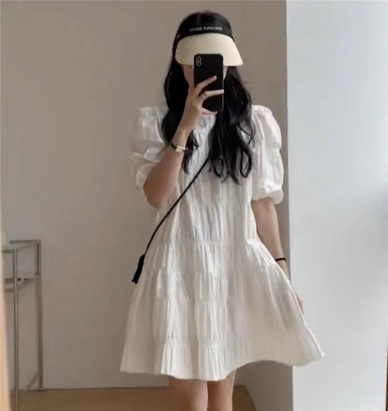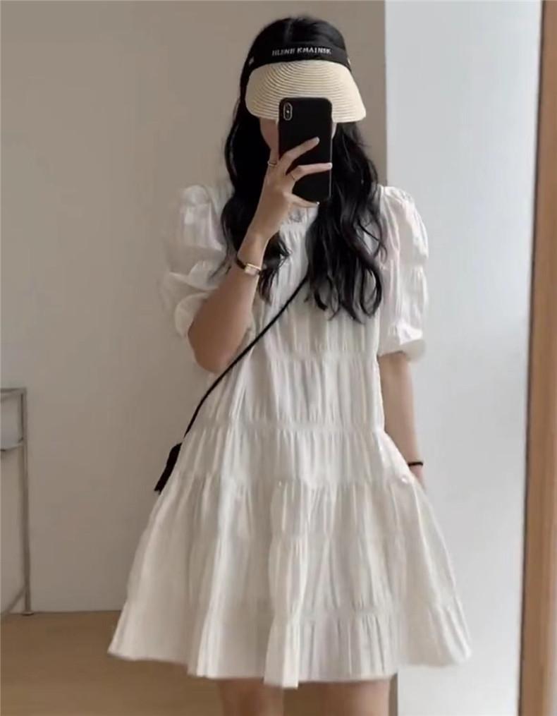 2024 Nuevo Estilo de Verano Nicho Vestido Francés de Manga Abullonada Plisado para Mujer, Vestido Corto de Verano Ajustado para Figuras Petite, Versátil