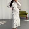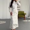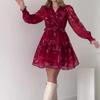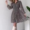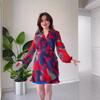 Otoño 2024 nuevo vestido europeo y americano transfronterizo de Amazon transfronterizo de moda estampado plisado diseño de cintura alta manga larga