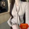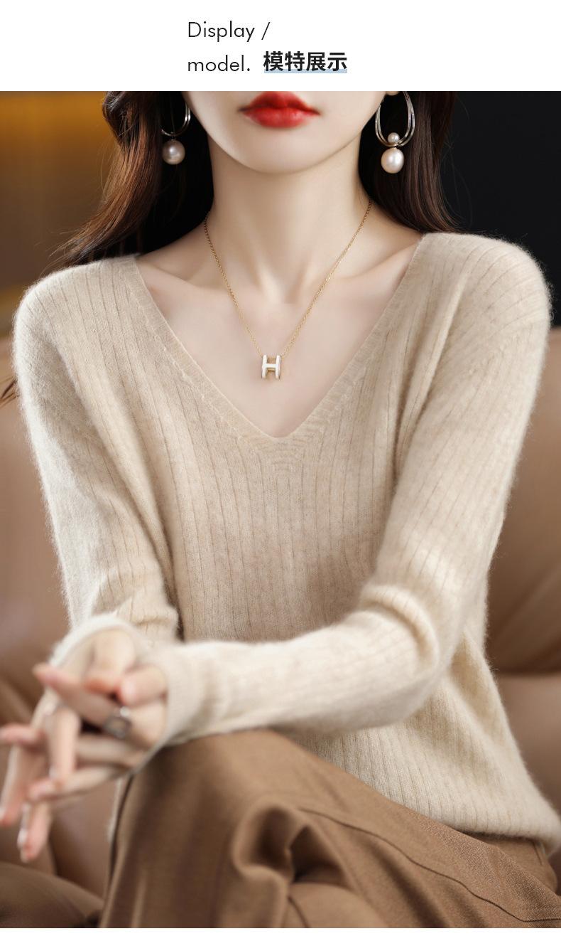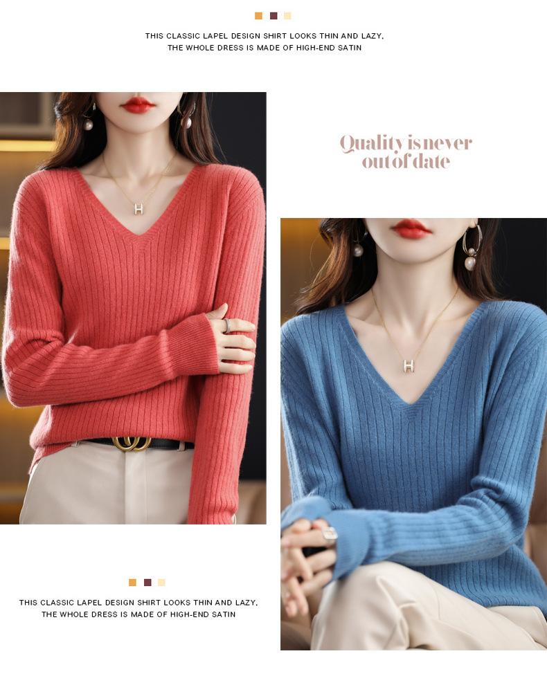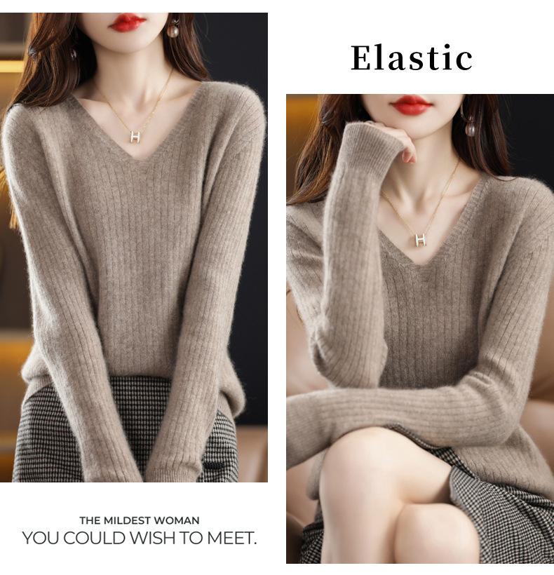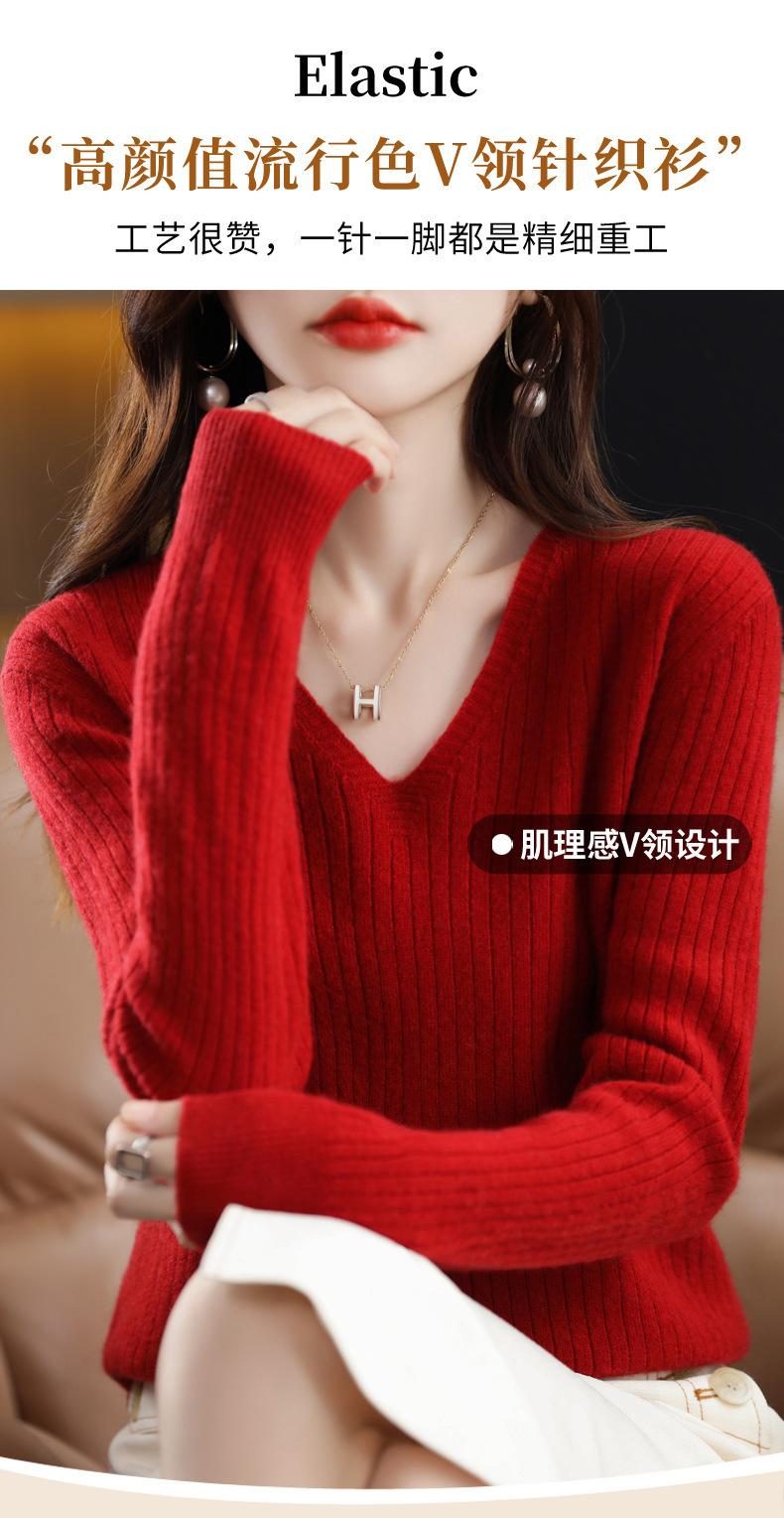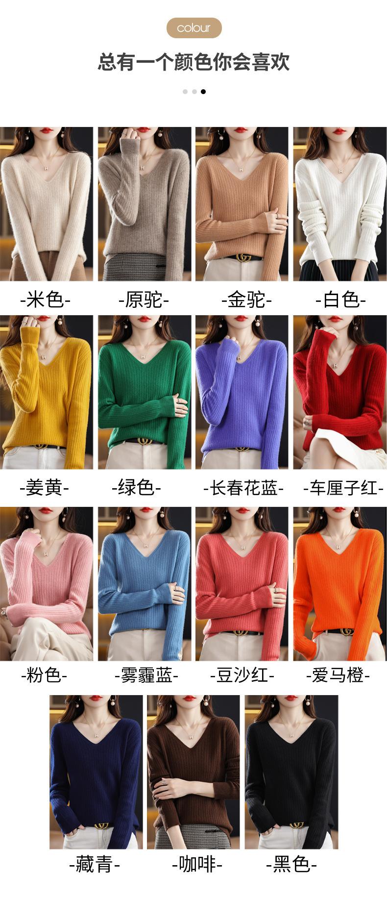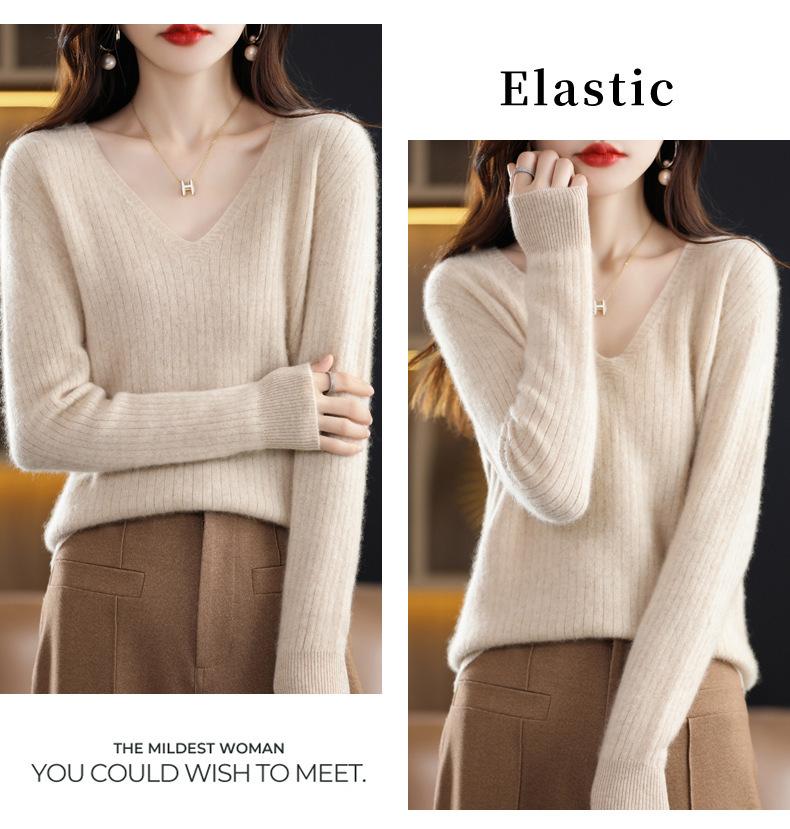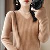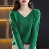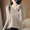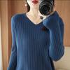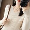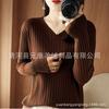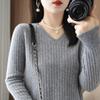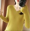 Suéter de punto para mujer, jersey de cuello en V, manga larga, corto, versátil, color sólido, capa base, parte superior interior estilizada