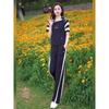 Conjunto deportivo informal de dos piezas con capucha, estilo coreano, holgado y fino, para mujer, talla grande, color blanco y gordo, para primavera y otoño