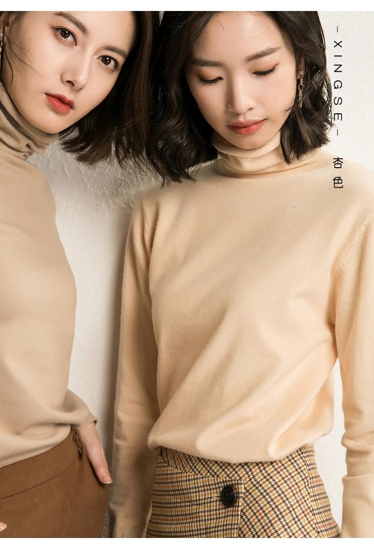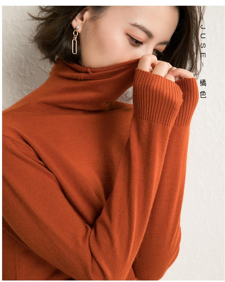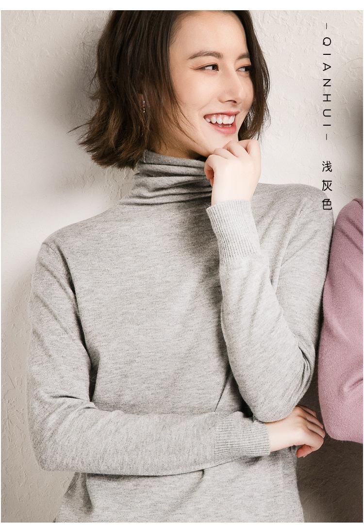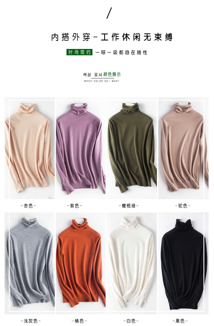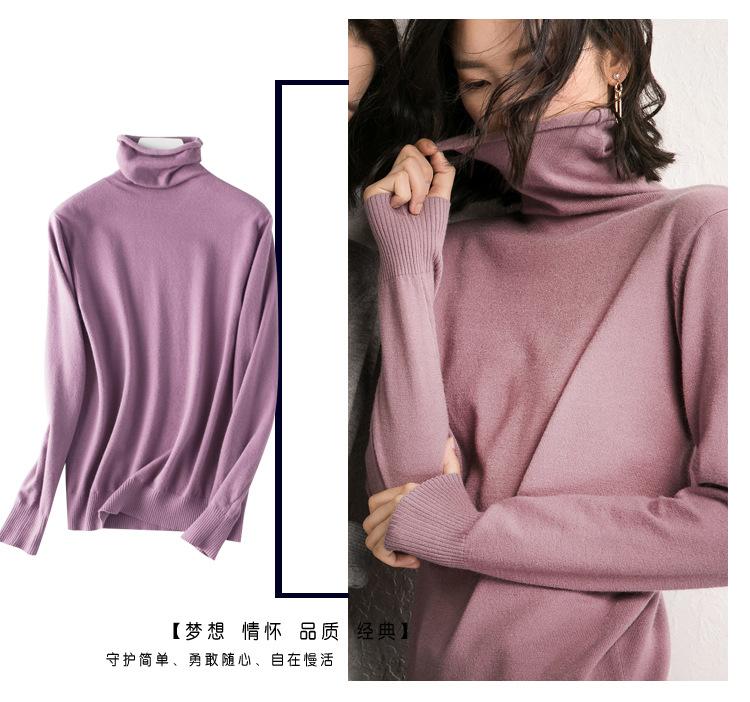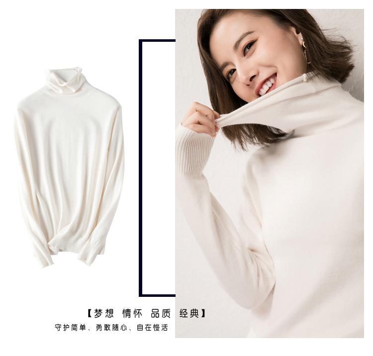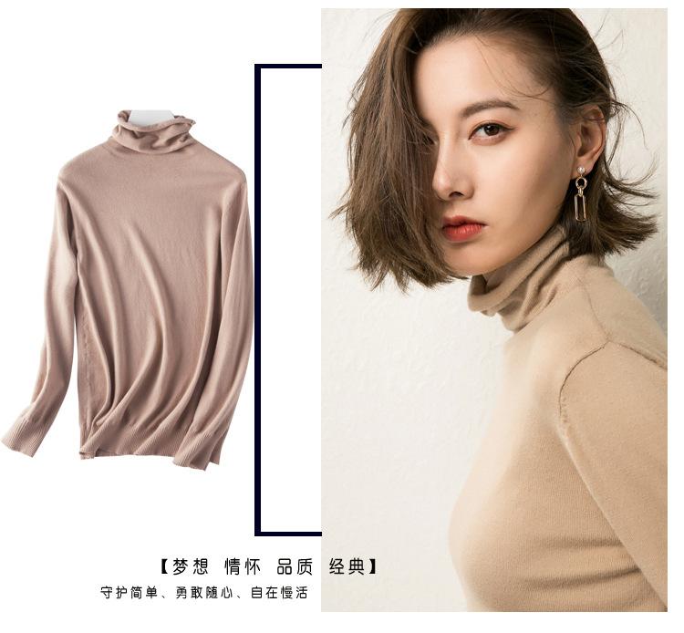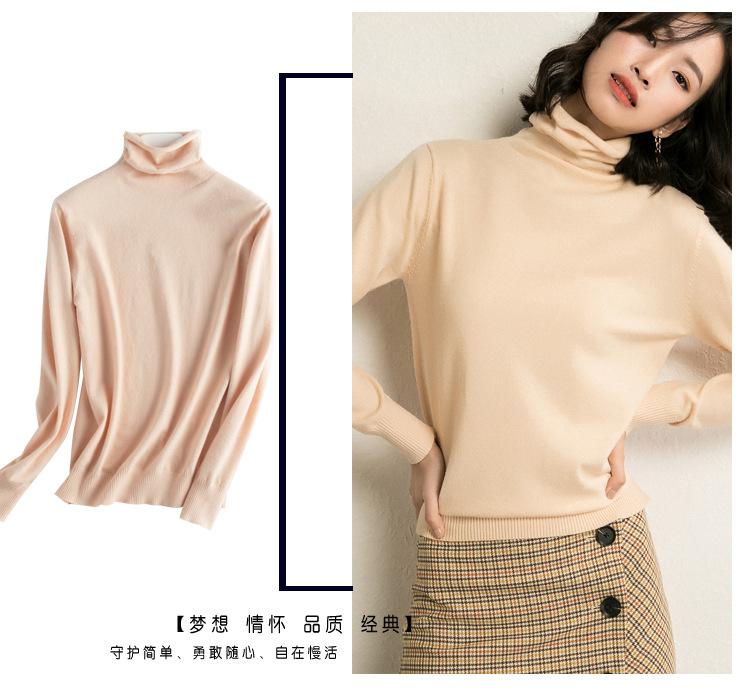 Suéter de cuello alto para mujer al por mayor de otoño e invierno, talla grande, camisa básica, suéter grueso, cuello alto, corto, color sólido, ajustado, de lana