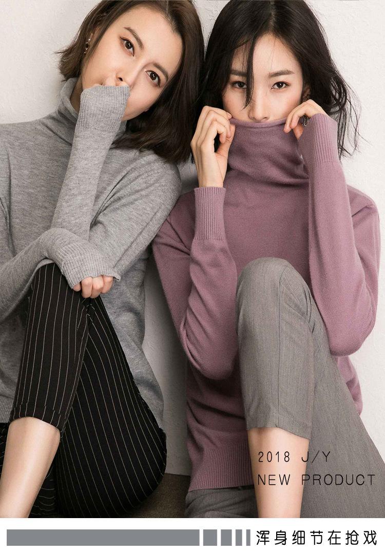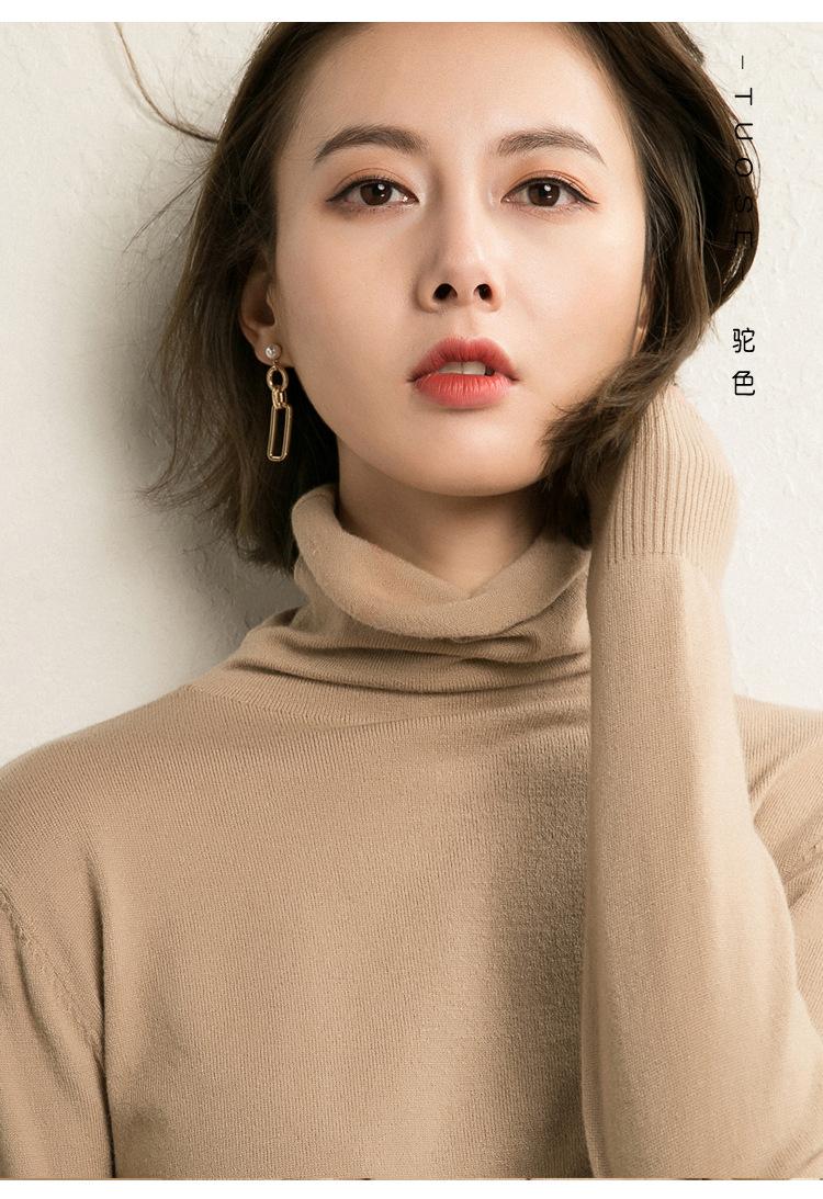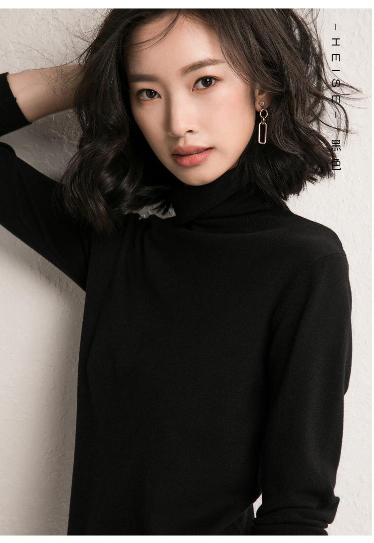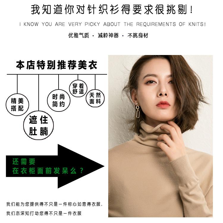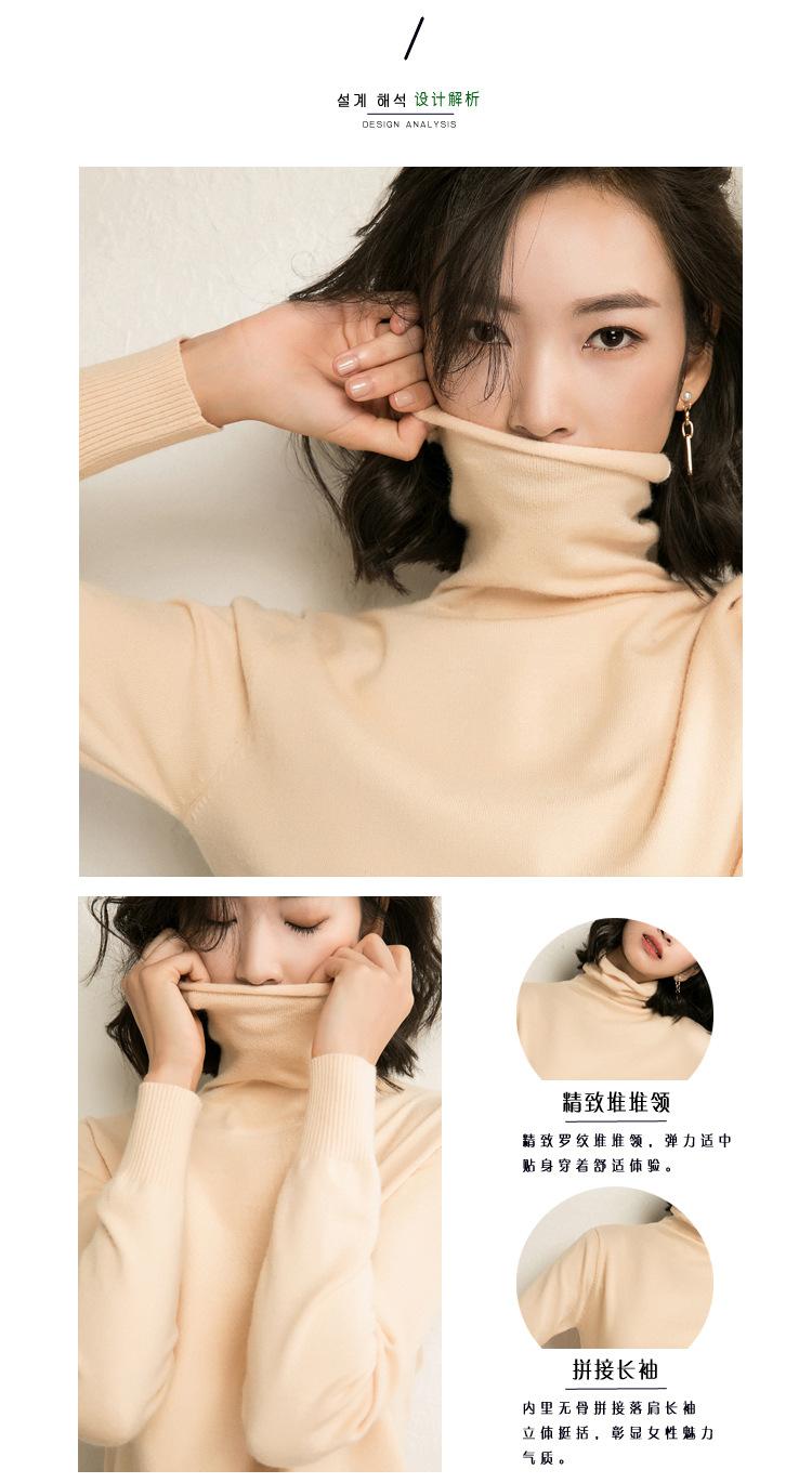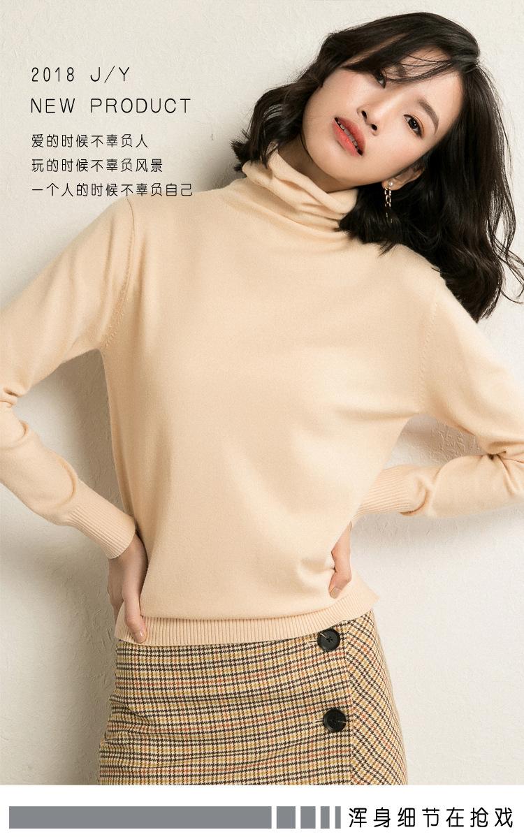 Suéter de cuello alto para mujer al por mayor de otoño e invierno, talla grande, camisa básica, suéter grueso, cuello alto, corto, color sólido, ajustado, de lana