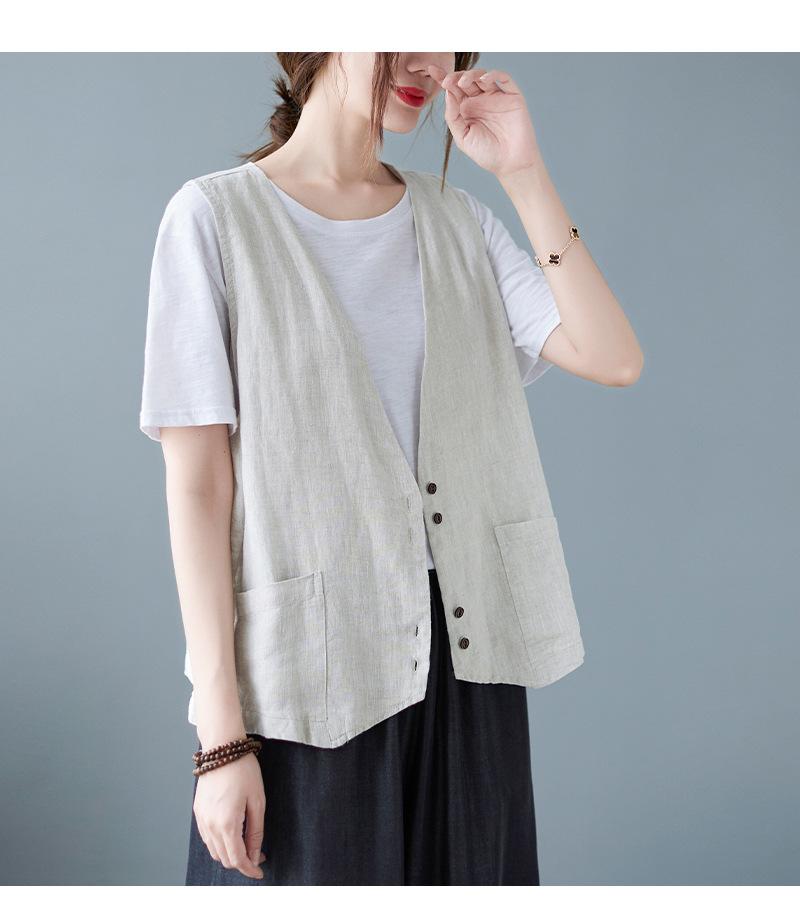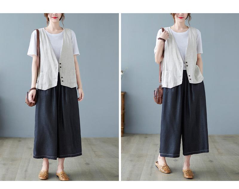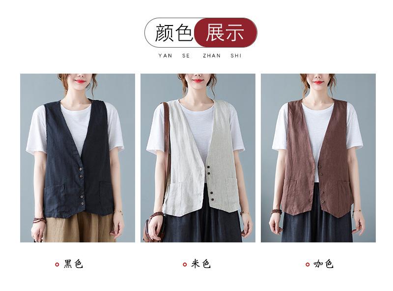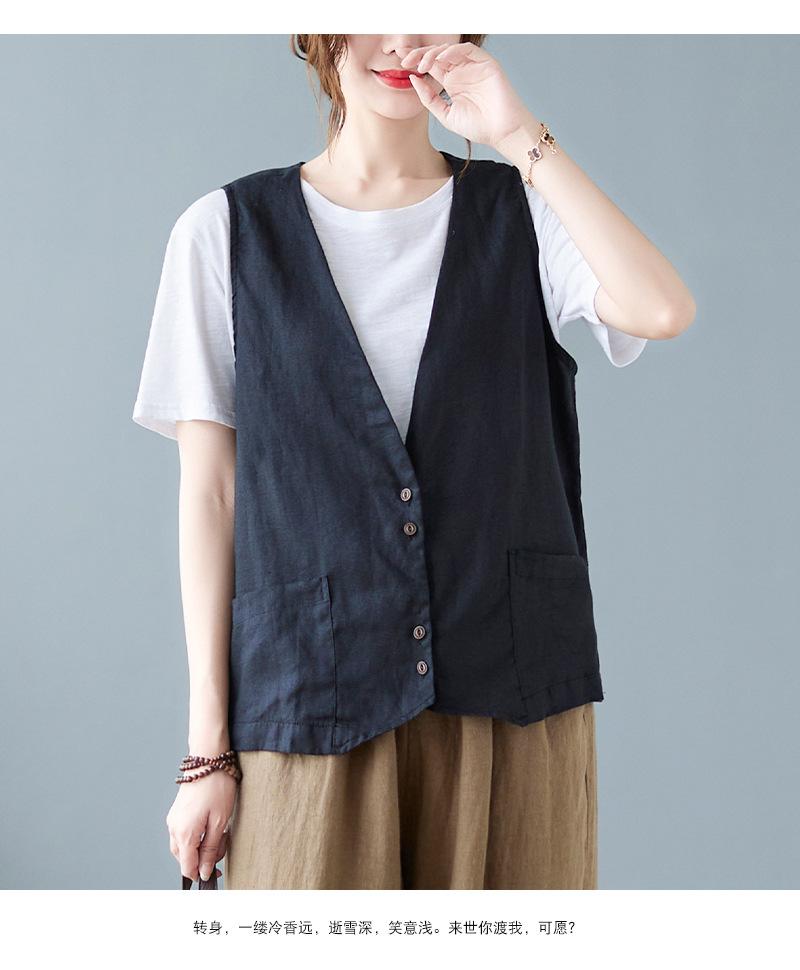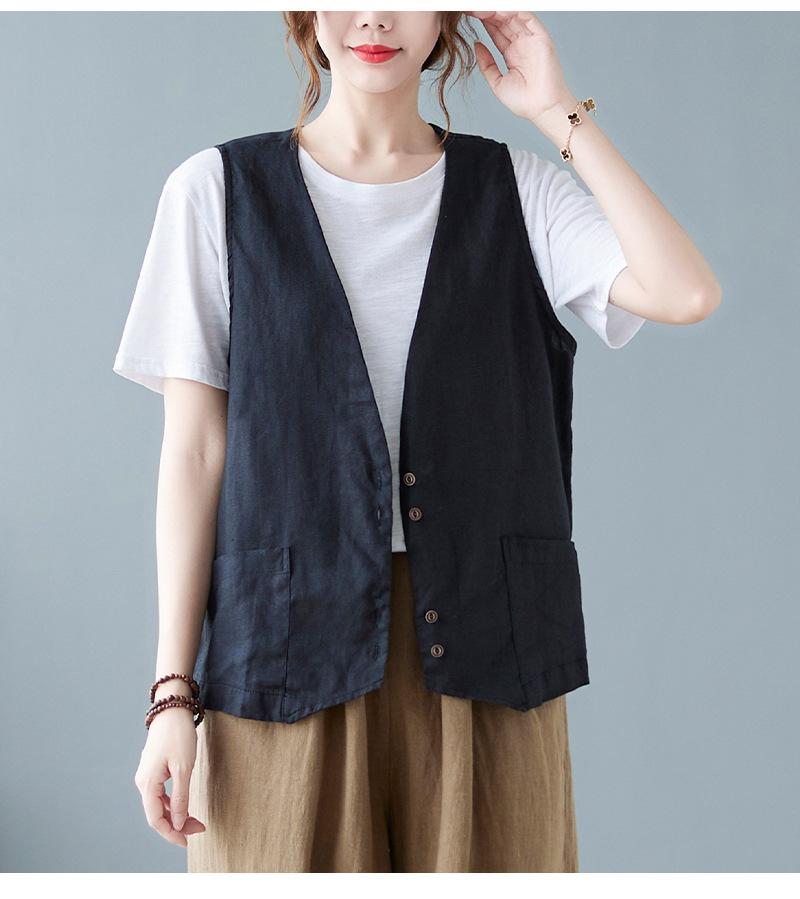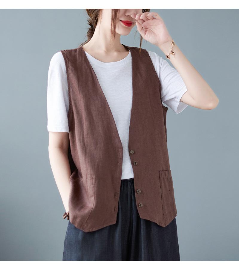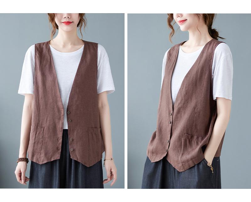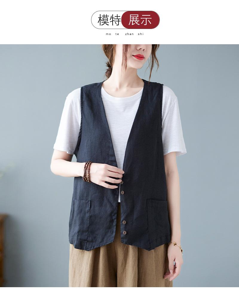 Chaleco de Lino Artístico para Mujer Chaleco de Verano Corto sin Mangas Chaleco Chaleco Casual Suelto para Mujer