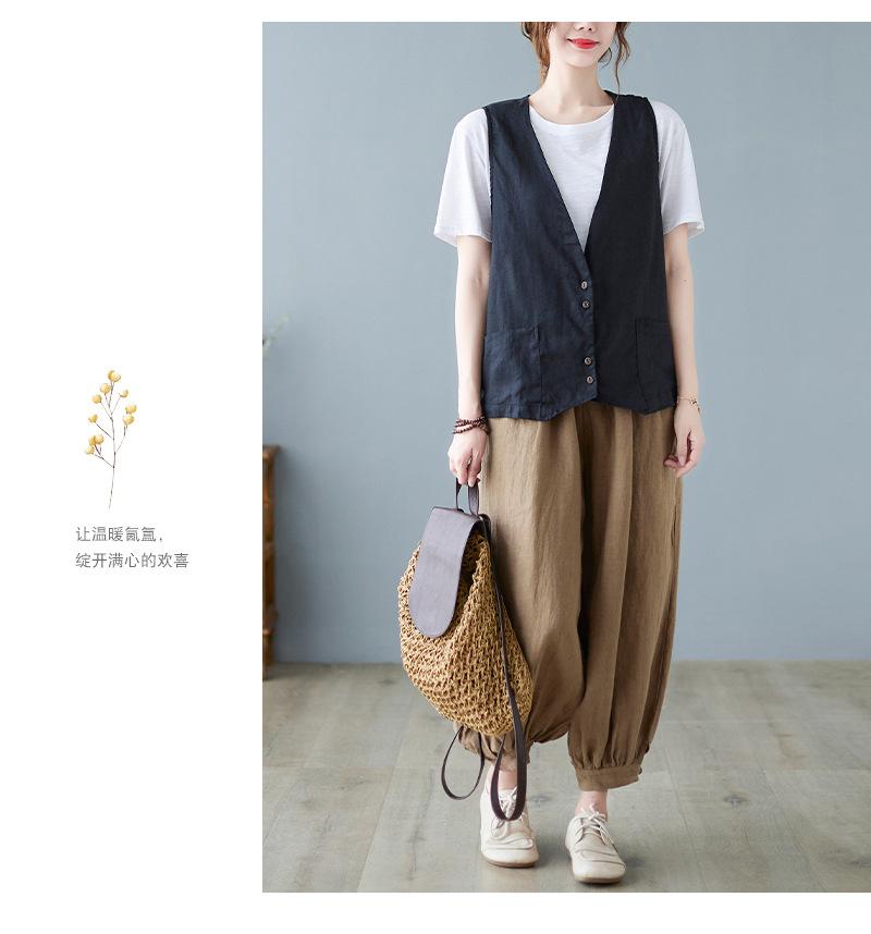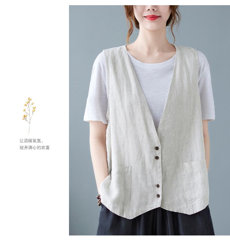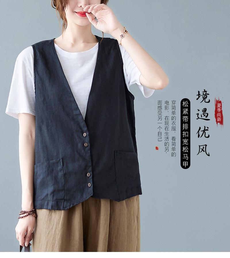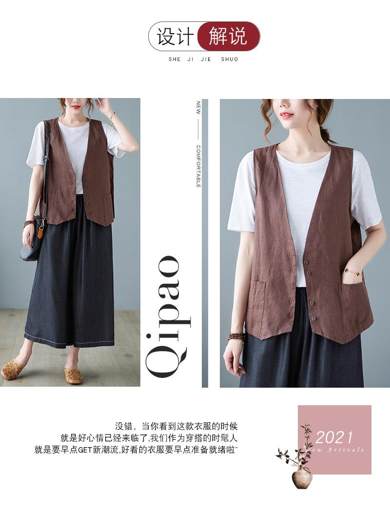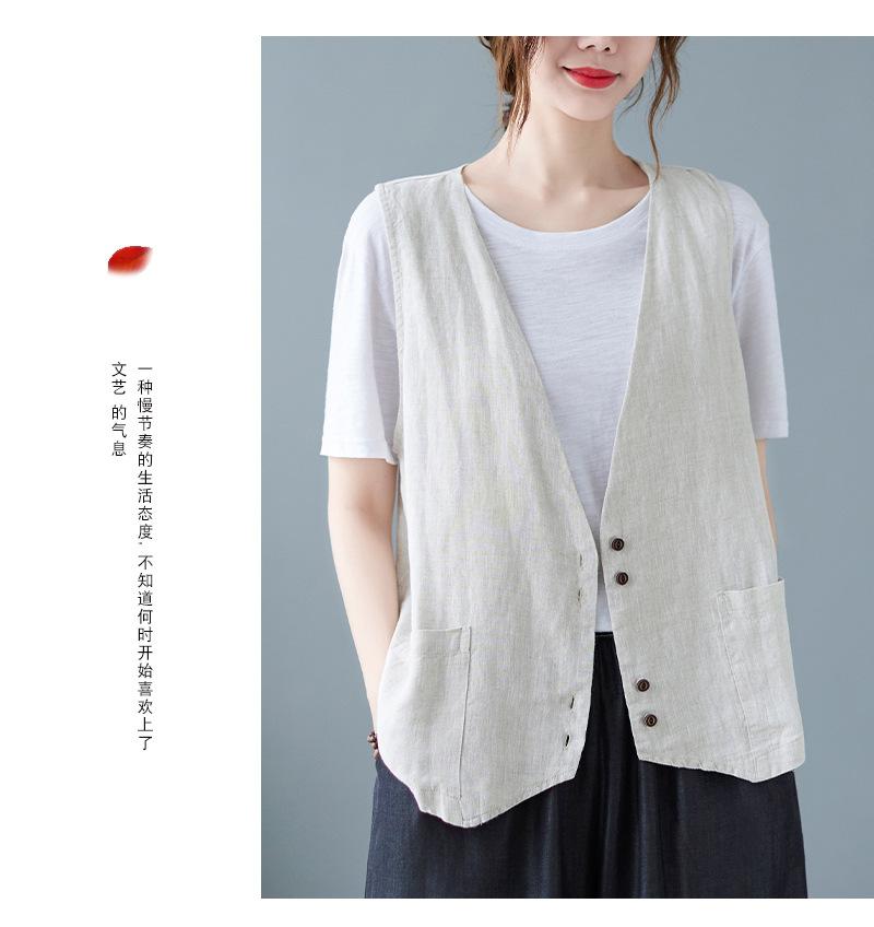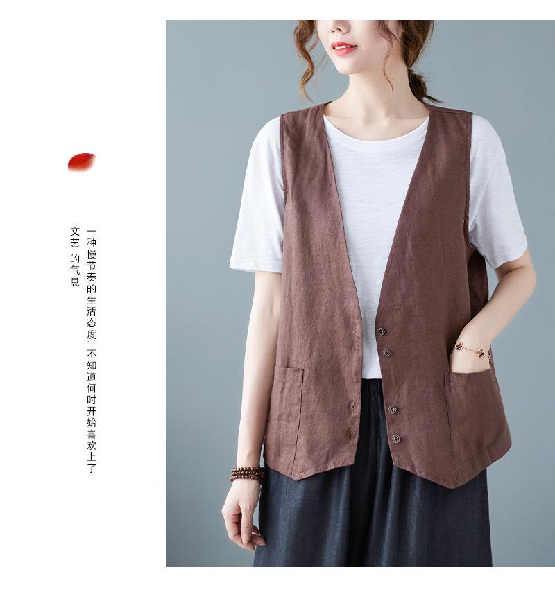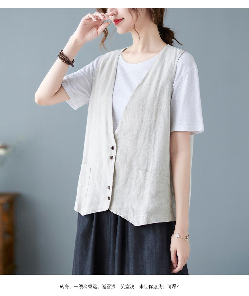 Chaleco de Lino Artístico para Mujer Chaleco de Verano Corto sin Mangas Chaleco Chaleco Casual Suelto para Mujer