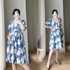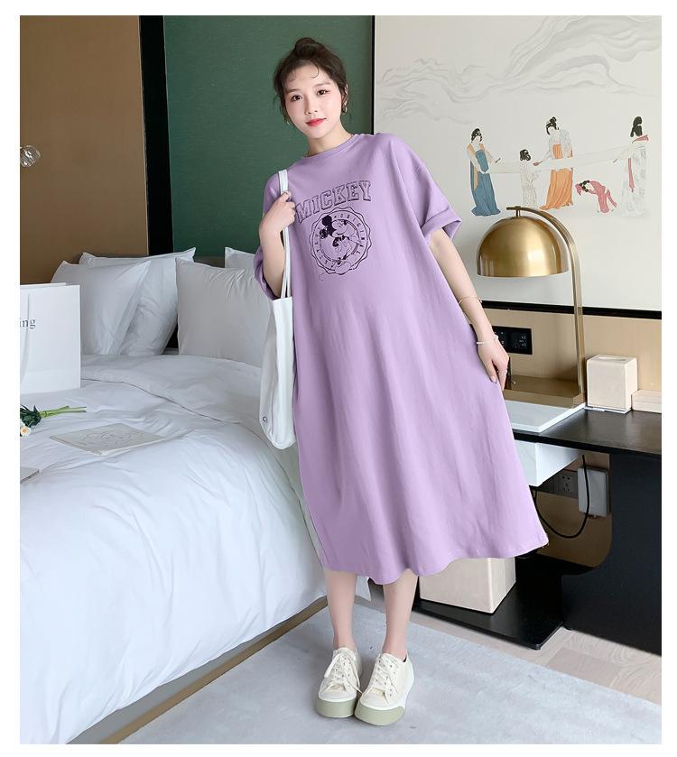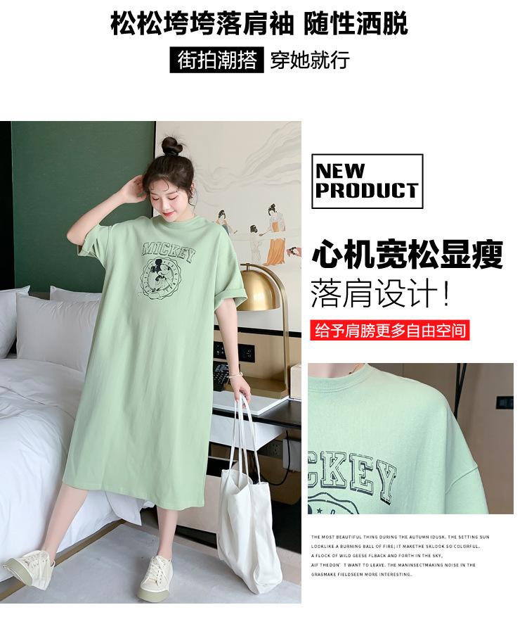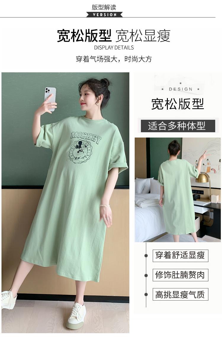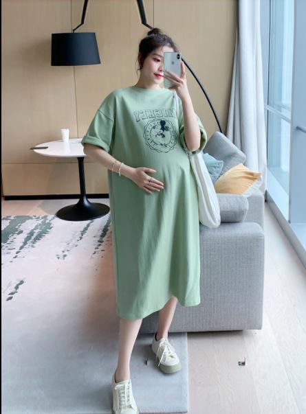 Vestido de verano para embarazadas, camiseta de talla grande, largo medio, estampado de moda de verano, vestido holgado por encima de la rodilla, falda de verano para embarazadas.