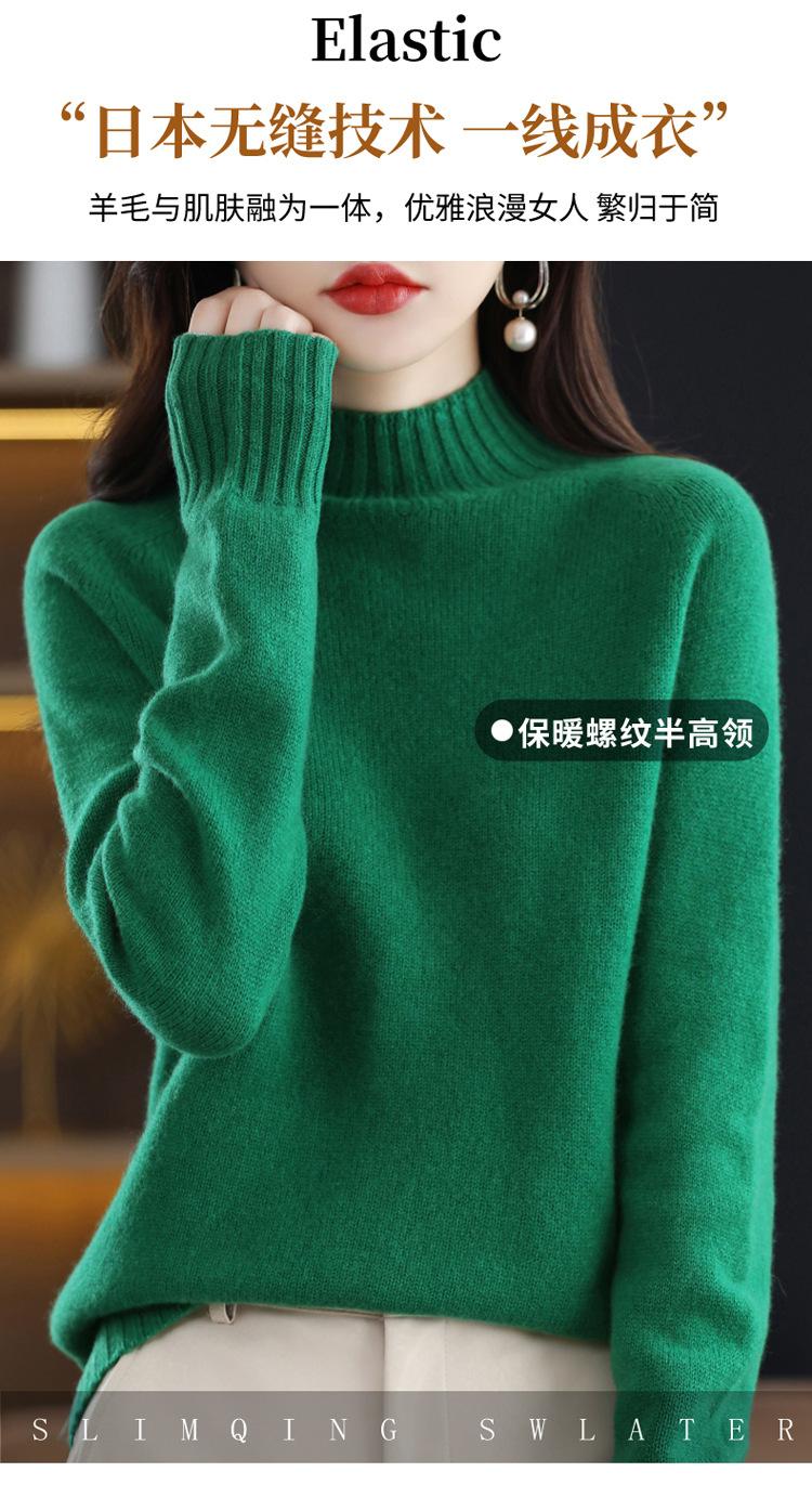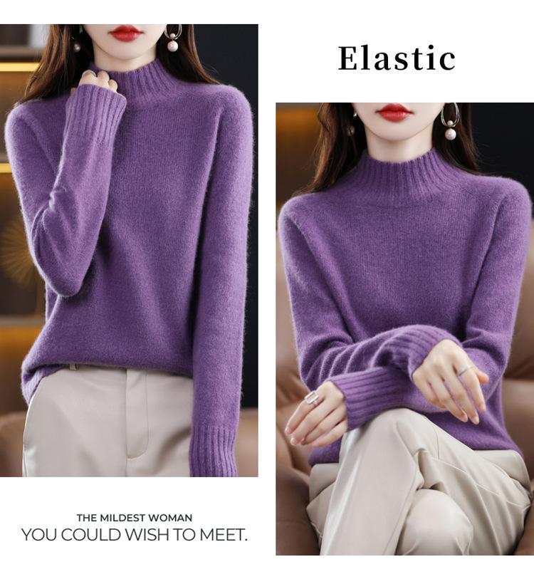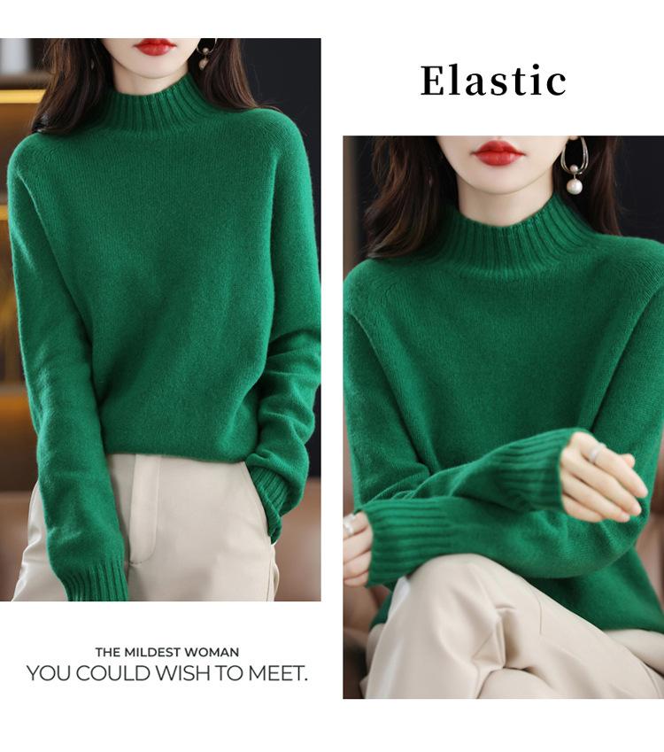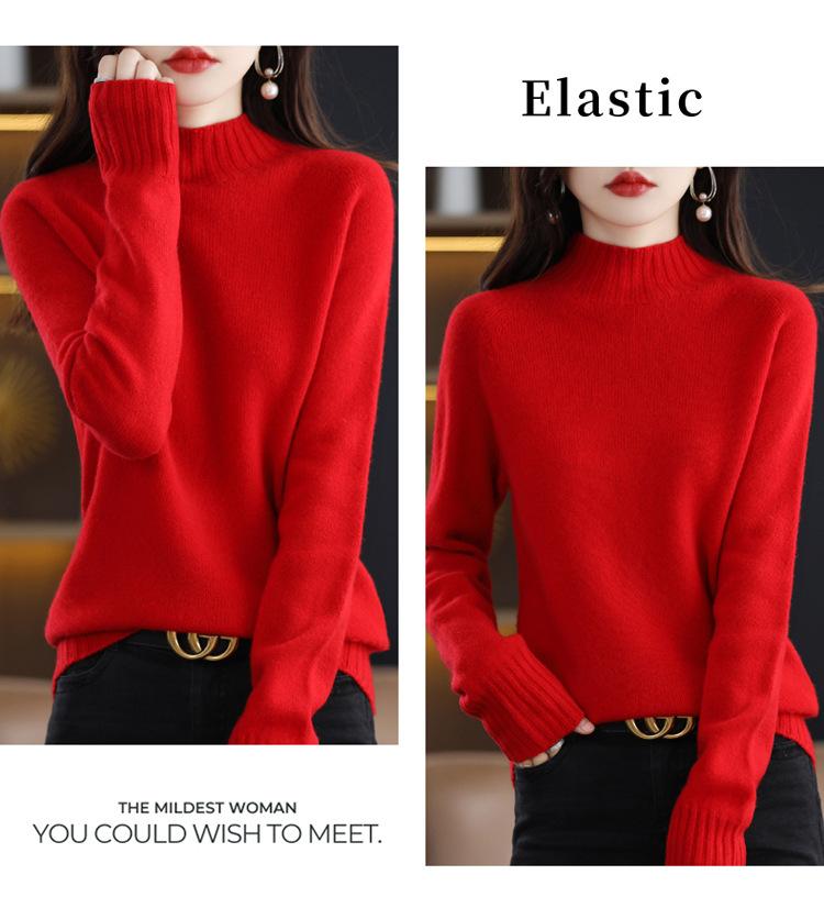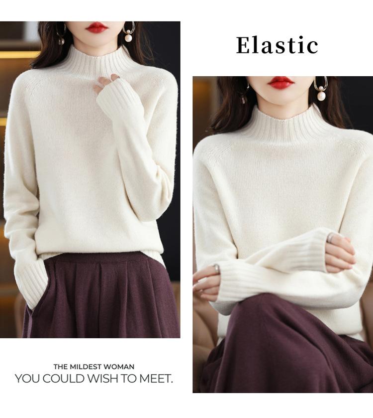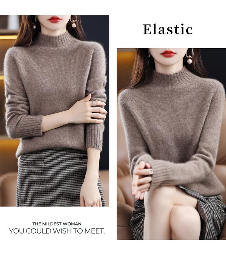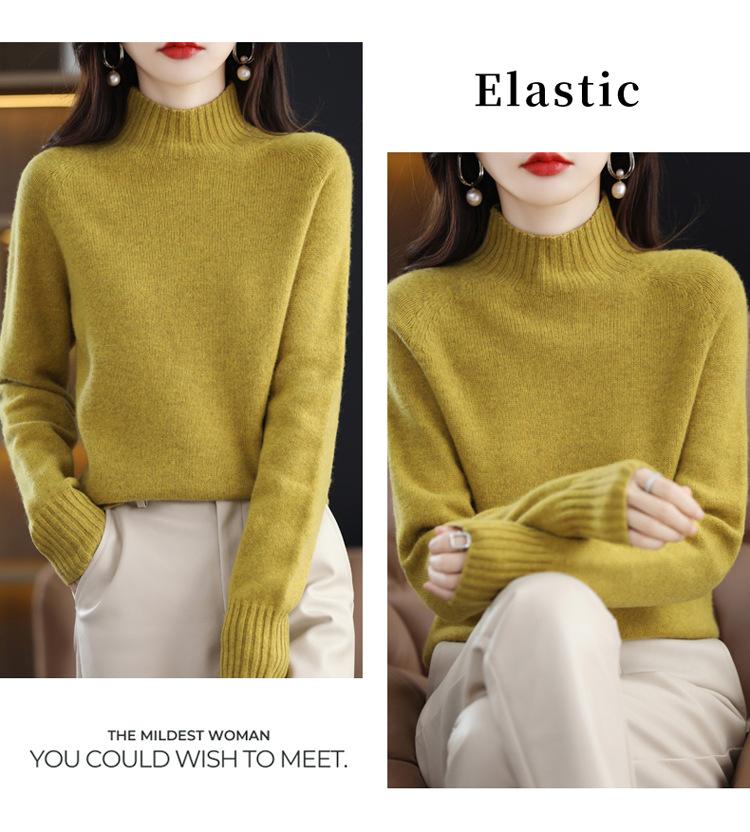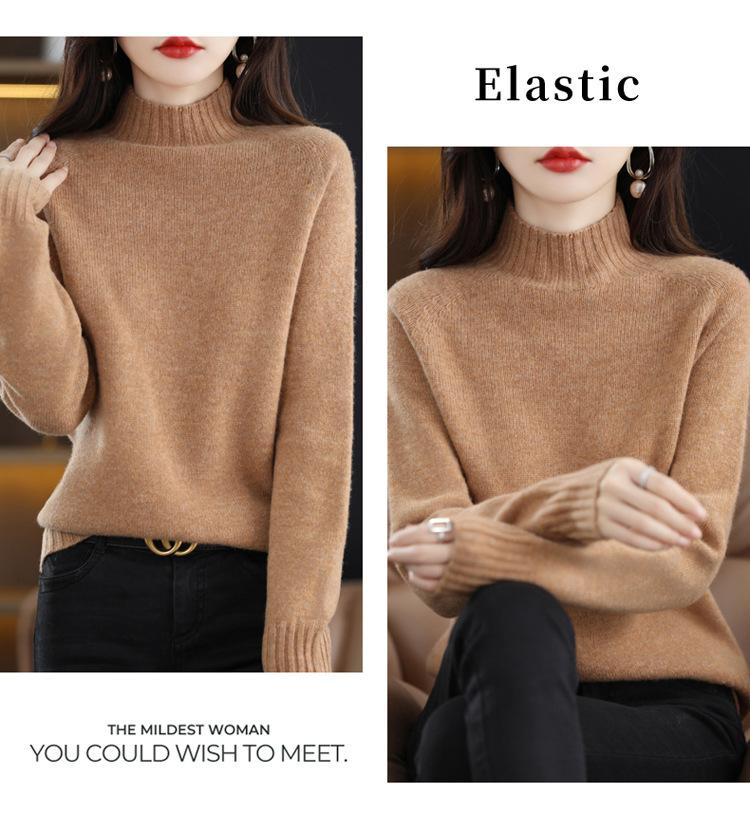 Suéter de Lana de Cuello Alto para Mujer 100% Lana Pura Camiseta Base Otoño e Invierno Espesado Interior Ajustado Corto Tejido