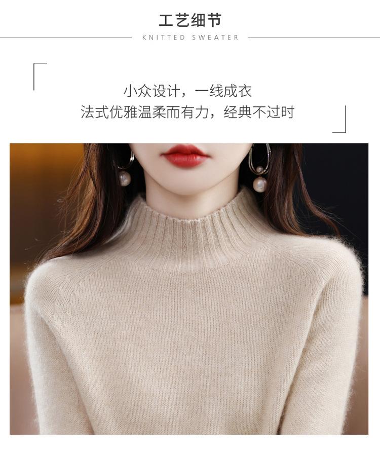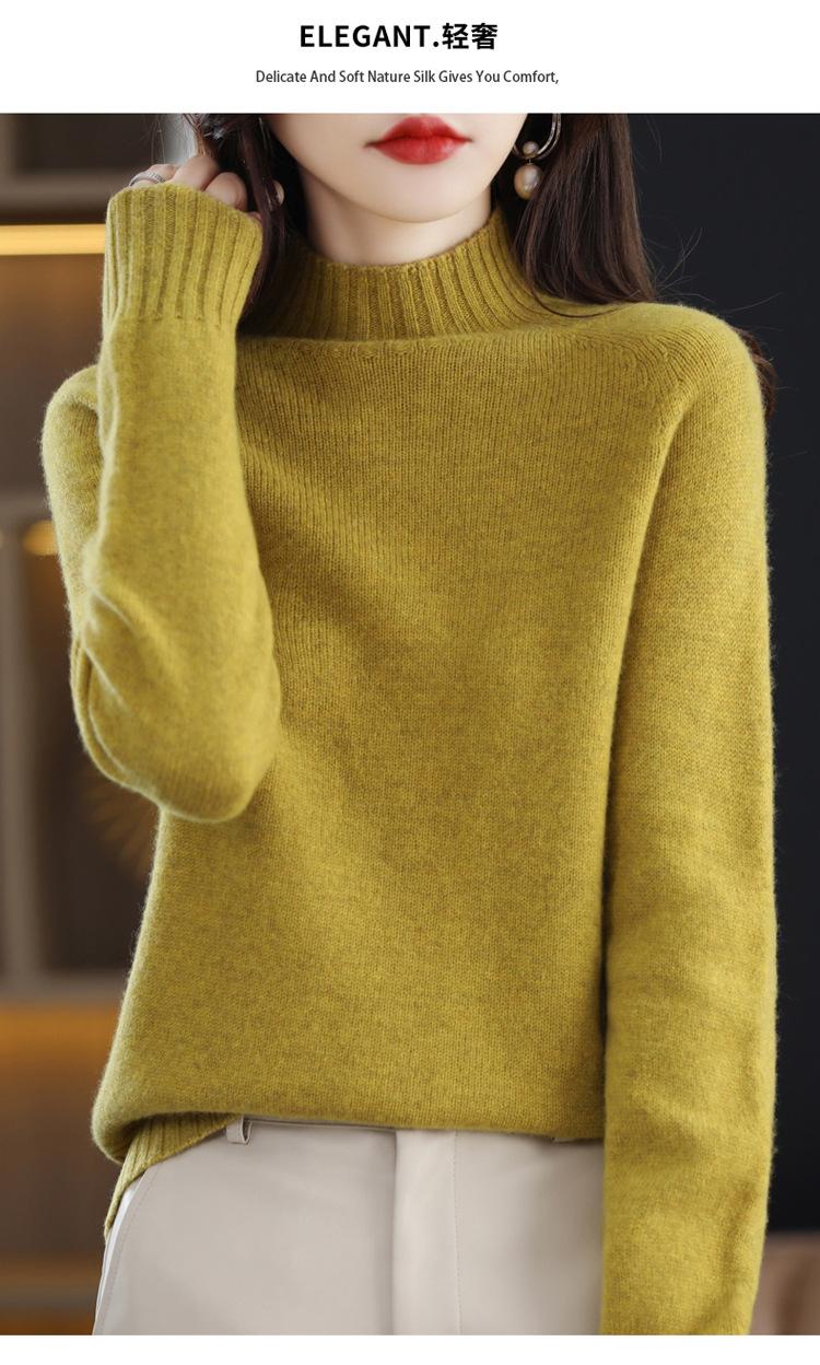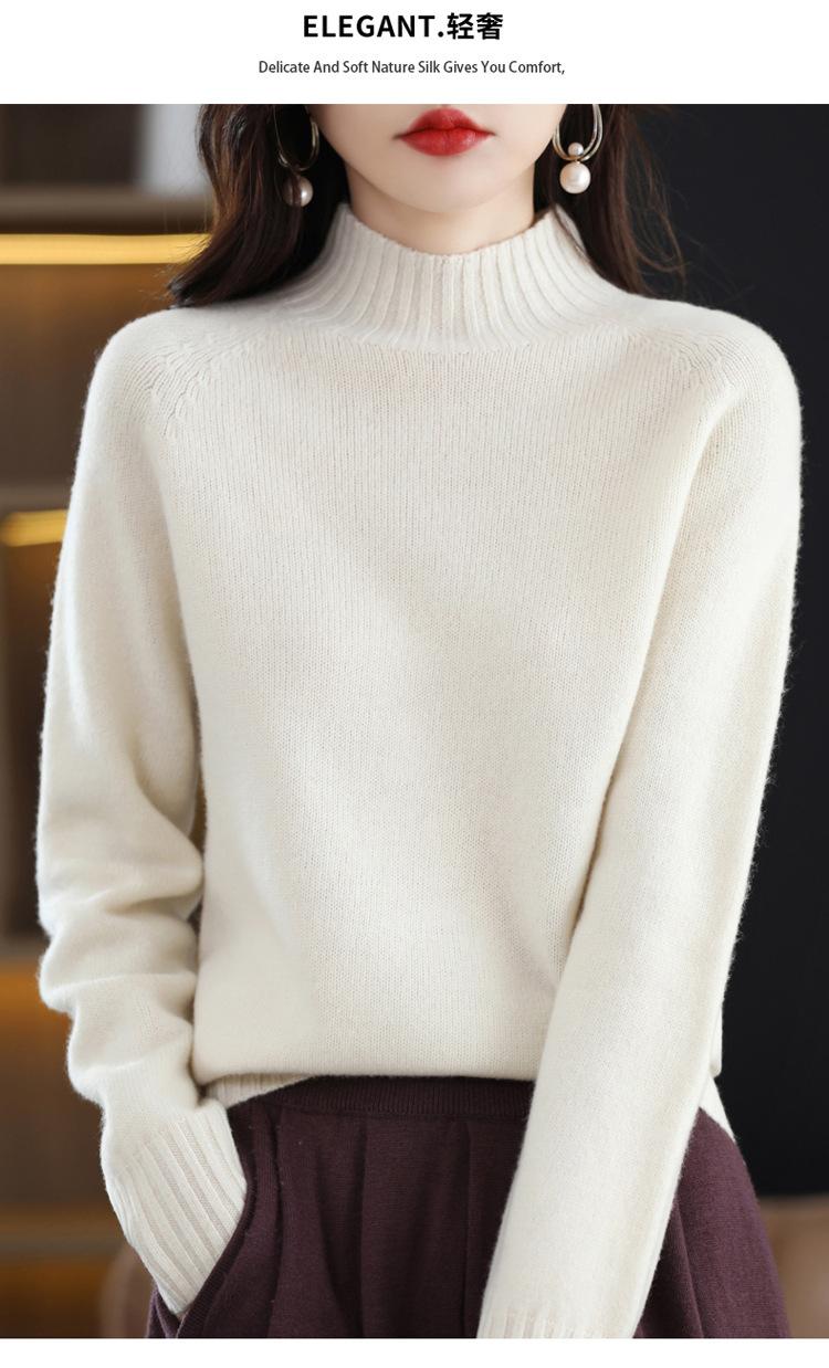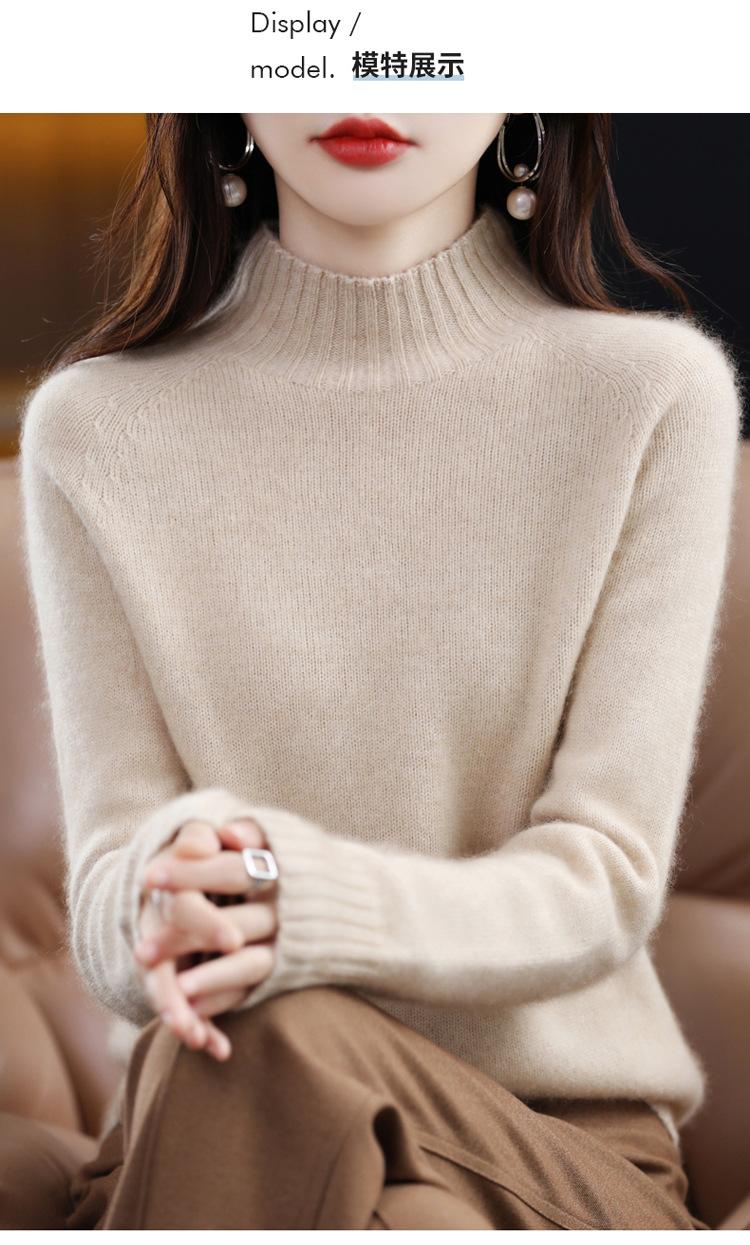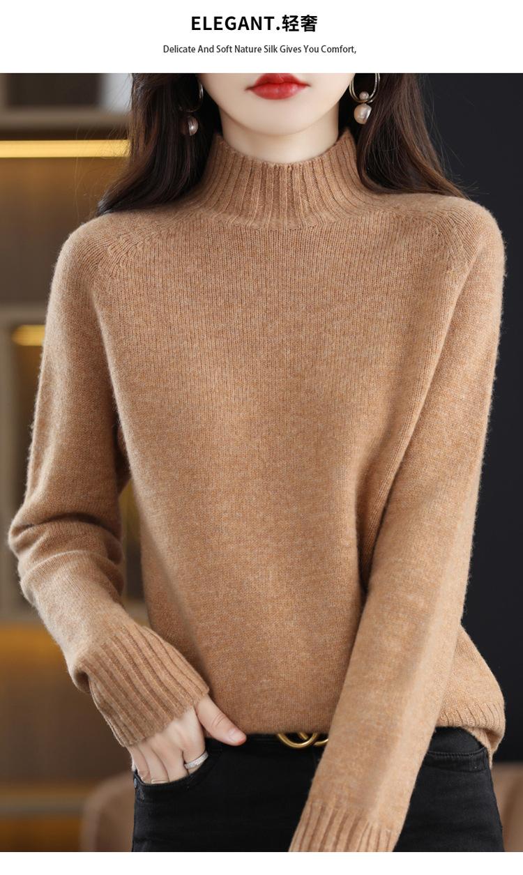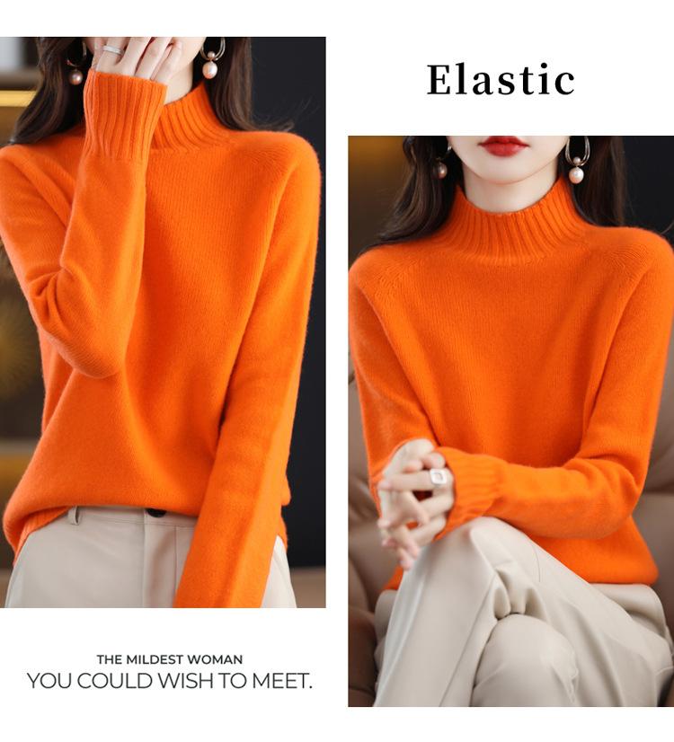 Suéter de Lana de Cuello Alto para Mujer 100% Lana Pura Camiseta Base Otoño e Invierno Espesado Interior Ajustado Corto Tejido