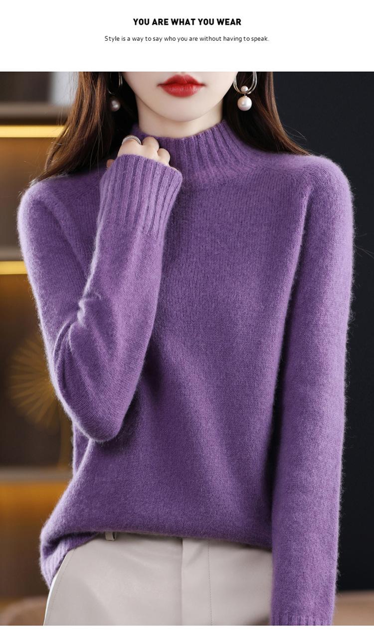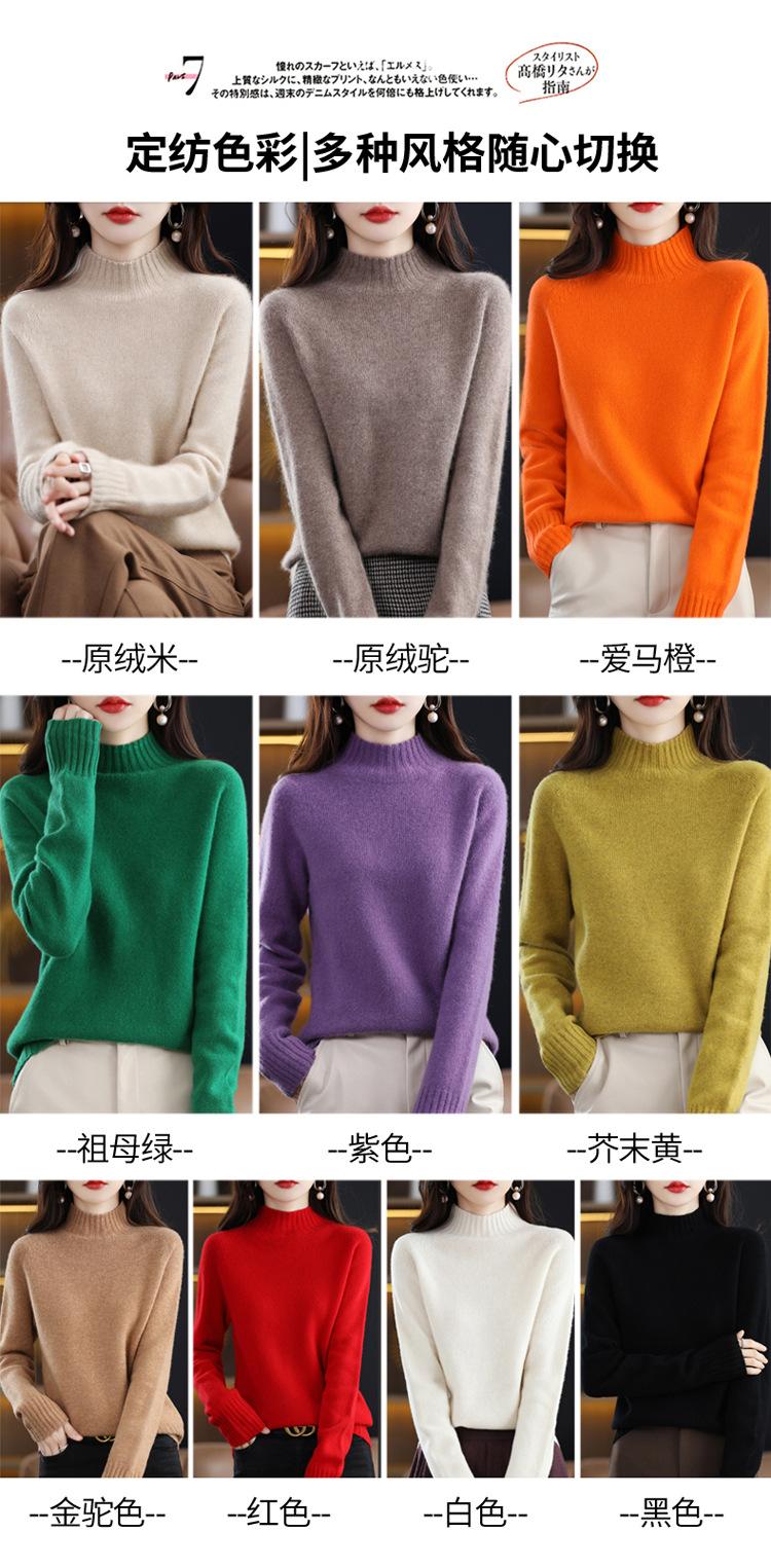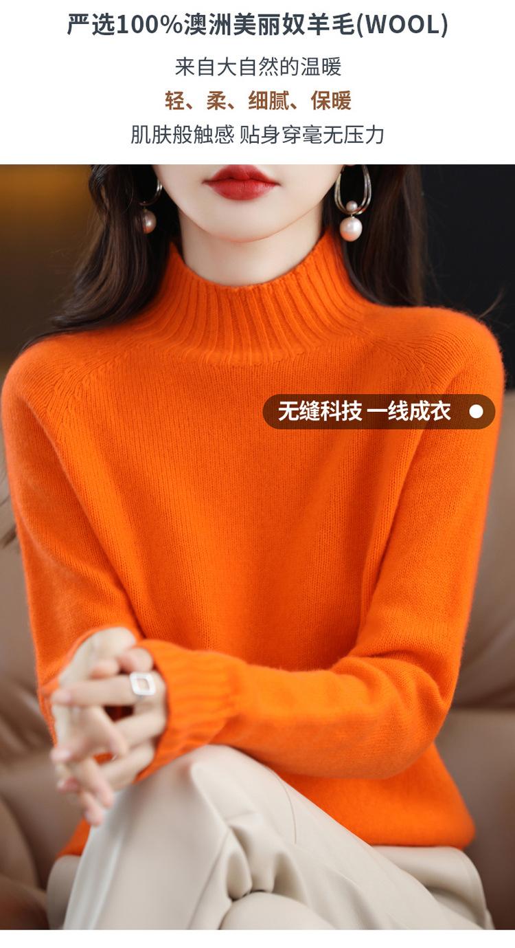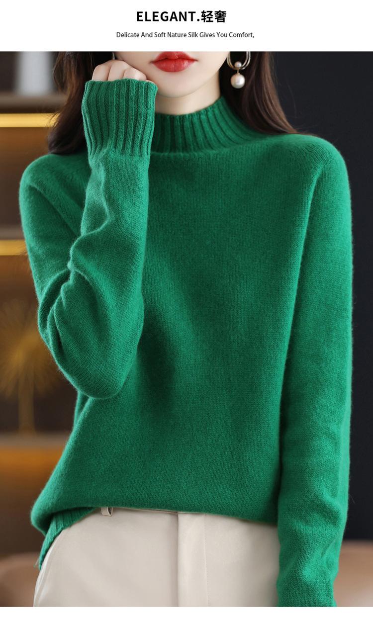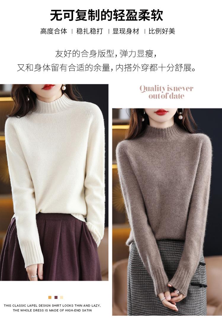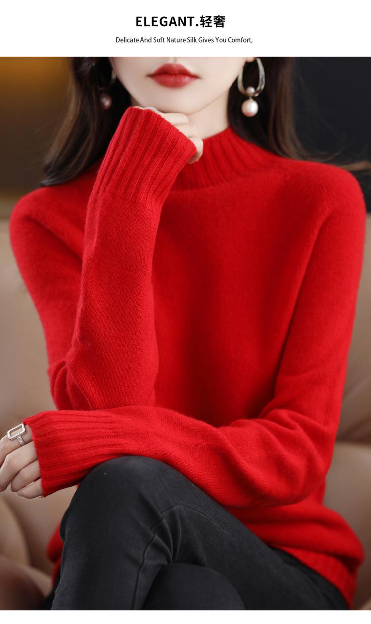 Suéter de Lana de Cuello Alto para Mujer 100% Lana Pura Camiseta Base Otoño e Invierno Espesado Interior Ajustado Corto Tejido