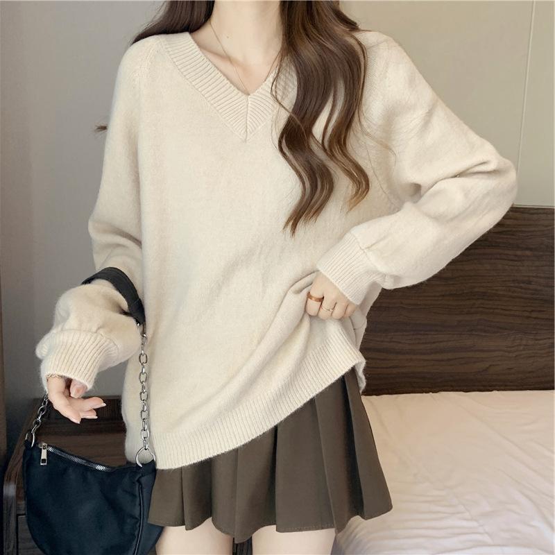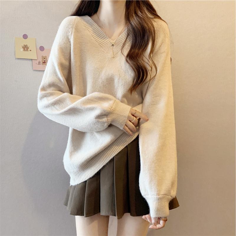 Suéter pulóver de terciopelo visón imitación leche suave y glutinoso para mujer, nuevo para otoño e invierno, tejido de punto holgado de aguja con sentido de alta gama perezoso
