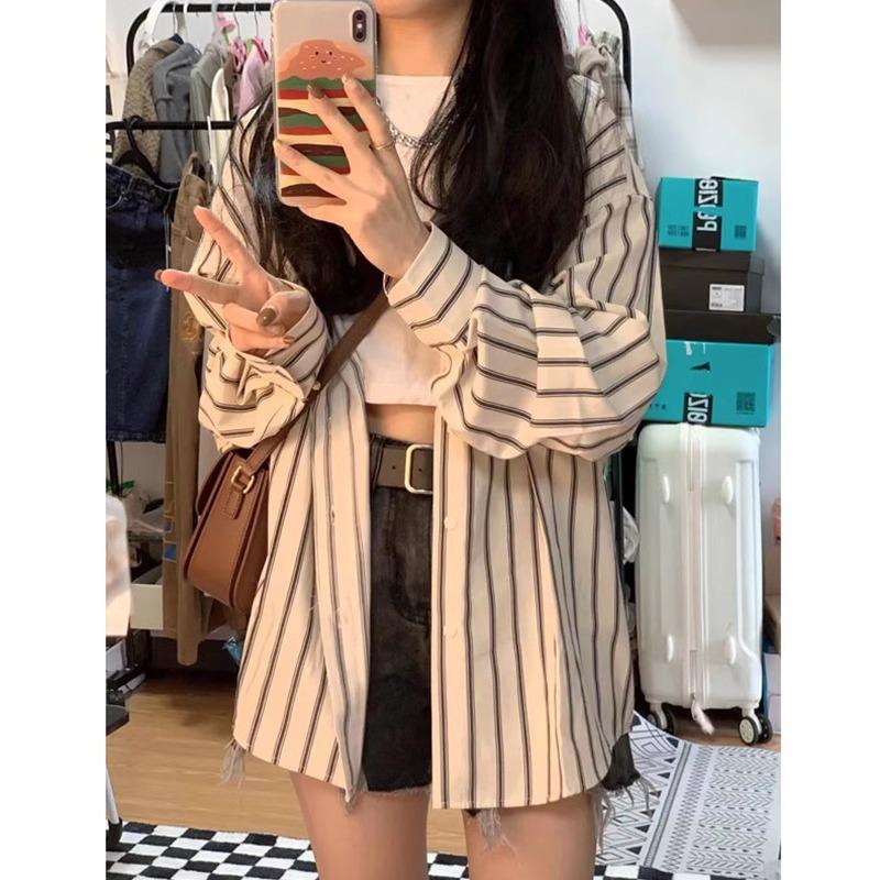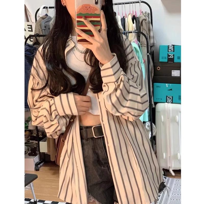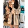 Camisa a rayas de verano para mujer, nuevo diseño, Sense Niche, fina, con protector solar, cárdigan, abrigo de manga larga, top