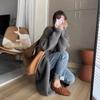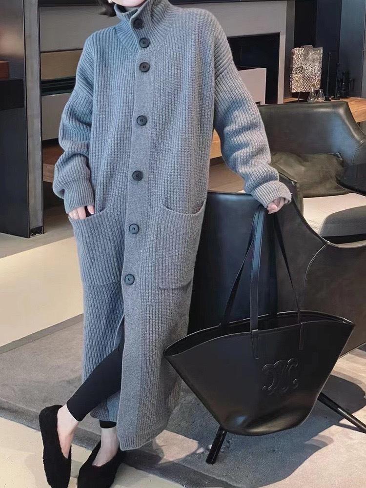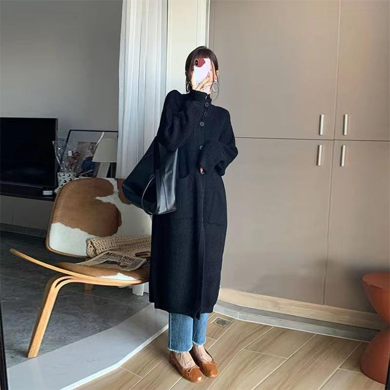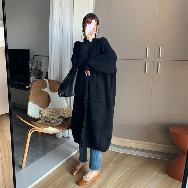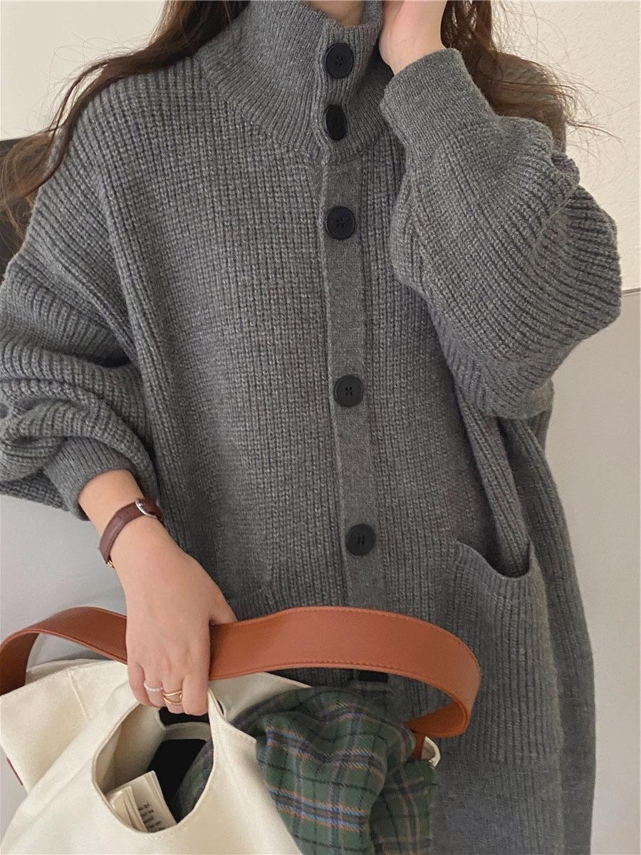 Cárdigan de Punto de Largo Medio Estilo Holgazán Estilo Coreano para Mujer 2025 Estilo Otoño e Invierno Chaqueta Suéter Versátil Gruesa Venta al por Mayor