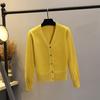 Suéter de mujer nuevo de primavera, cárdigan de manga larga con cuello en V, top exterior ajustado blanco, abrigo estilo Chanel