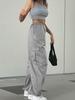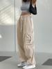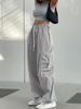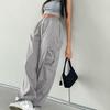 Americano Pu Shuai casual holgado gris peto de pierna ancha para mujer 2024 primavera y verano deportivo secado rápido cintura alta pantalones casuales