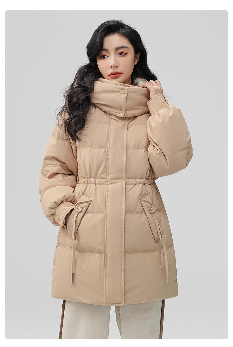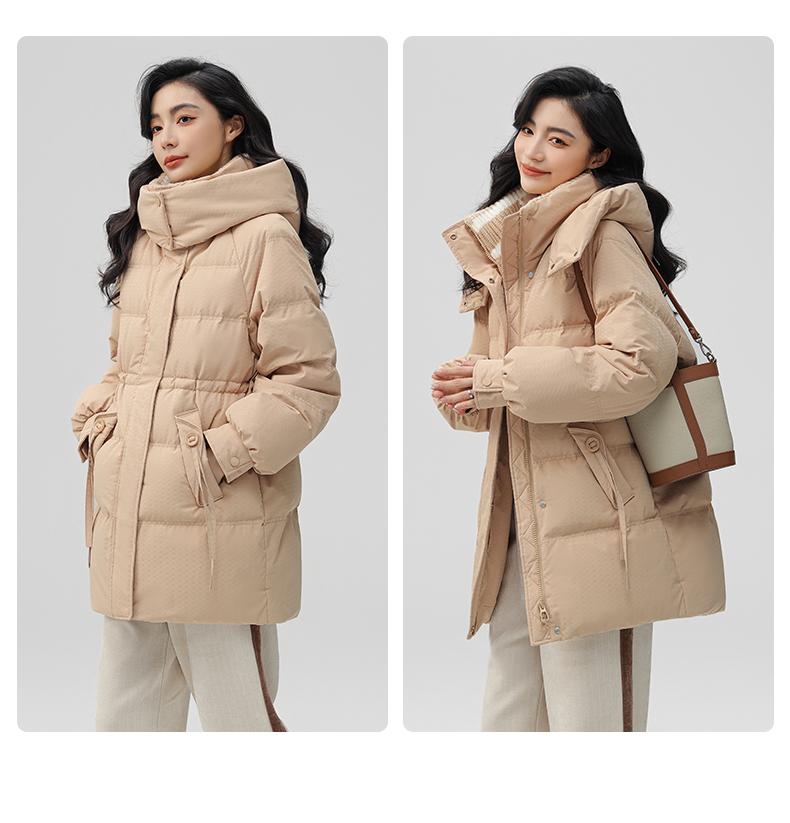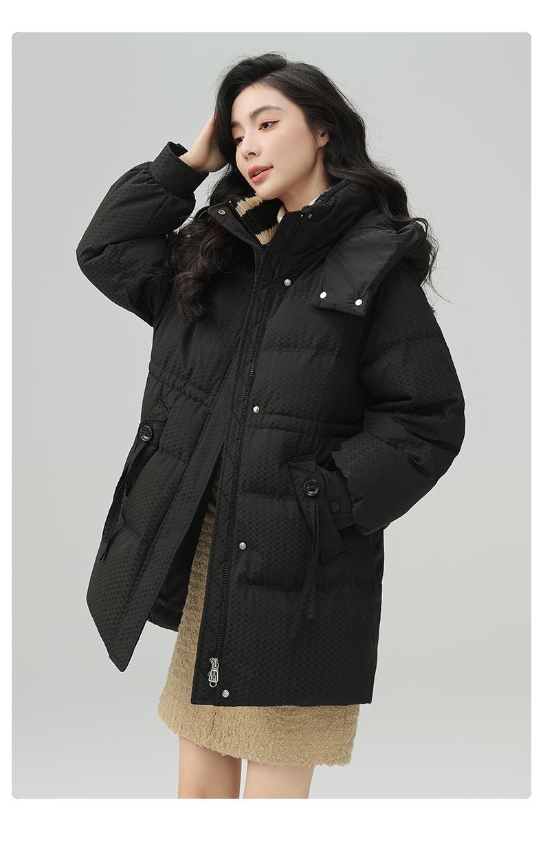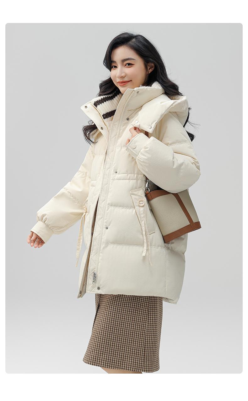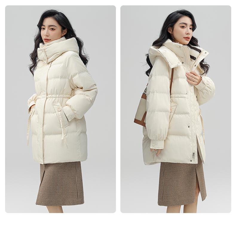 Chaqueta de plumón de pato para mujer de longitud media 2024 nueva moda de invierno con capucha más fácil de combinar chaqueta cálida W