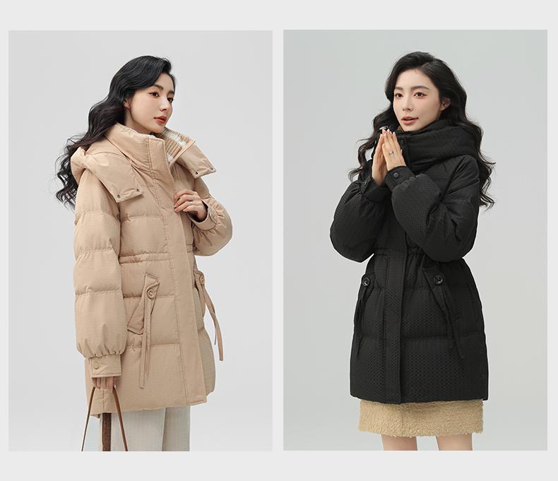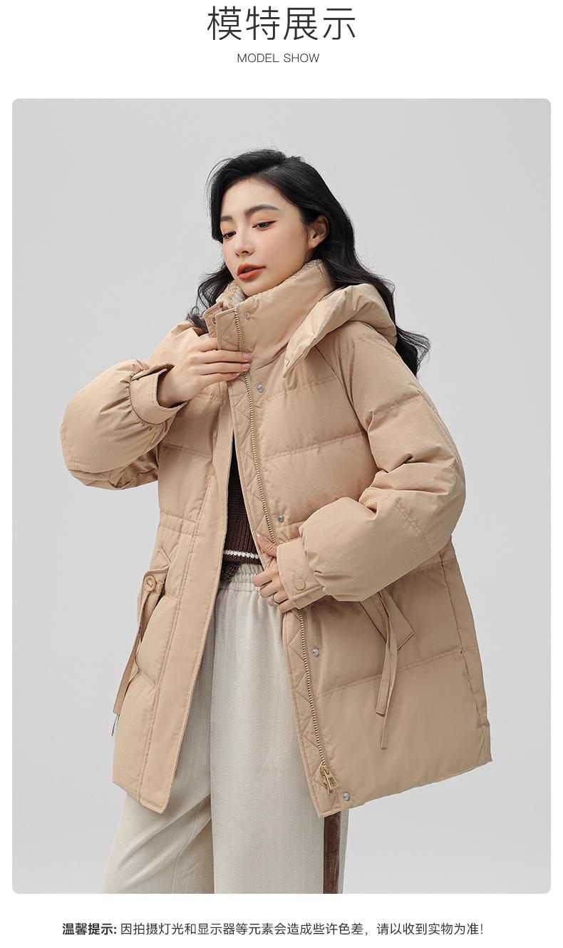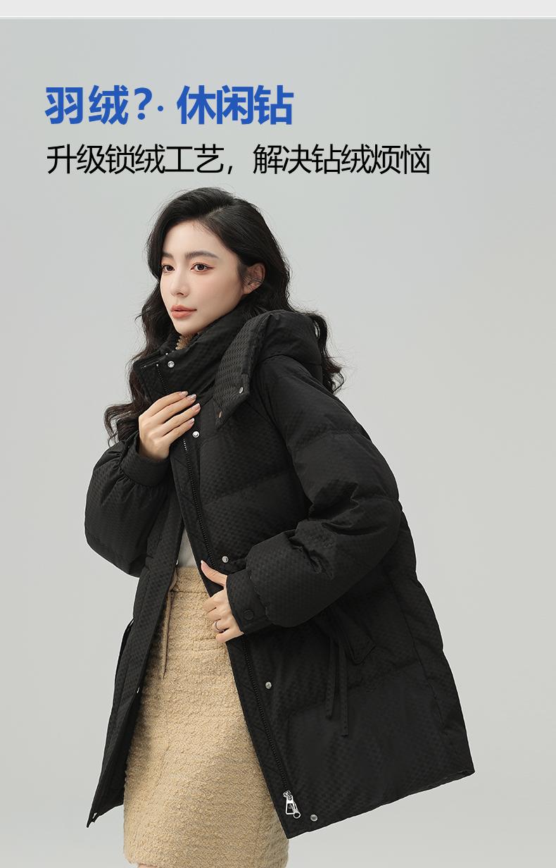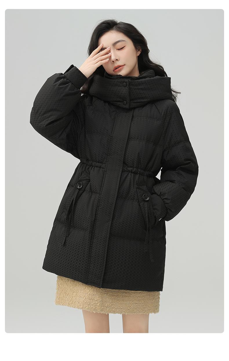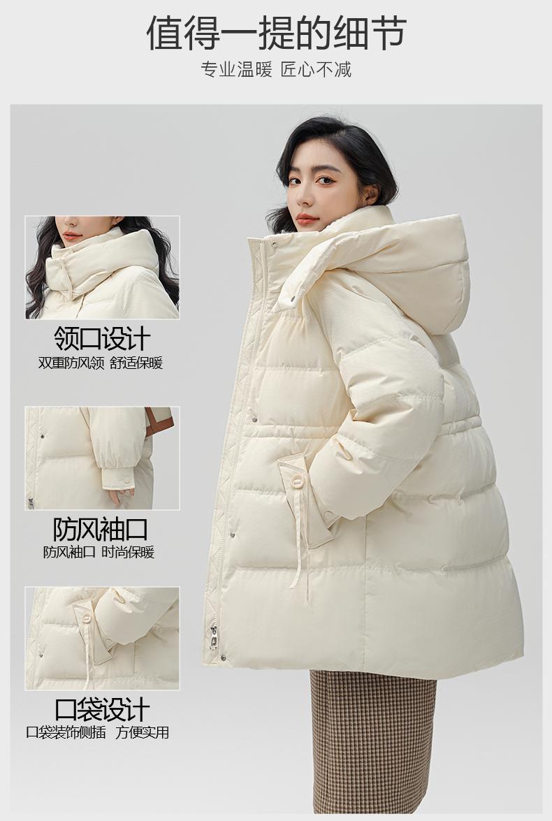 Chaqueta de plumón de pato para mujer de longitud media 2024 nueva moda de invierno con capucha más fácil de combinar chaqueta cálida W