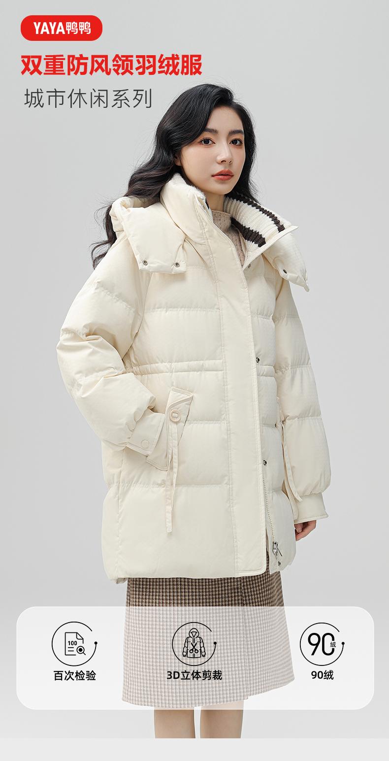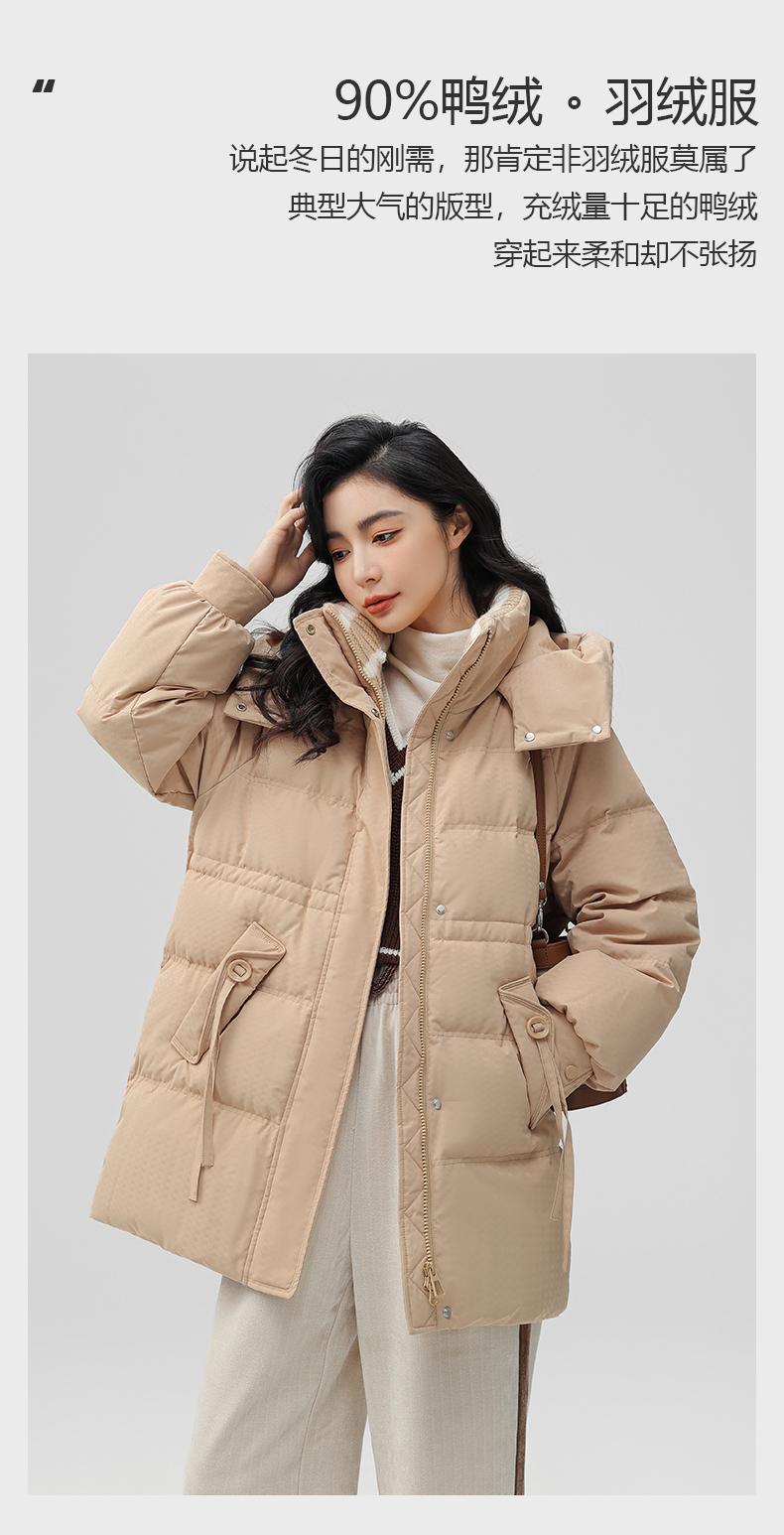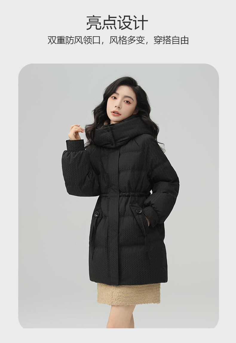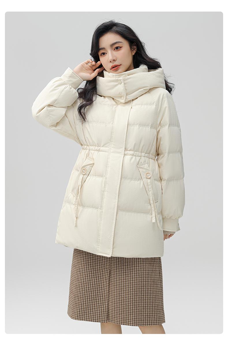 Chaqueta de plumón de pato para mujer de longitud media 2024 nueva moda de invierno con capucha más fácil de combinar chaqueta cálida W
