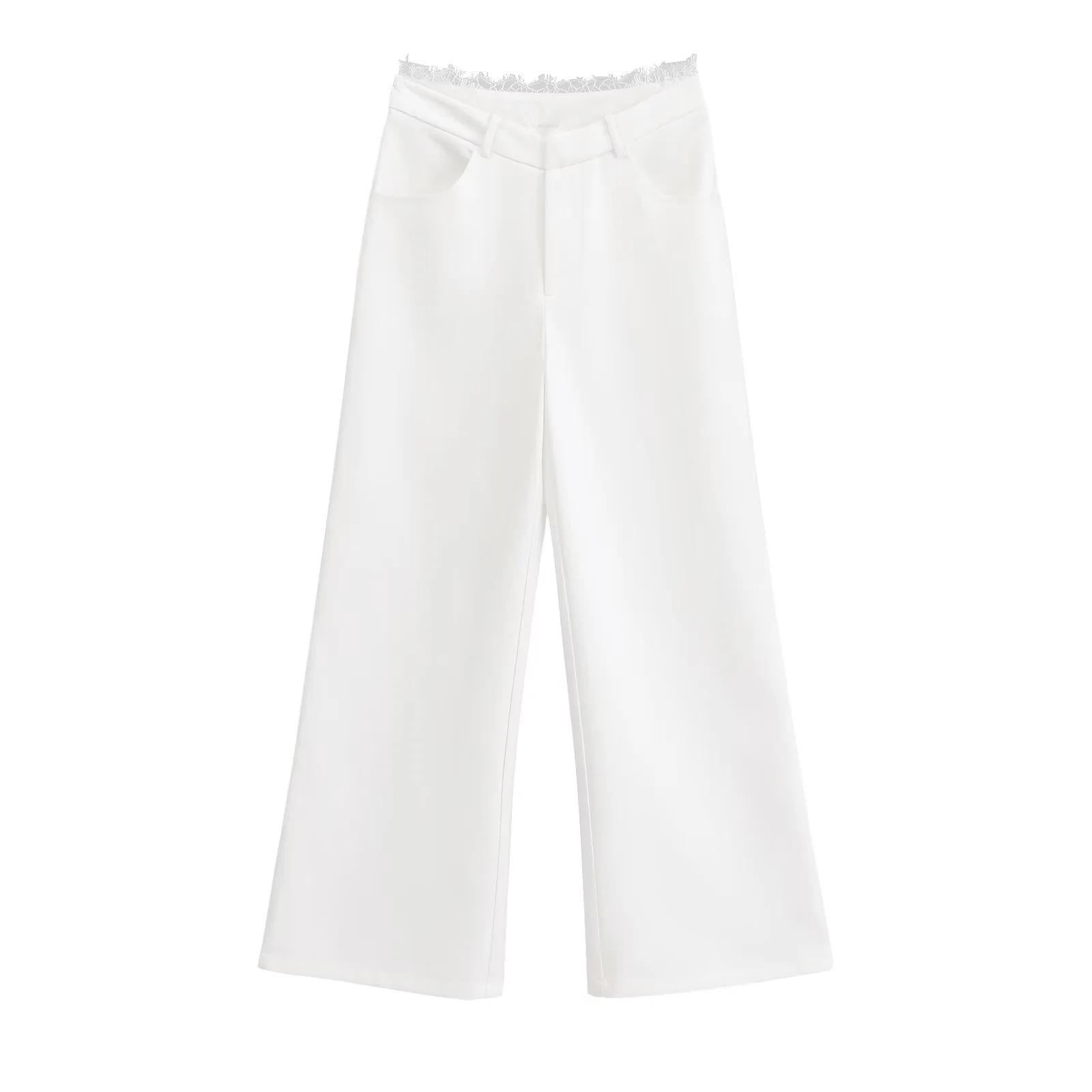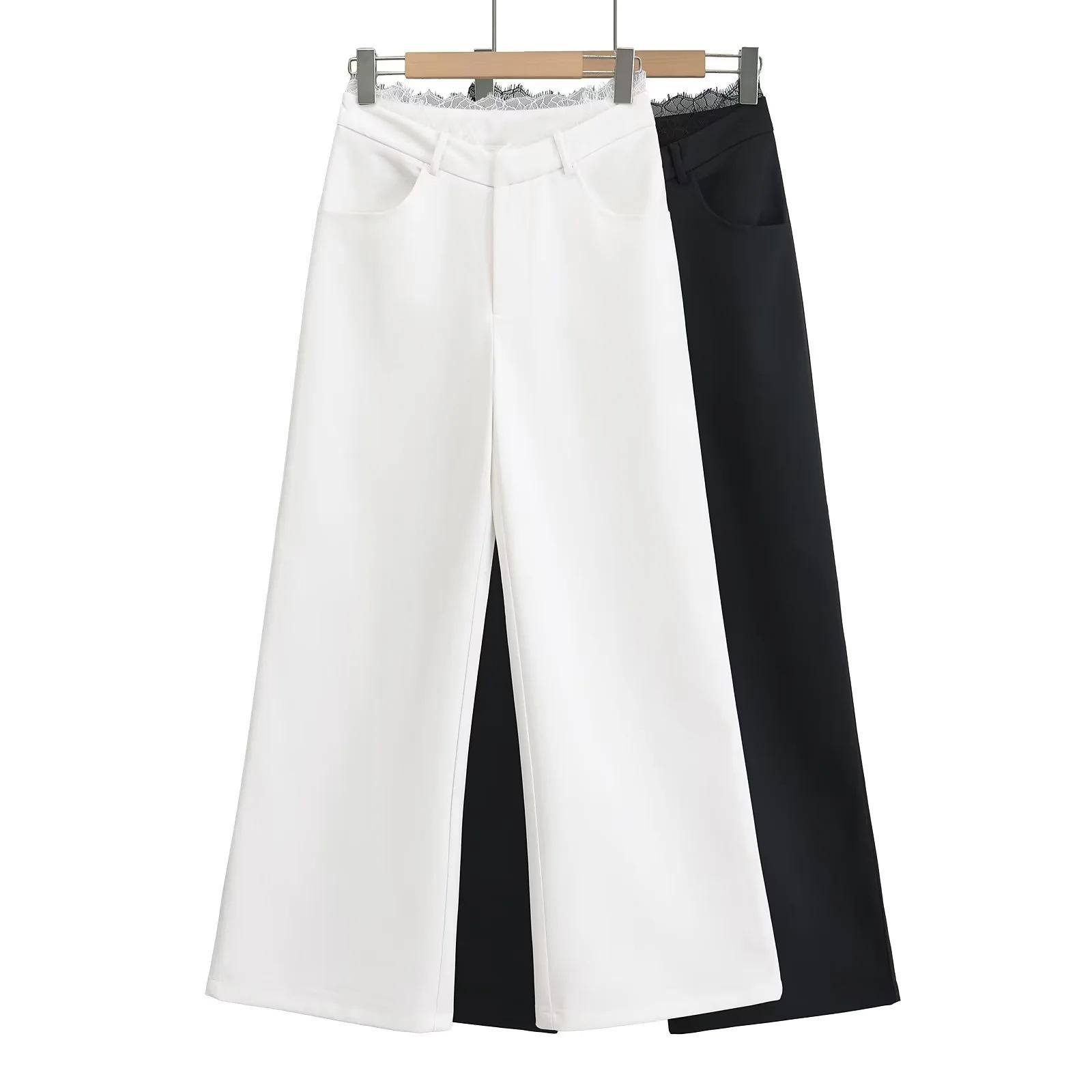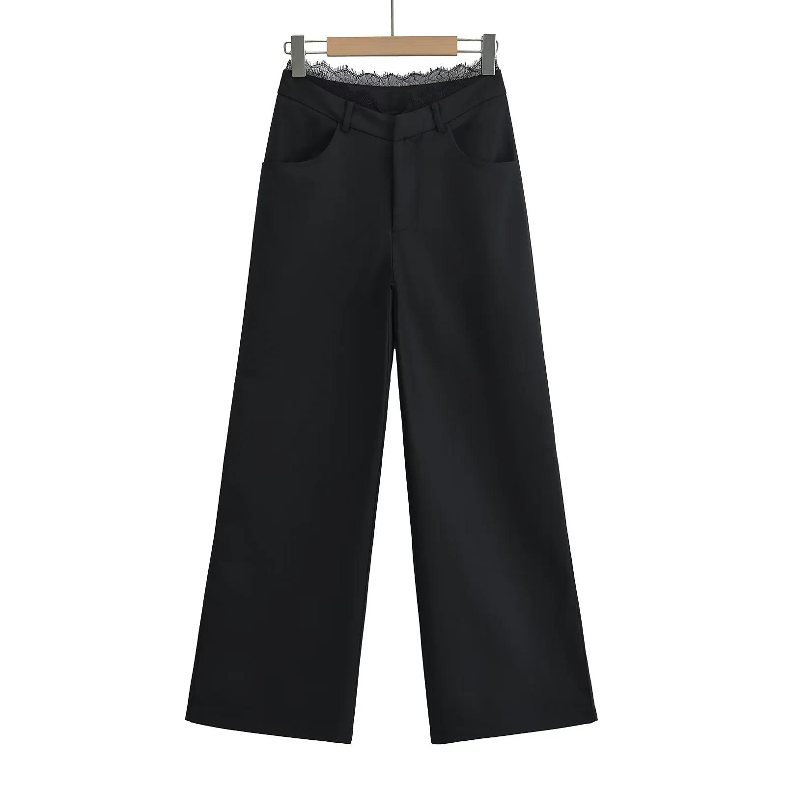 Pantalones de vestir informales holgados y combinables para mujer, de cintura alta, con encaje frío, estilo perezoso, de verano 2024
