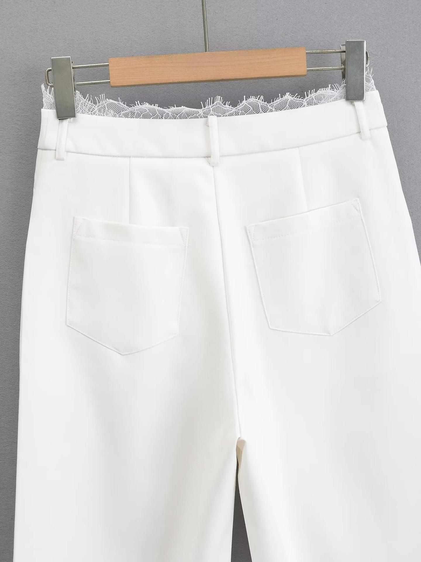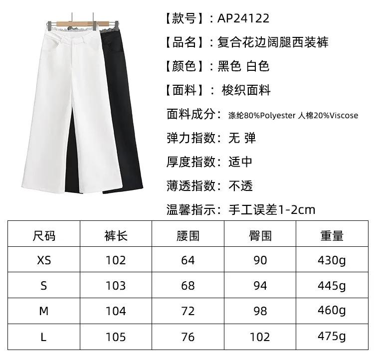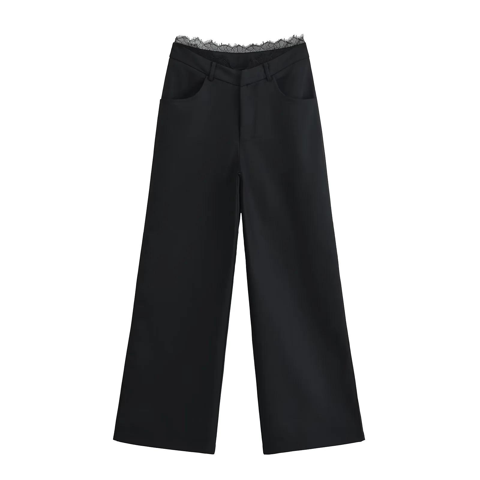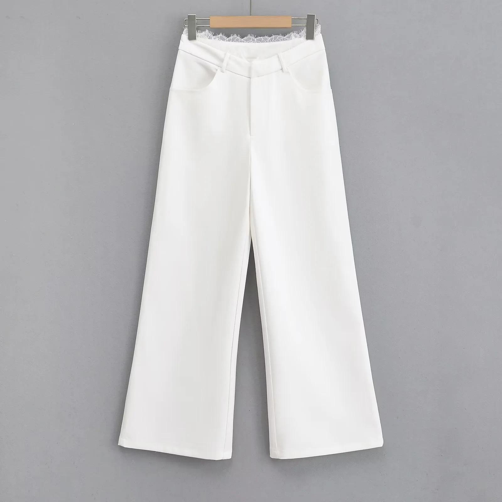 Pantalones de vestir informales holgados y combinables para mujer, de cintura alta, con encaje frío, estilo perezoso, de verano 2024