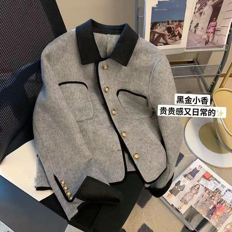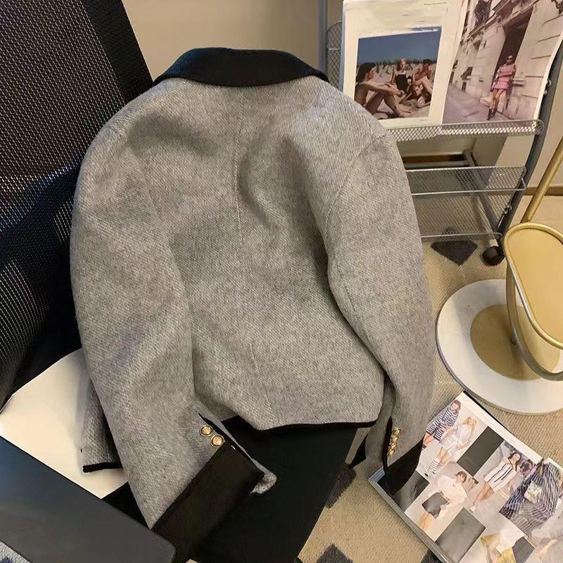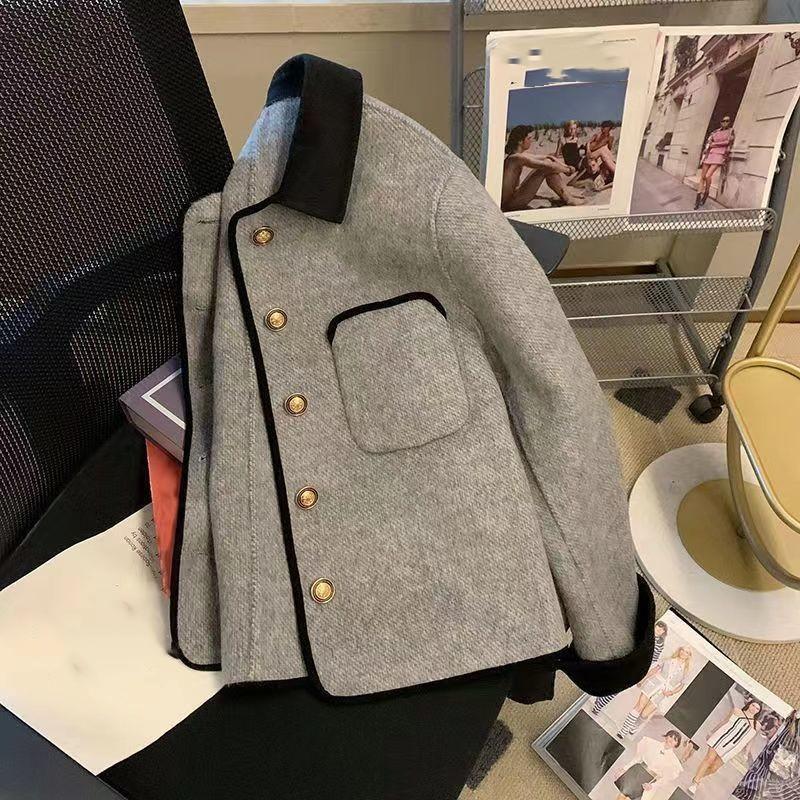 Abrigo grueso de lana gris de alta calidad estilo Chanel para mujer 2022 otoño e invierno Nueva chaqueta elegante de moda para combinar con todo
