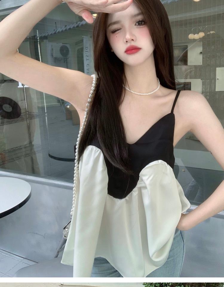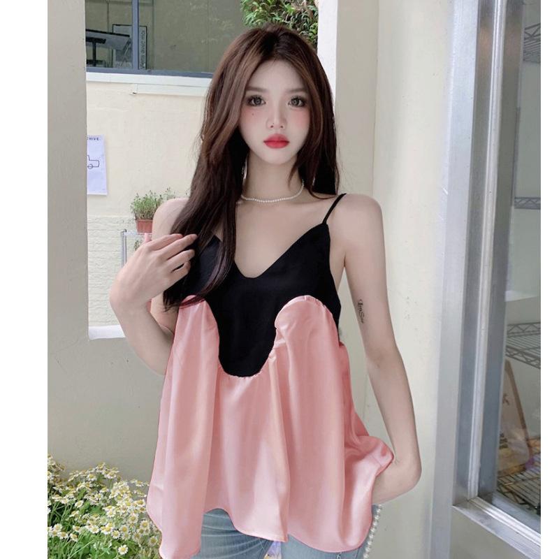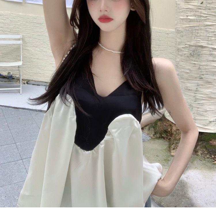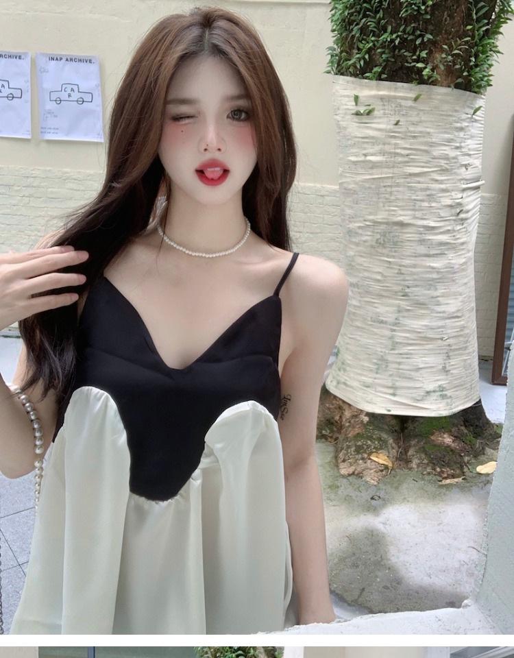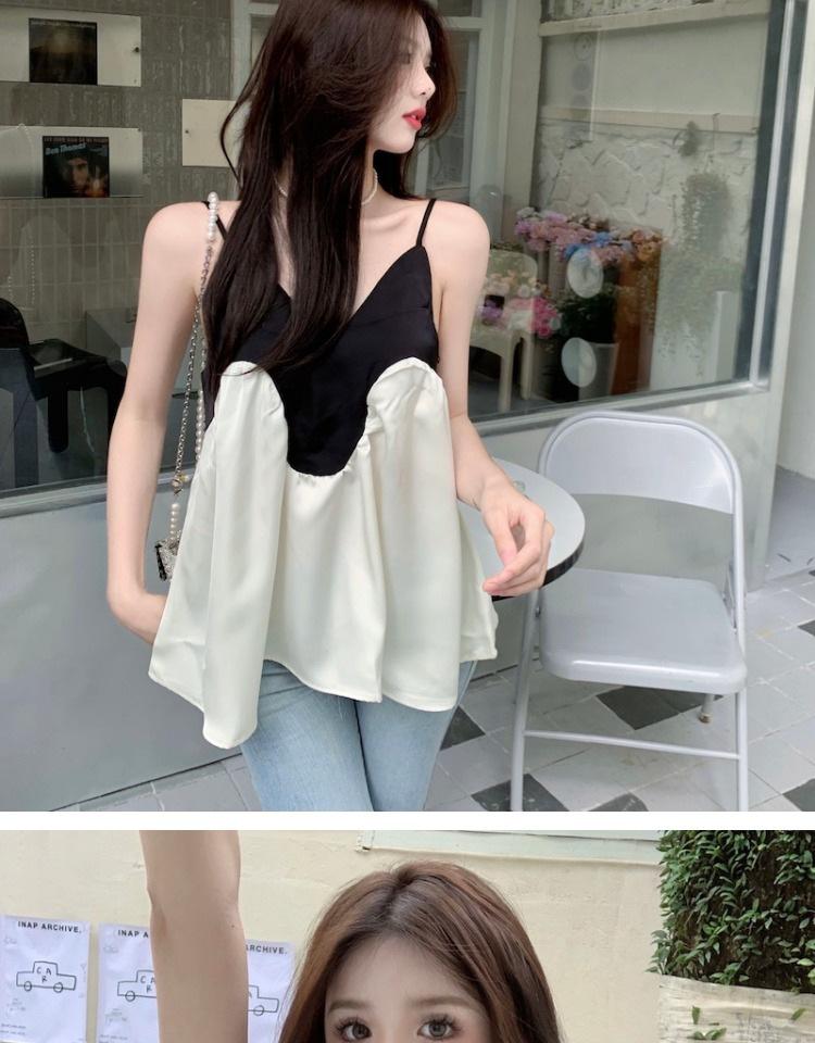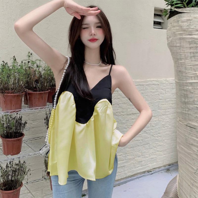 Camisola con costuras en contraste de color puro, tirantes ajustables para el hombro, sexy, para chica sexy, diseño de verano