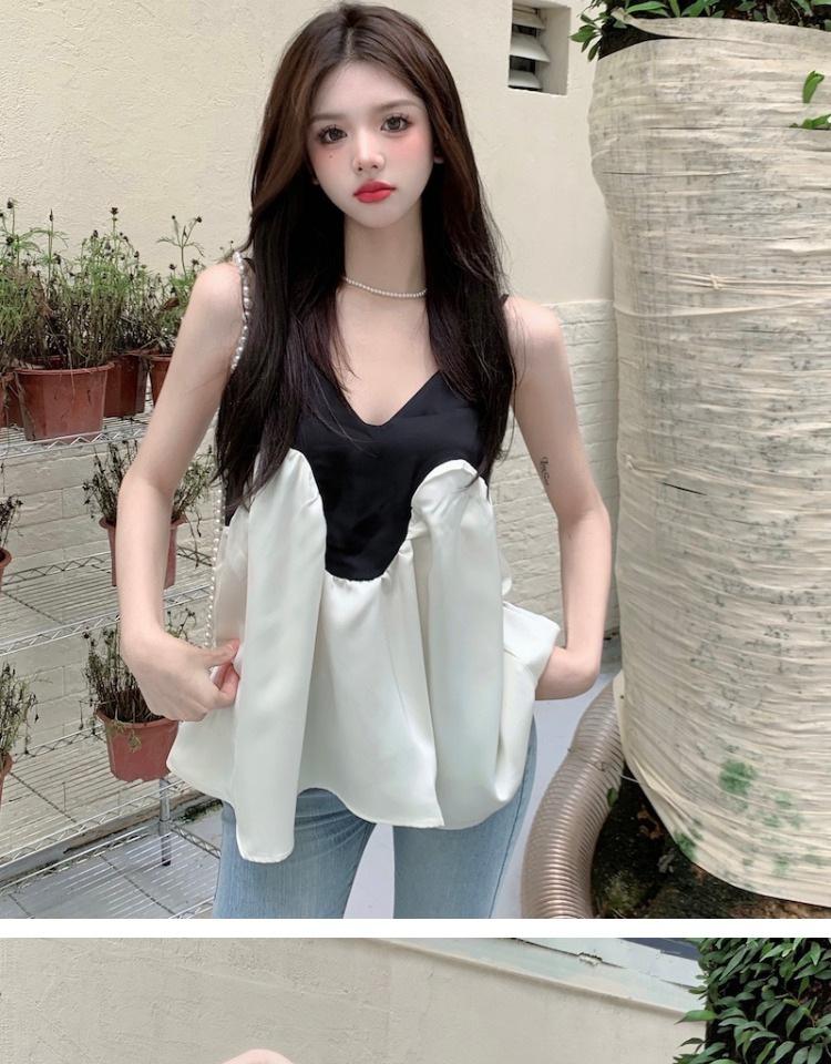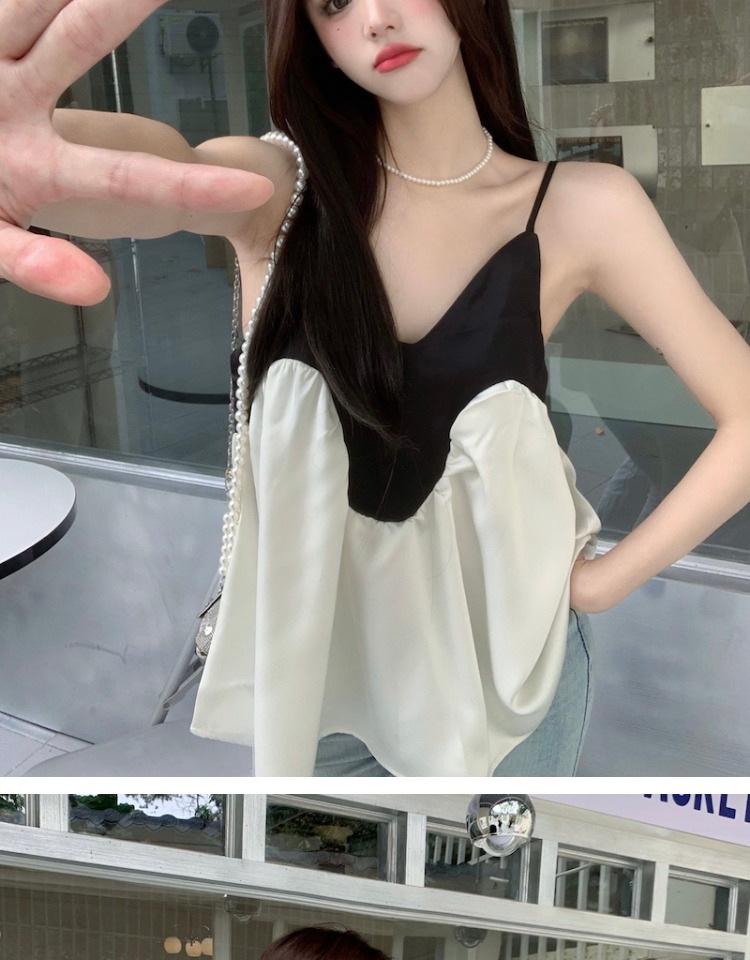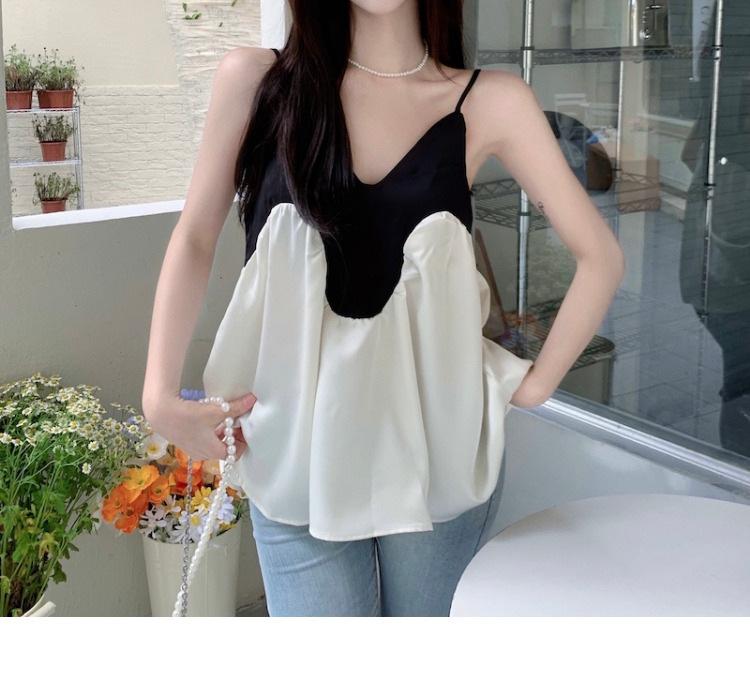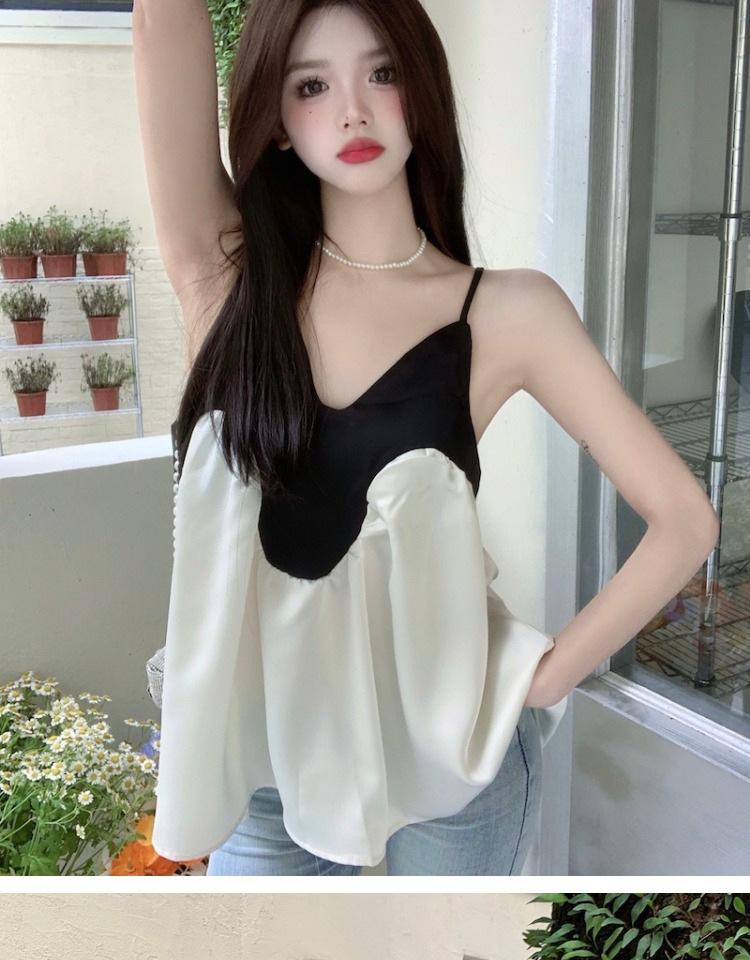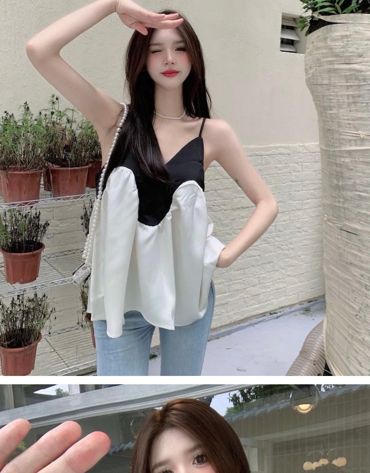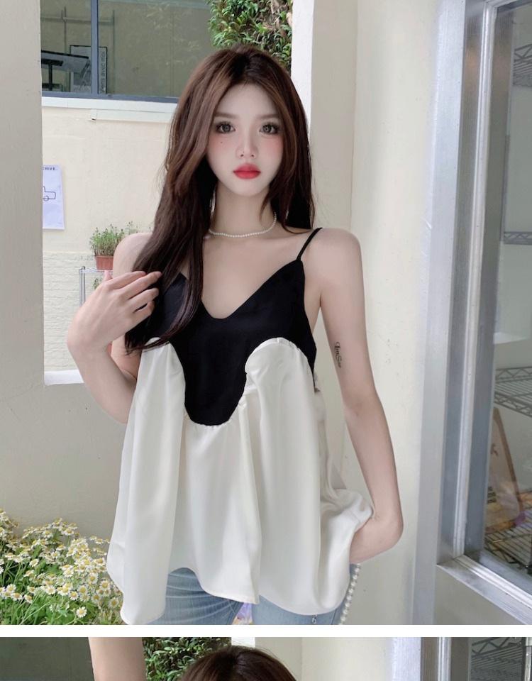 Camisola con costuras en contraste de color puro, tirantes ajustables para el hombro, sexy, para chica sexy, diseño de verano