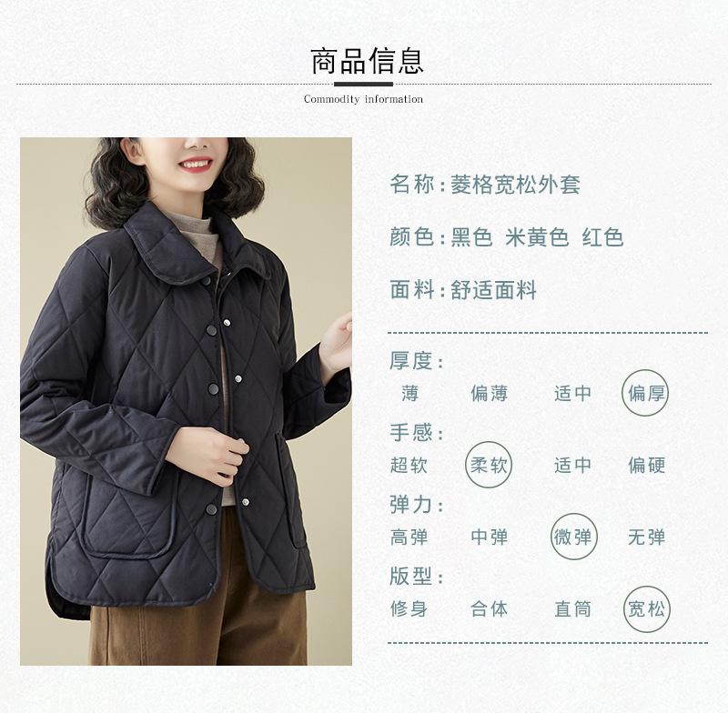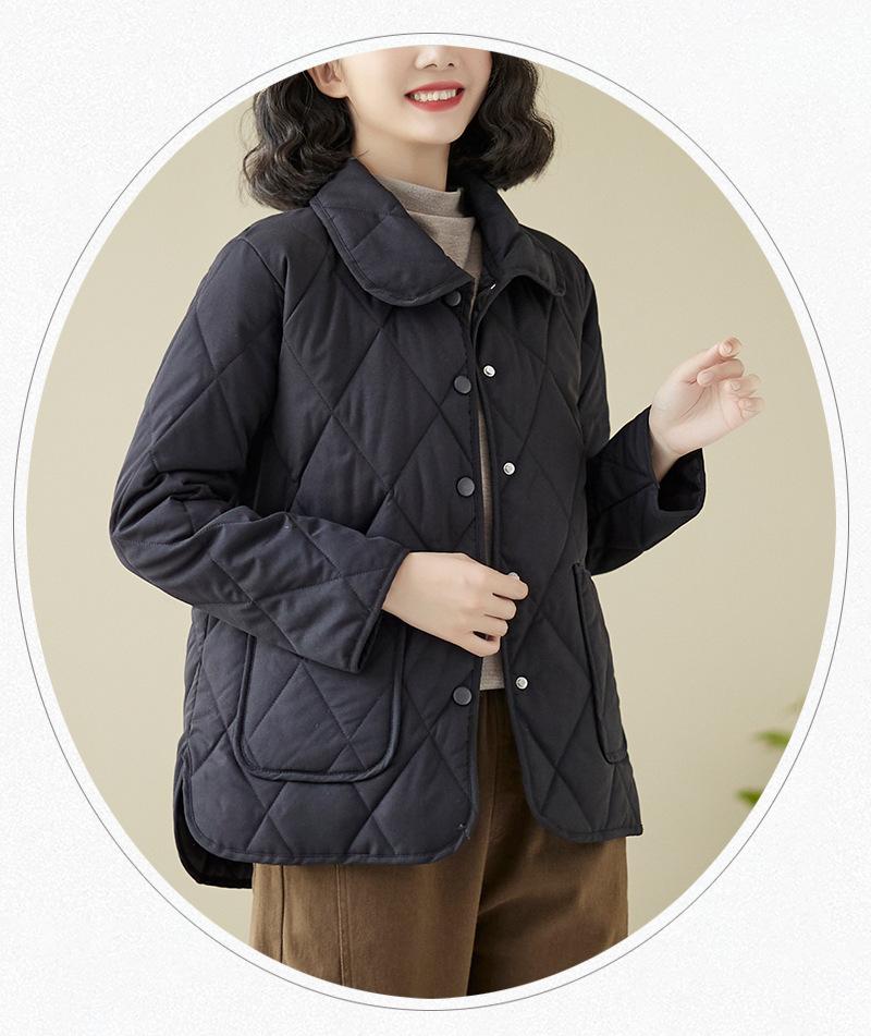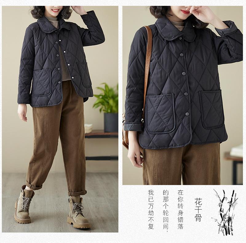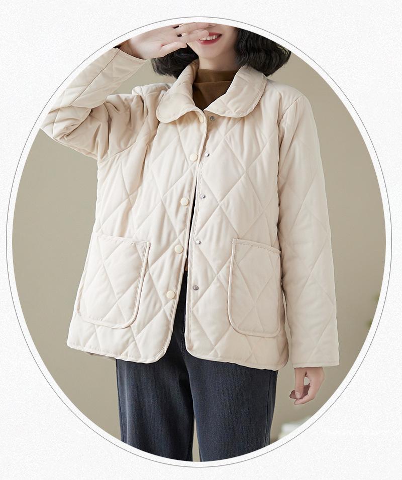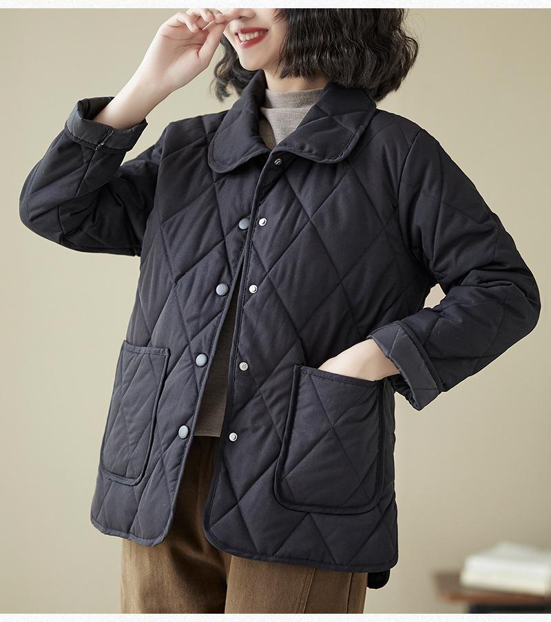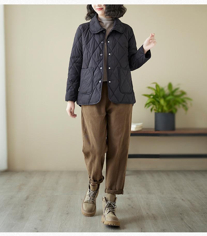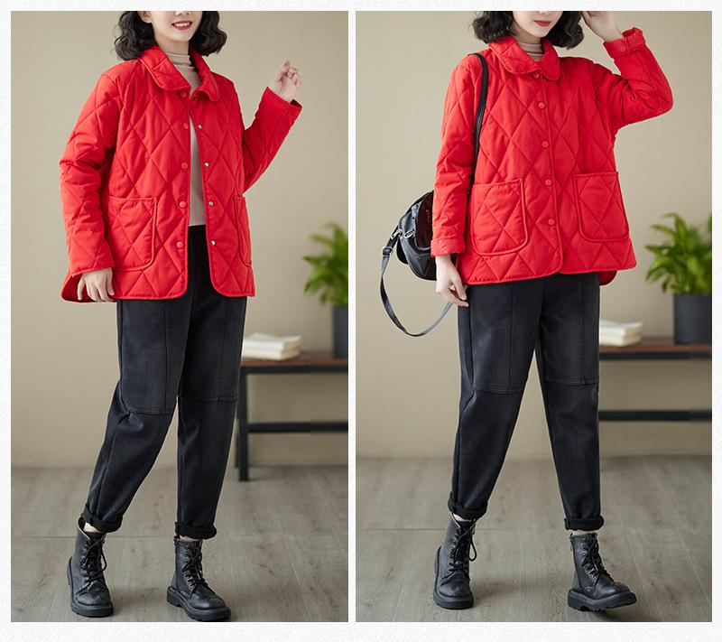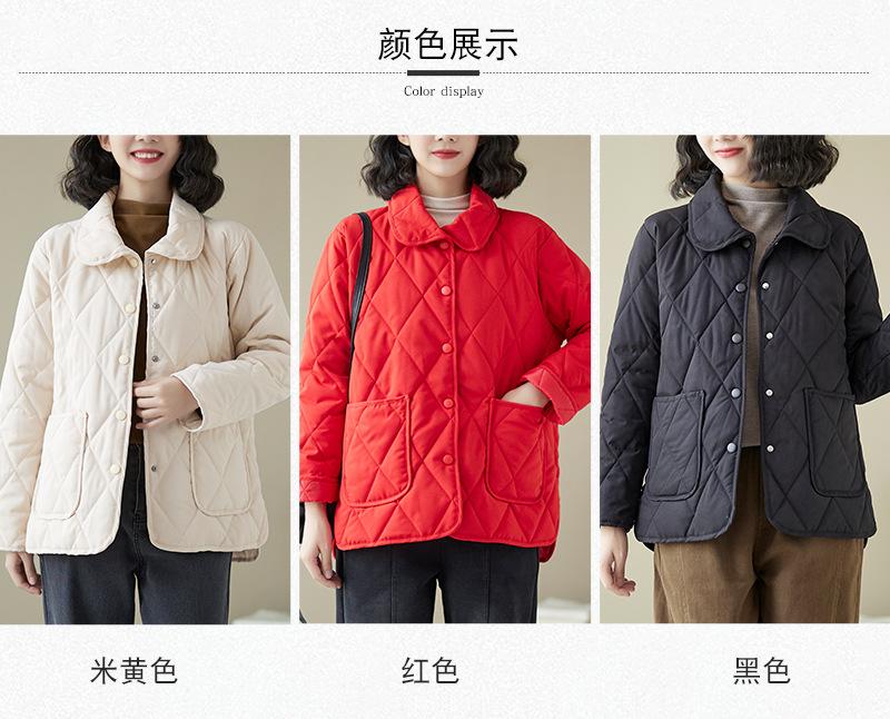 Abrigo acolchado de algodón con rombos cortos y pequeños de tiro real para mujer, nuevo abrigo acolchado de algodón fino estilo occidental de otoño e invierno 2023