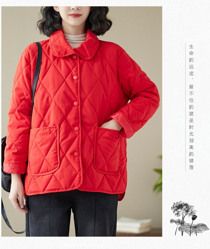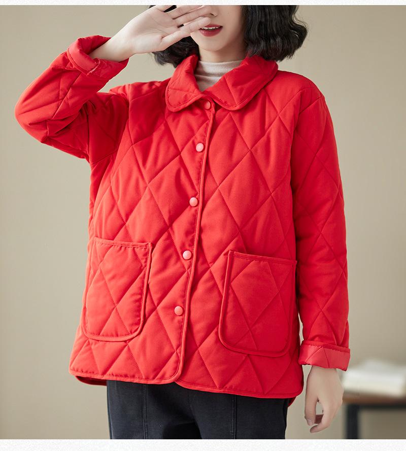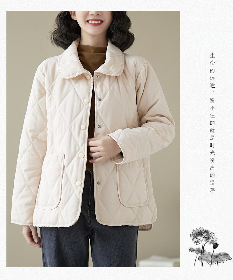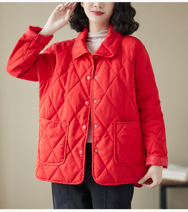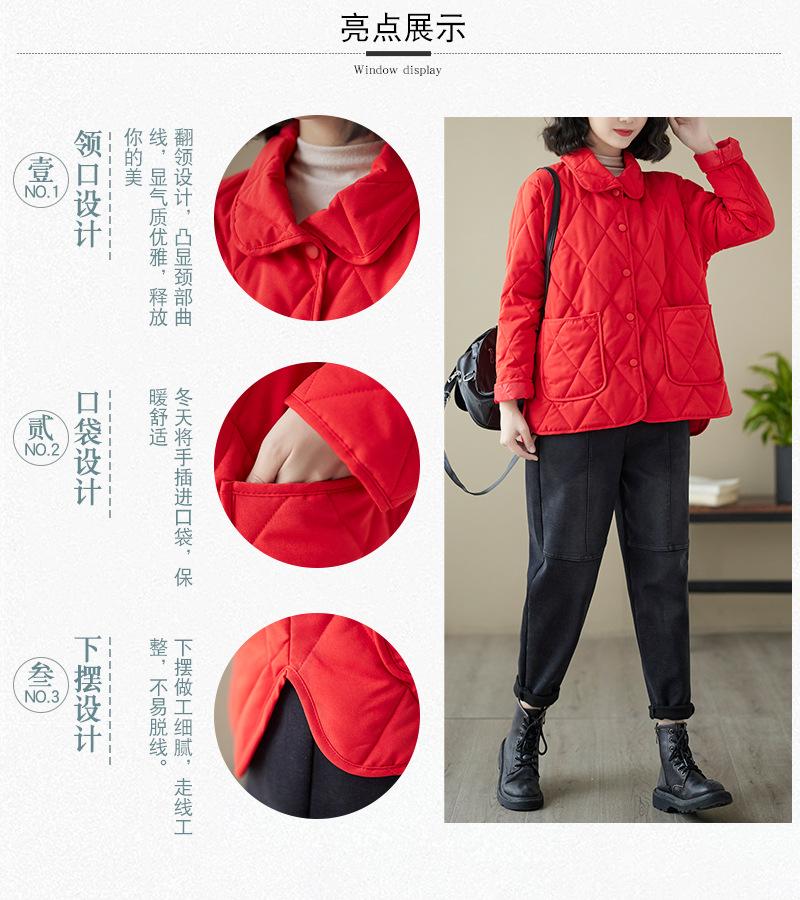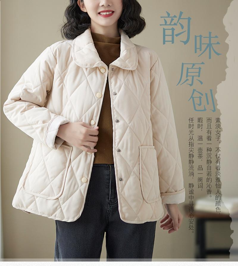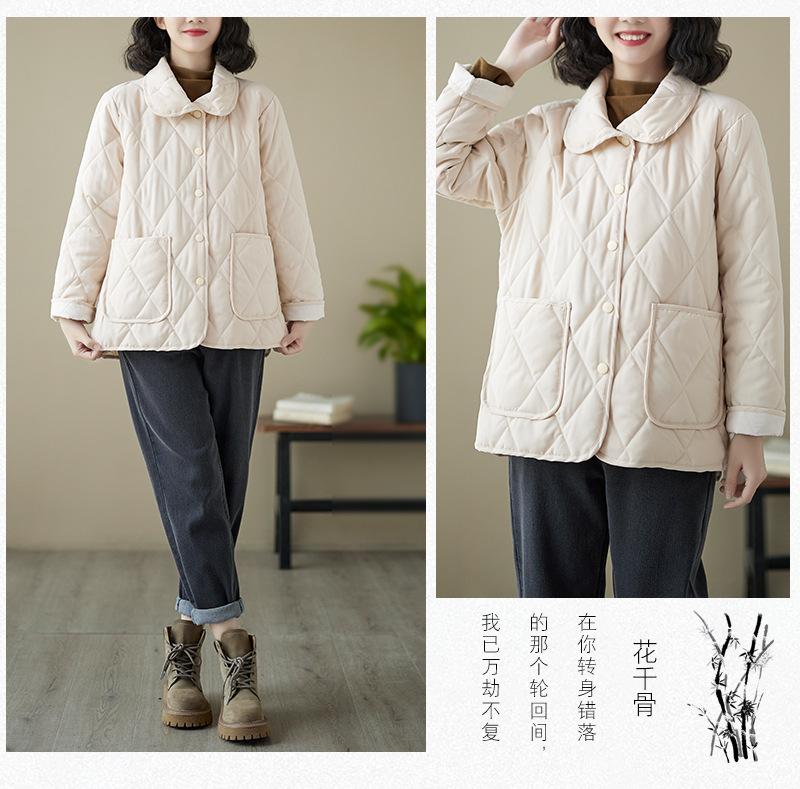 Abrigo acolchado de algodón con rombos cortos y pequeños de tiro real para mujer, nuevo abrigo acolchado de algodón fino estilo occidental de otoño e invierno 2023