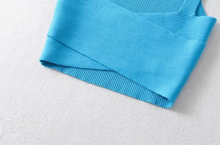 Camisola de Punto Slim de Moda y Estilo Europeo y Americano con Cuello U Cruzado