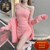 Falda de Punto con Abertura en el Dobladillo para Primavera y Verano, Vestido Halter de Tirantes Femenino, Dulce y Atrevido