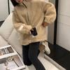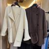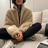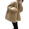 Abrigo de lana de cordero de moda para mujer, estilo coreano de invierno, holgado, color caqui, grueso, elegante, con cuello antiedad, informal.