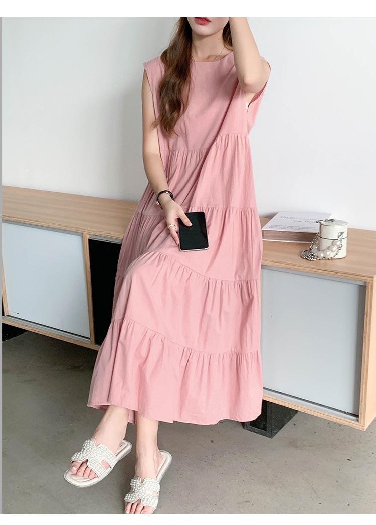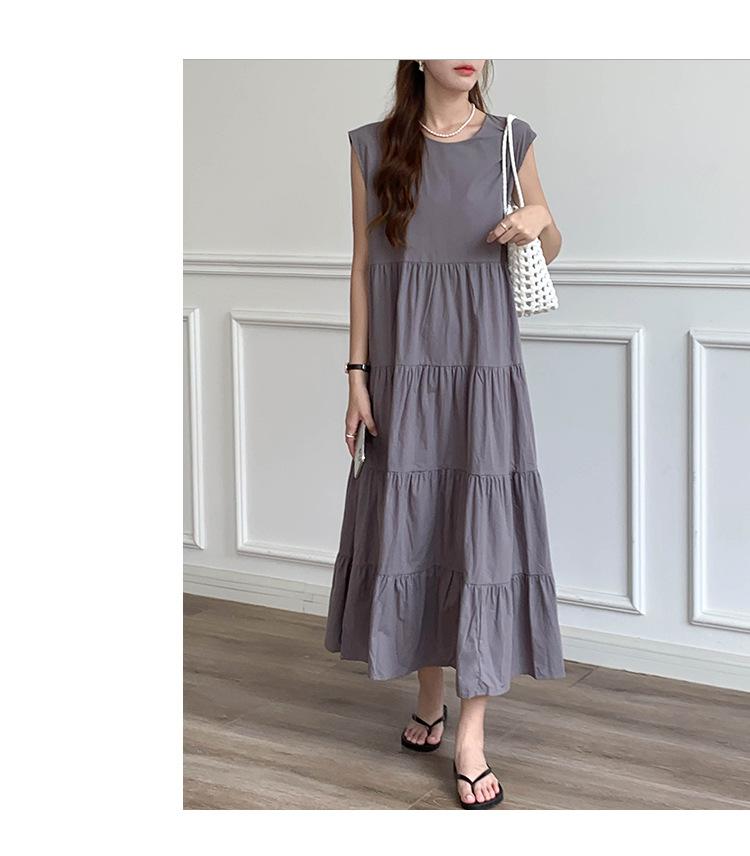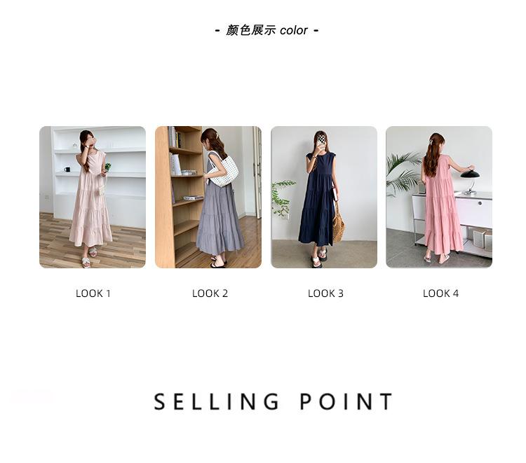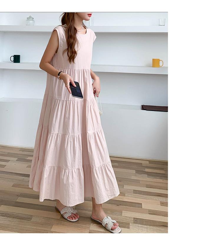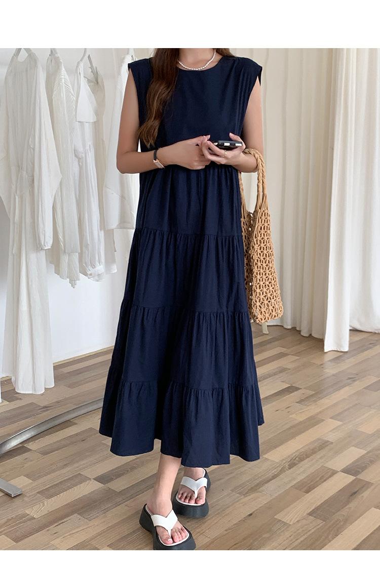 Nuevo Jersey de Chifón con Parches de Primavera y Otoño 2024, Color Sólido, Falda Larga sin Mangas Tipo A para Ir al Trabajo, Vestido de Cuello Redondo