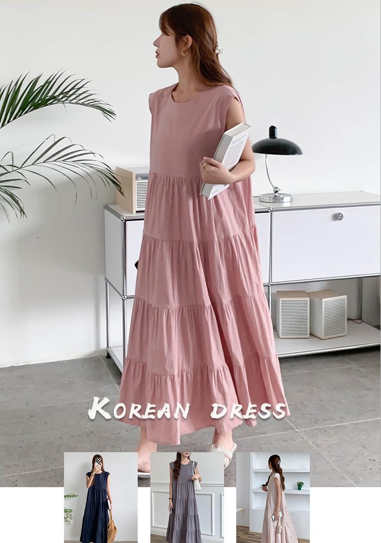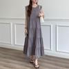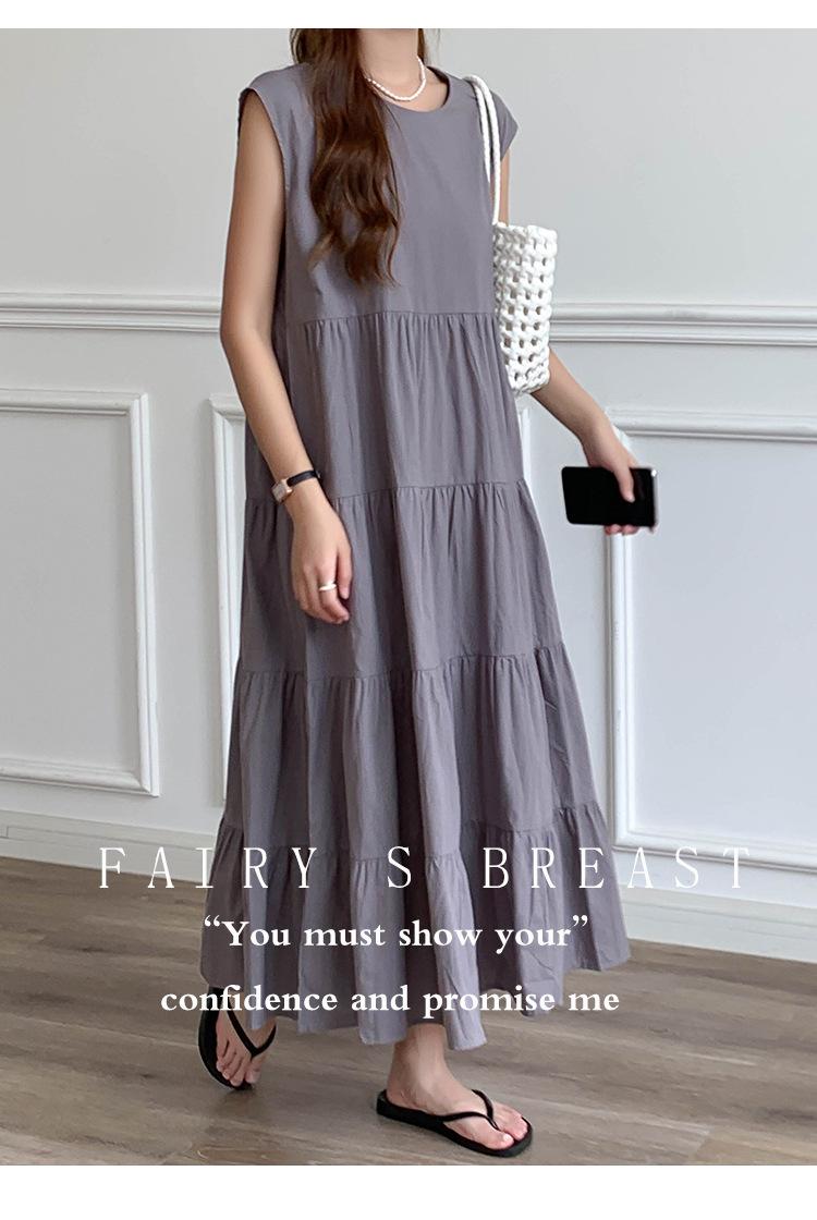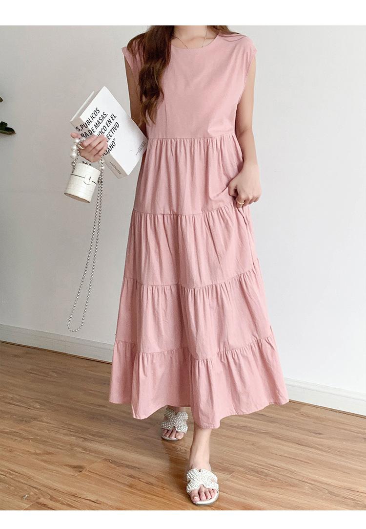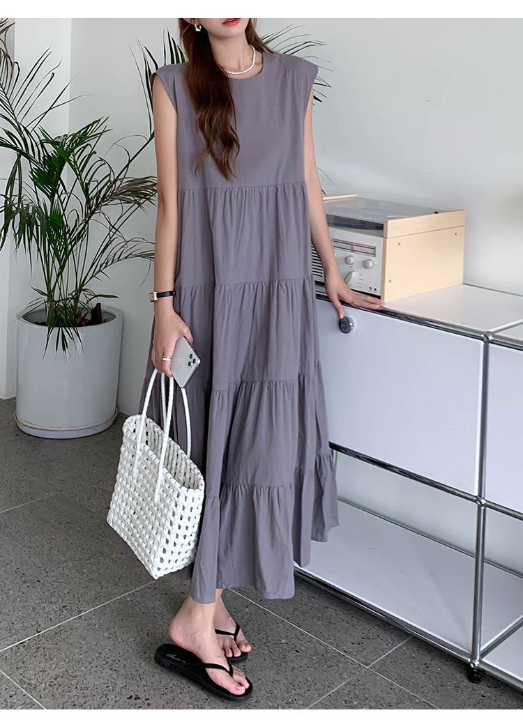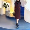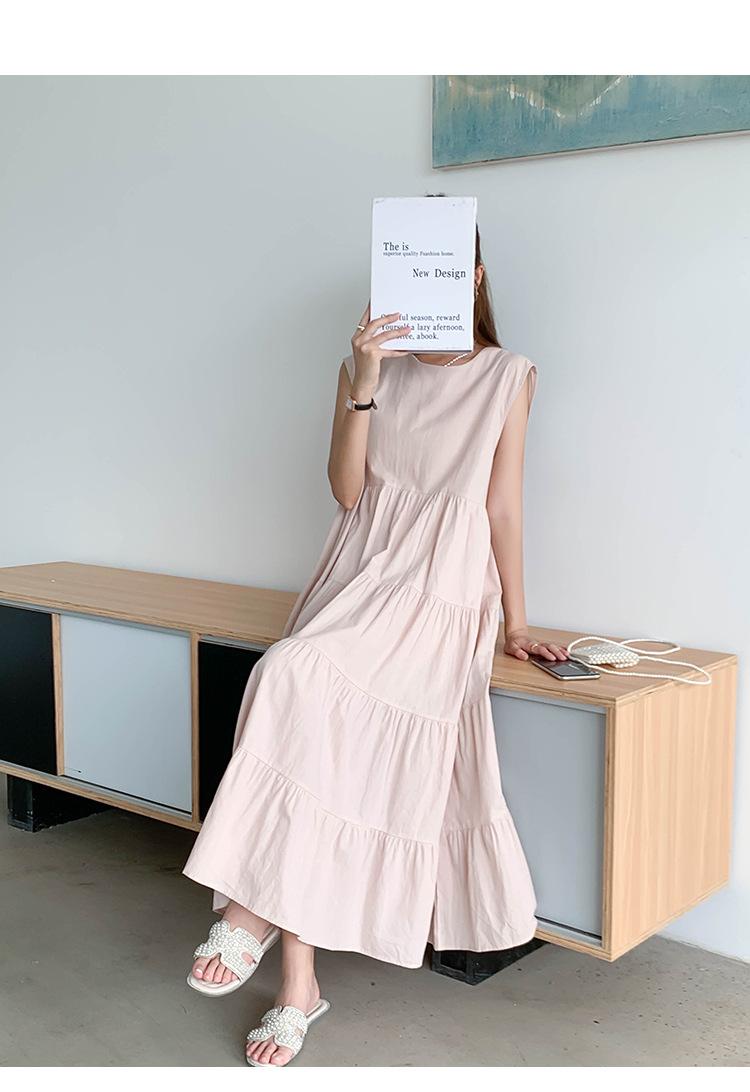 Nuevo Jersey de Chifón con Parches de Primavera y Otoño 2024, Color Sólido, Falda Larga sin Mangas Tipo A para Ir al Trabajo, Vestido de Cuello Redondo