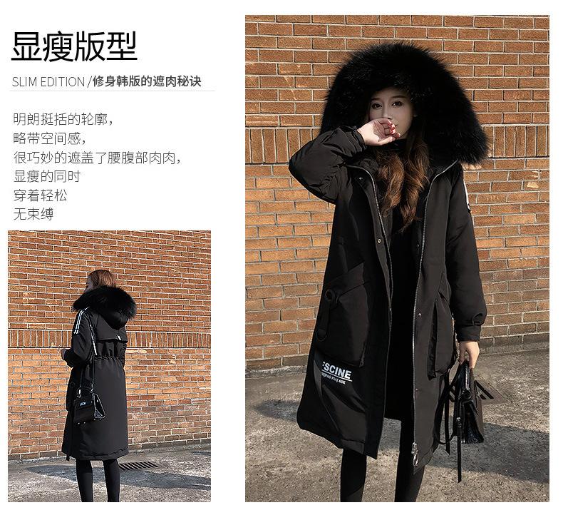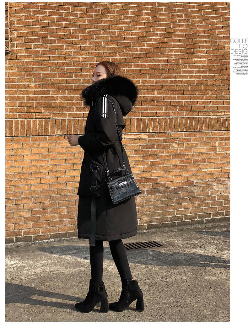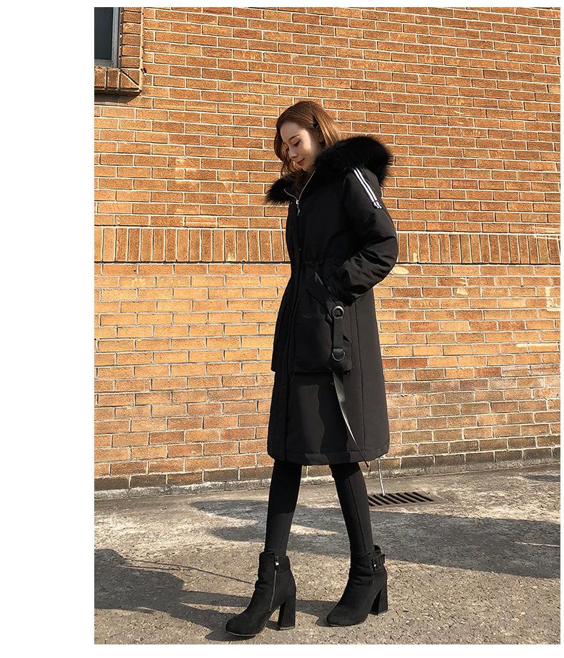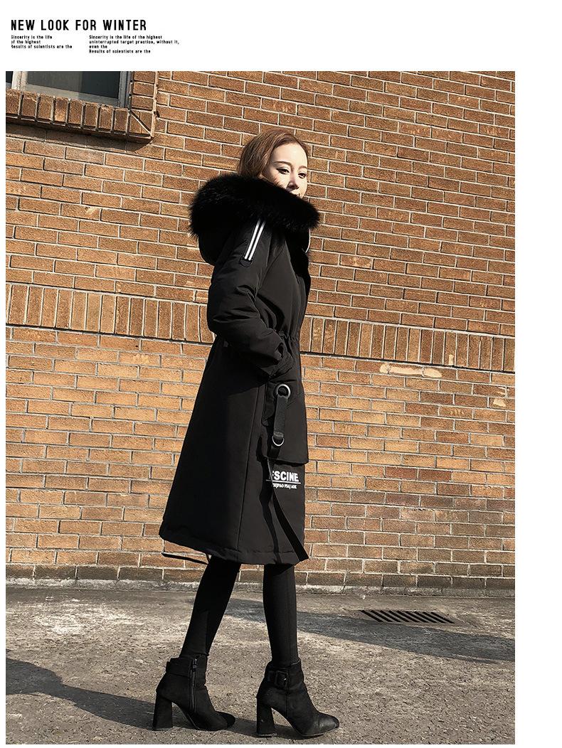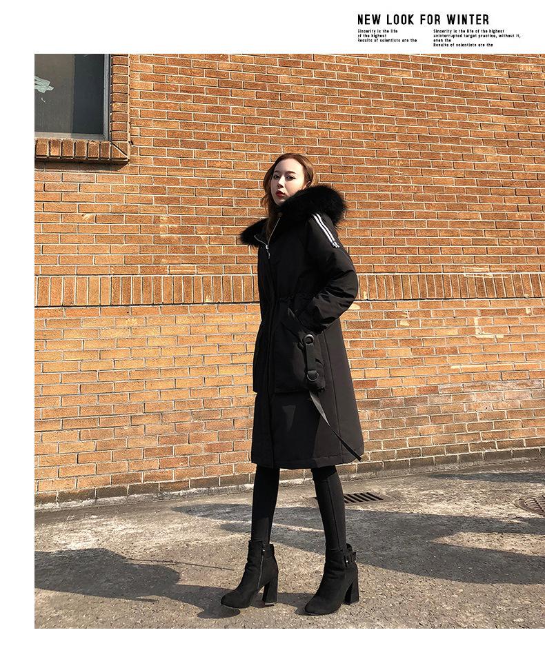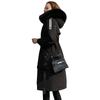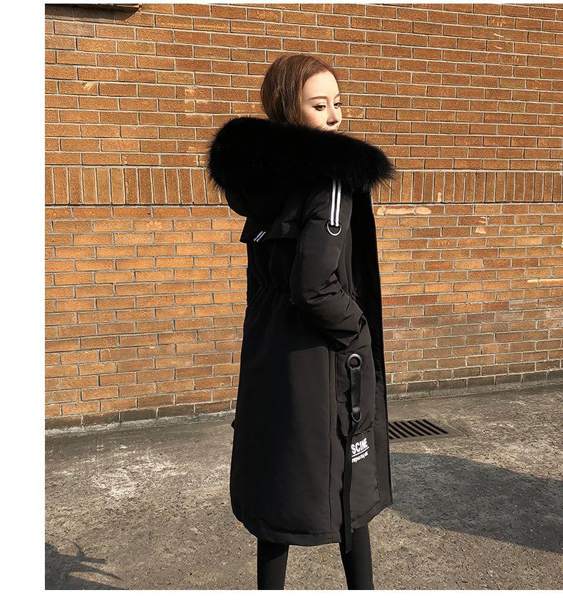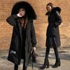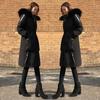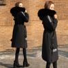 Chamarra de Plumas para Mujer 2024 Nueva Largo Medio Estilo Coreano Arriba de la Rodilla Moda Ajustada Invierno Cuello Grande de Piel Negra Chaqueta Parka