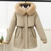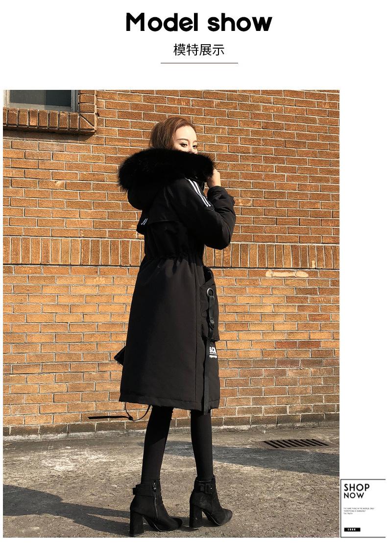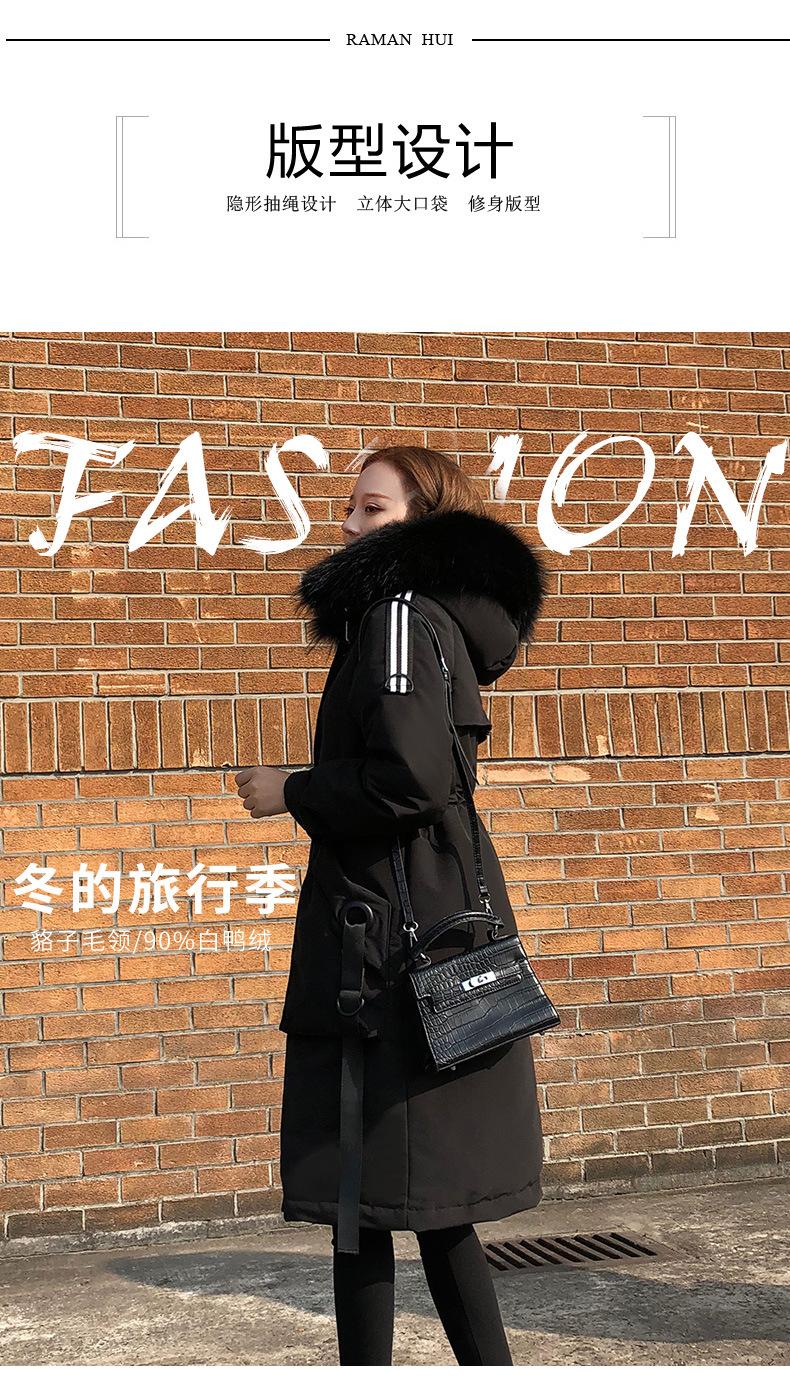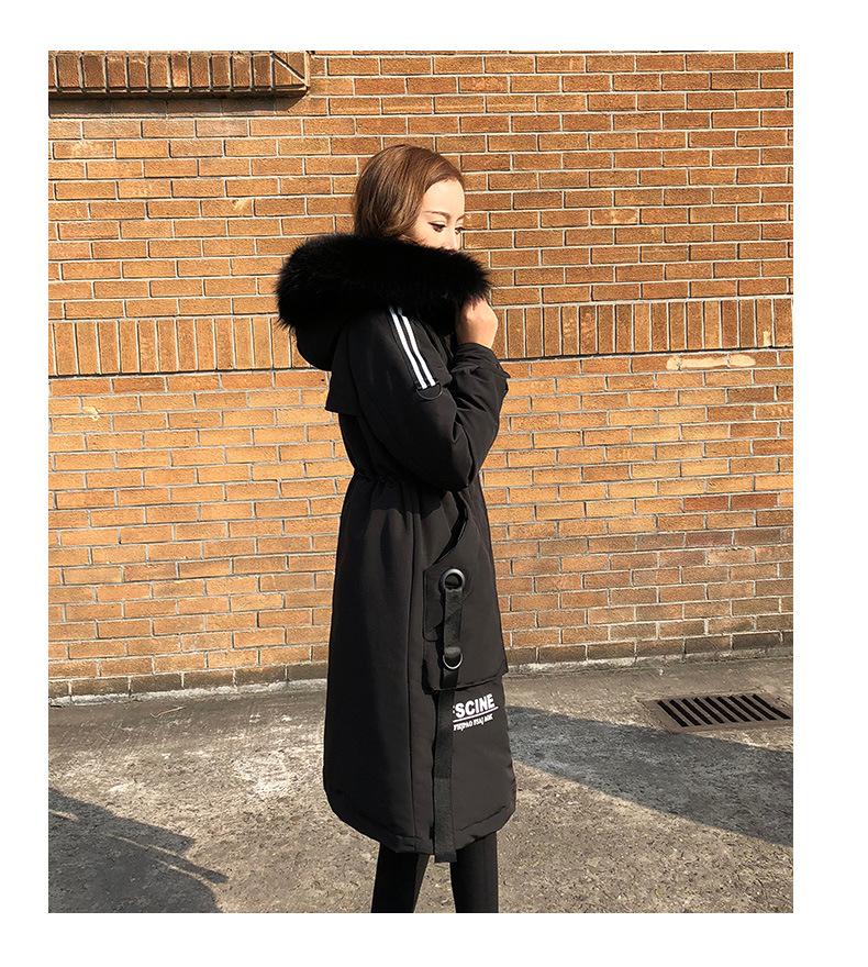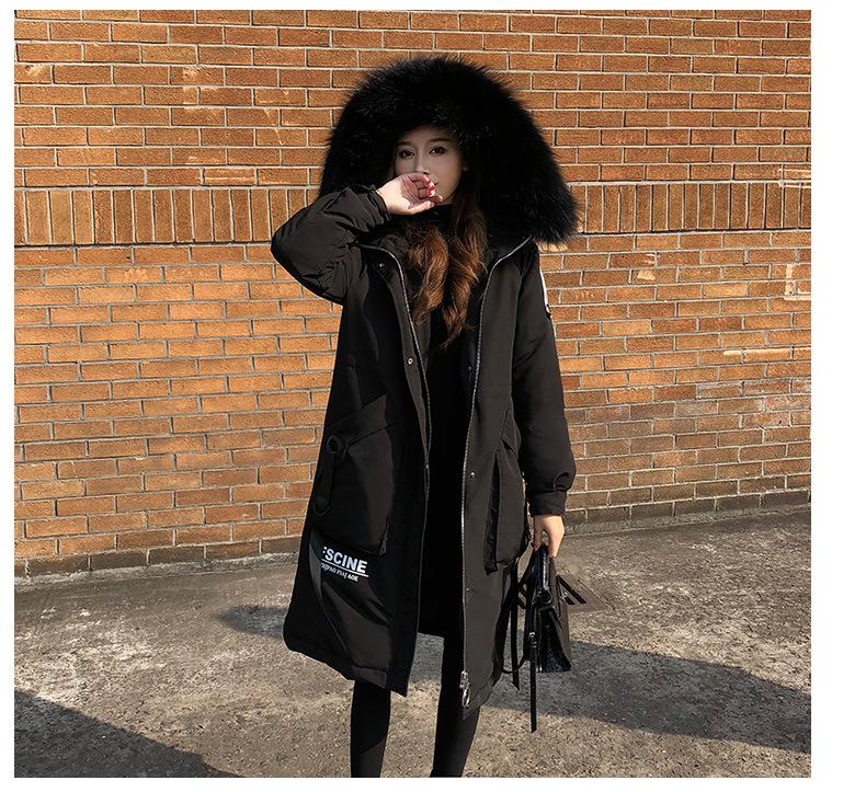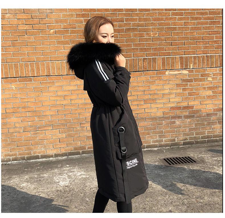 Chamarra de Plumas para Mujer 2024 Nueva Largo Medio Estilo Coreano Arriba de la Rodilla Moda Ajustada Invierno Cuello Grande de Piel Negra Chaqueta Parka