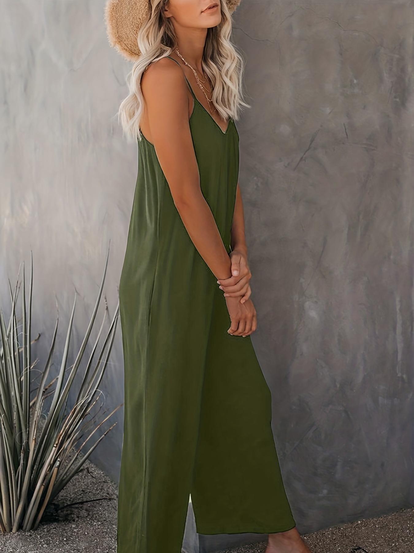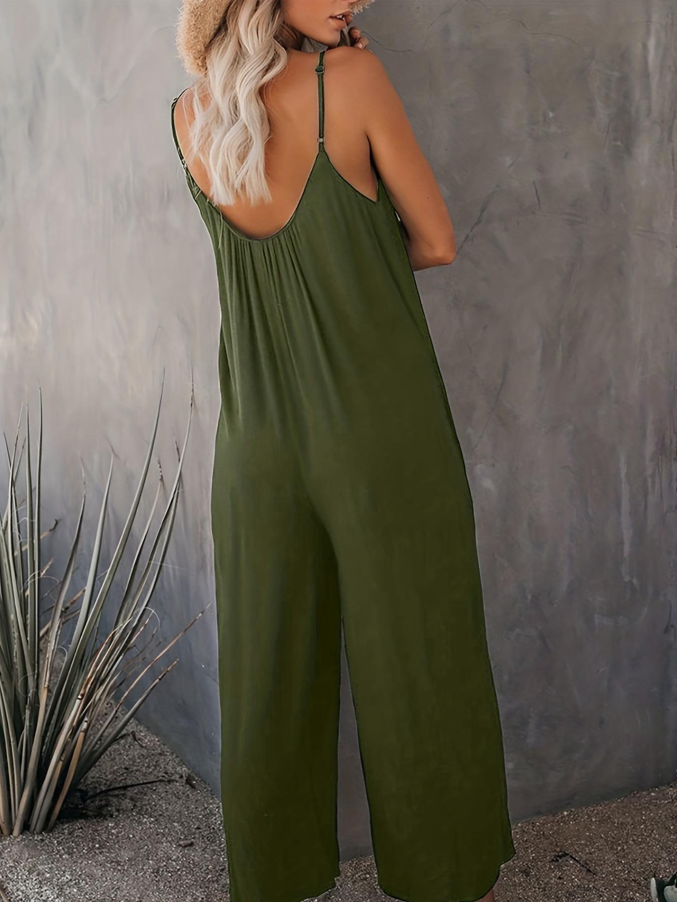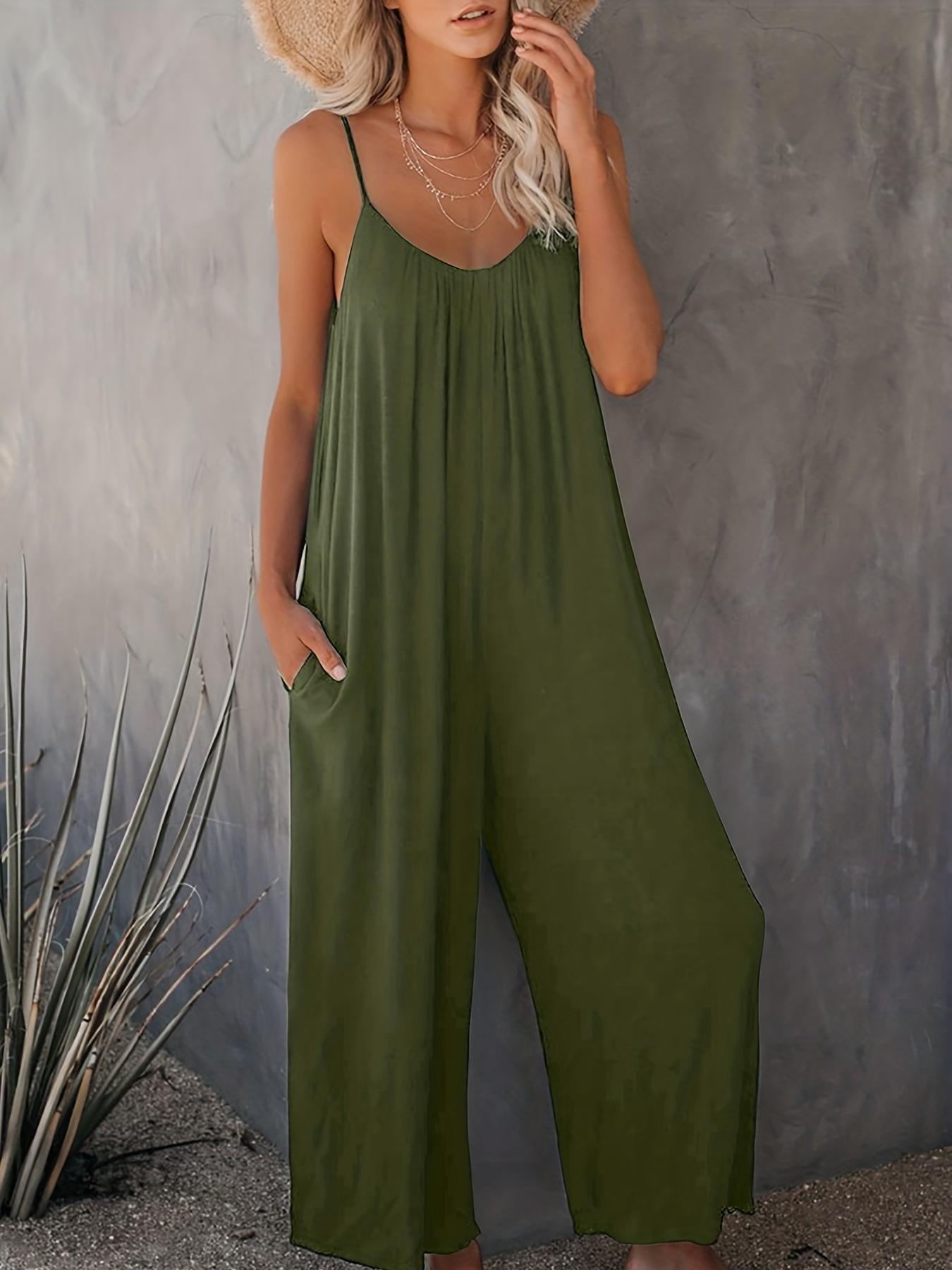 Mono de tirantes sueltos de color liso para mujer europea y americana, ropa de abrigo informal para mujer, mono, pantalones con espalda ancha y bolsillos