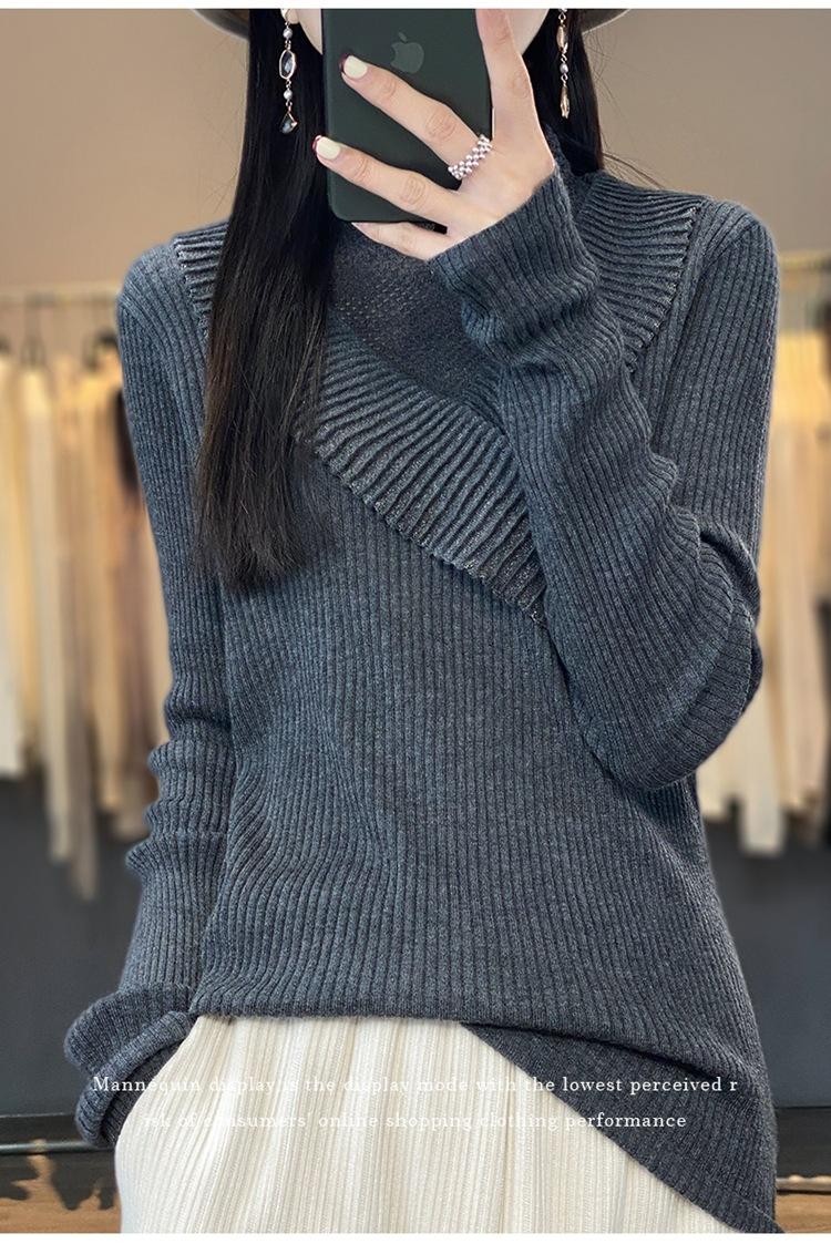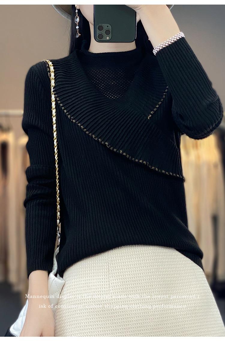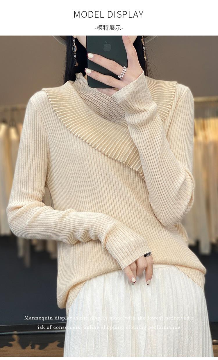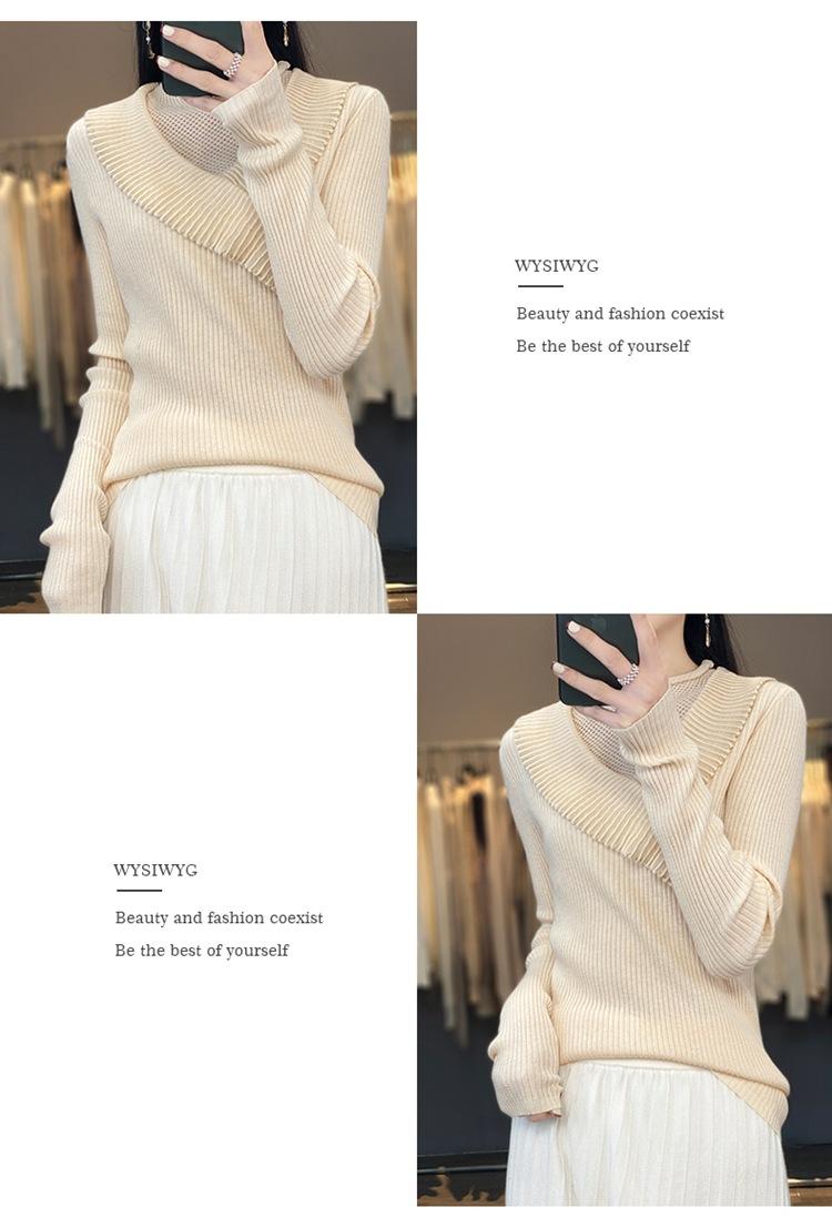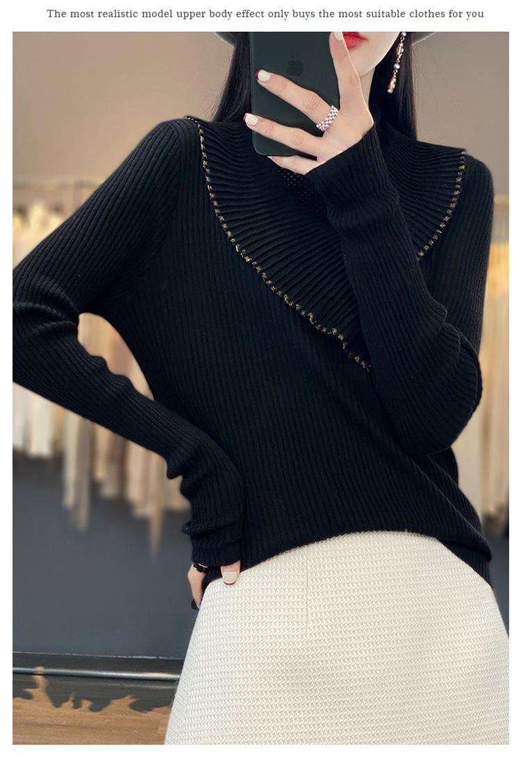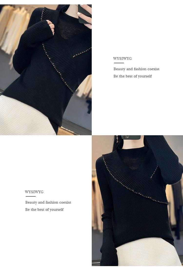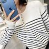 Lana Peinada 2025 Otoño e Invierno Nuevo Estilo Borde de Hongo Sencillo Elegante Rayado Talla Grande Top Prendas de Punto Cortas