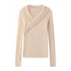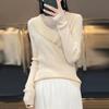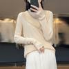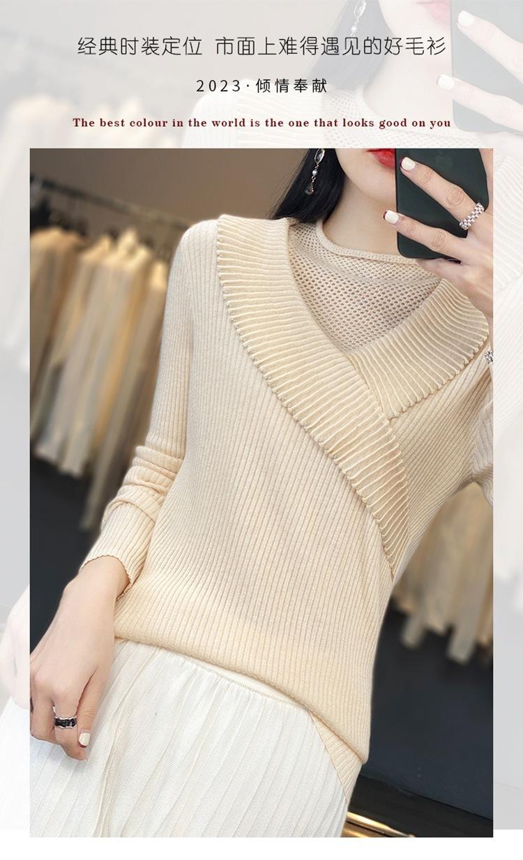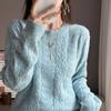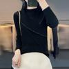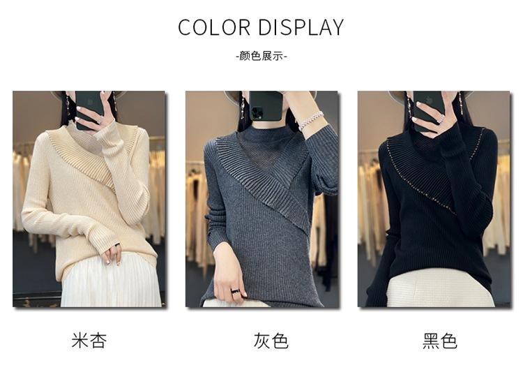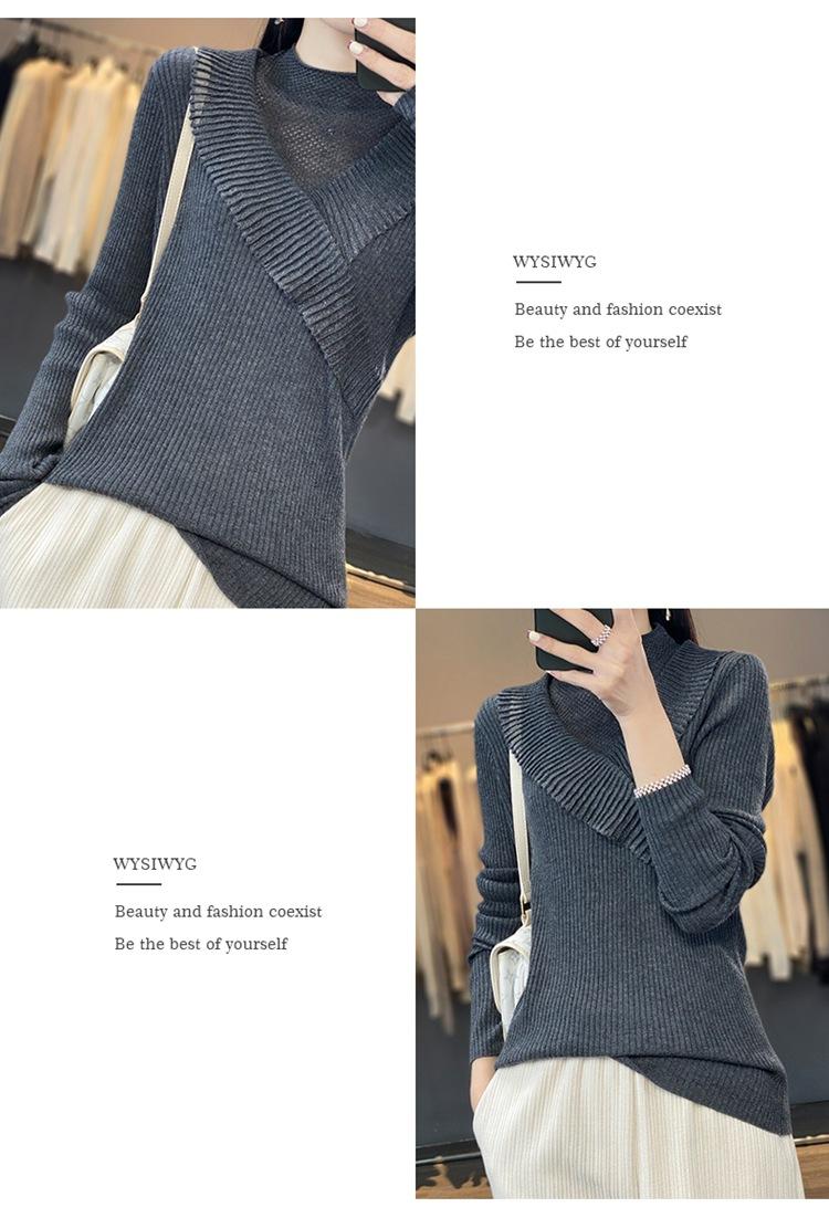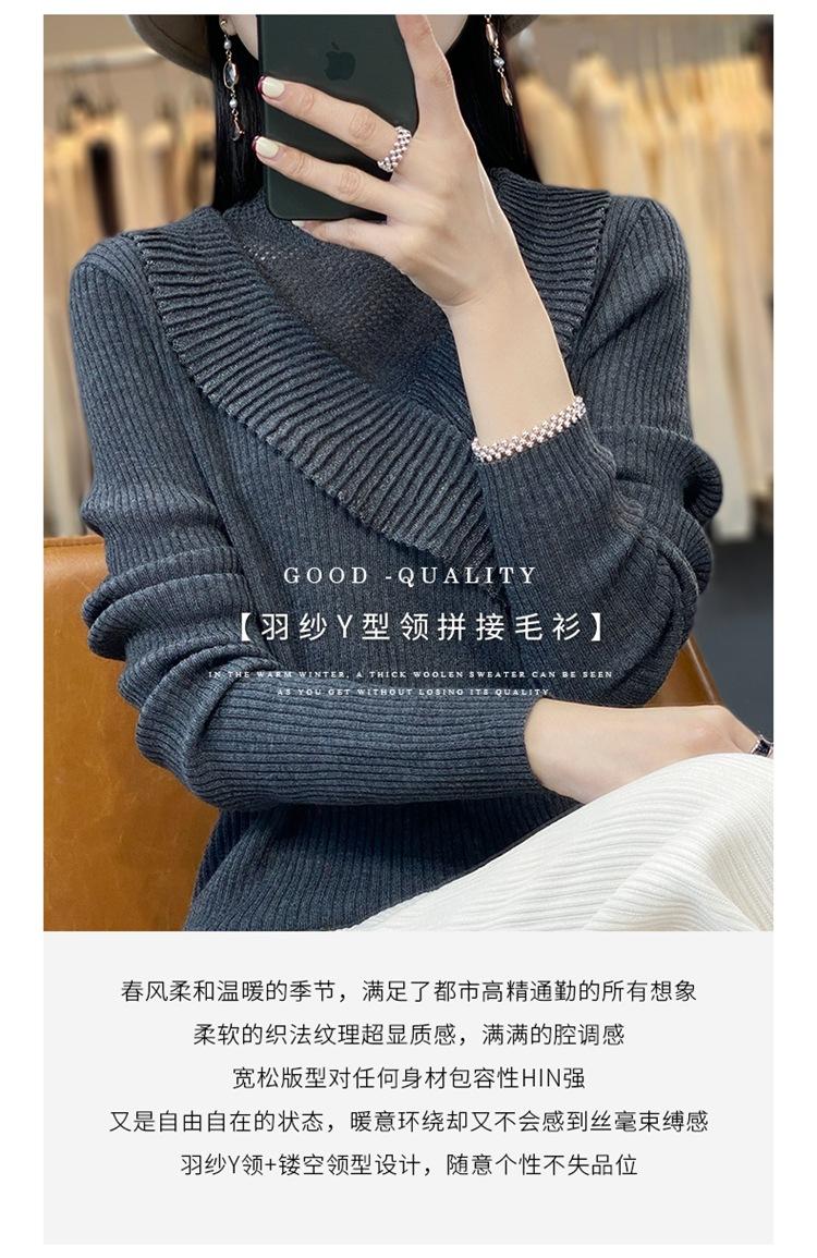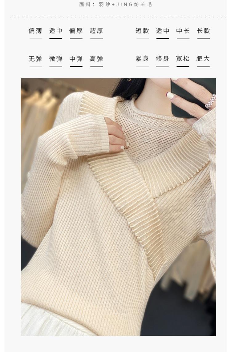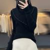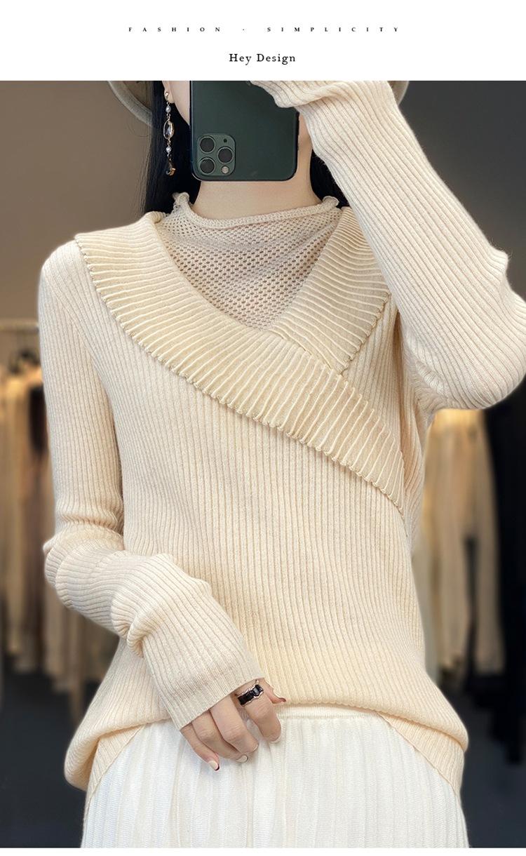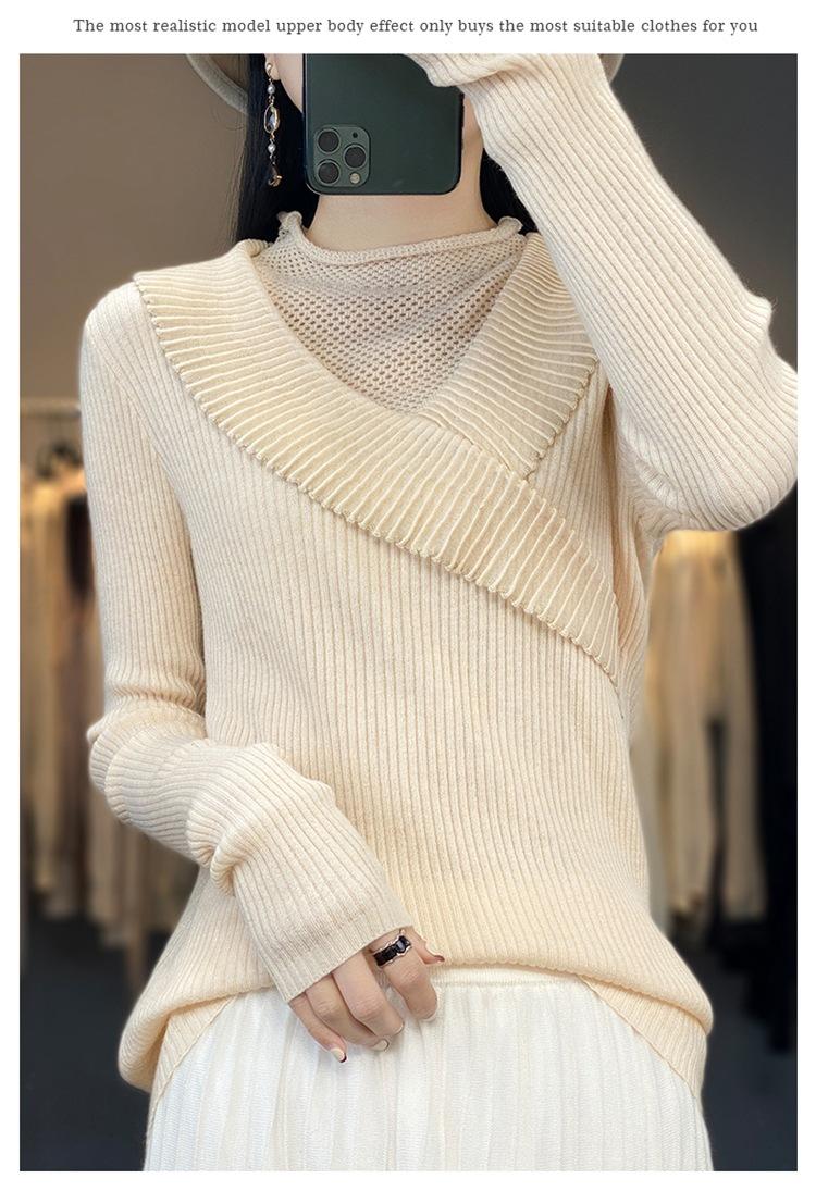 Lana Peinada 2025 Otoño e Invierno Nuevo Estilo Borde de Hongo Sencillo Elegante Rayado Talla Grande Top Prendas de Punto Cortas