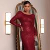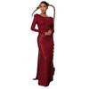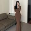 Primavera 2023 Nuevo Vestido de Banquete Sexy sin Espalda de Manga Larga Ajustado con Abertura para Mujer para Exportación Falda Larga